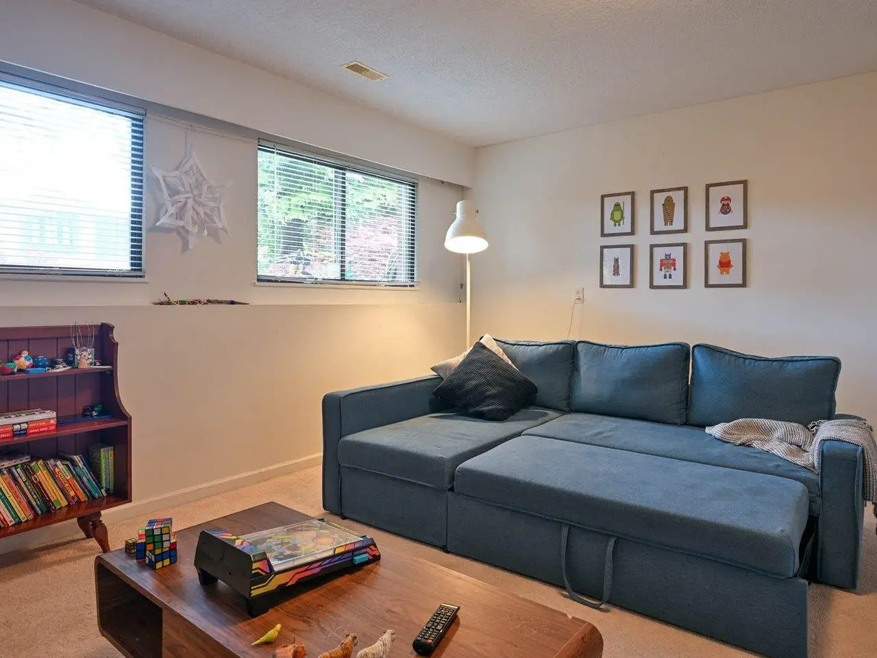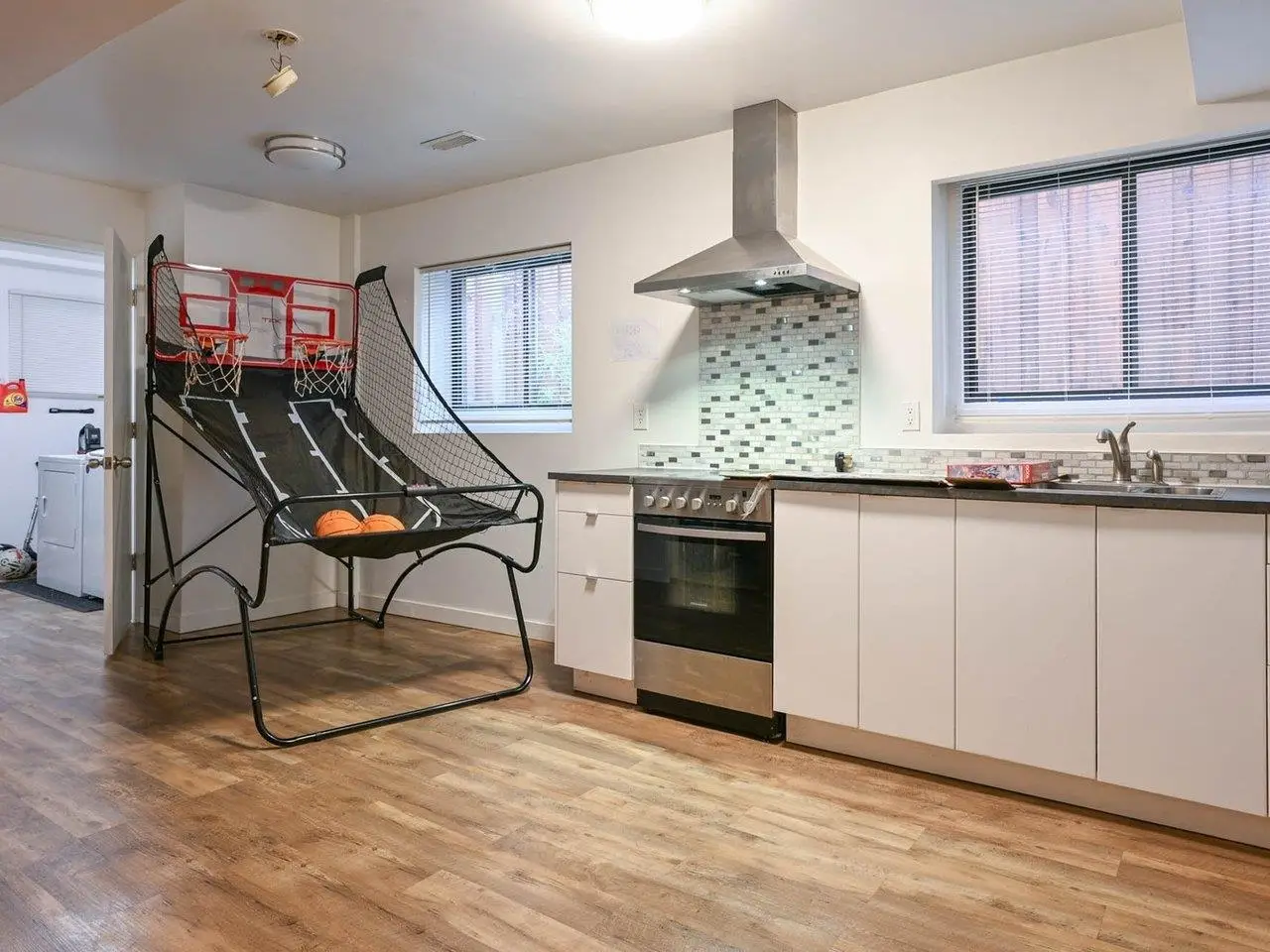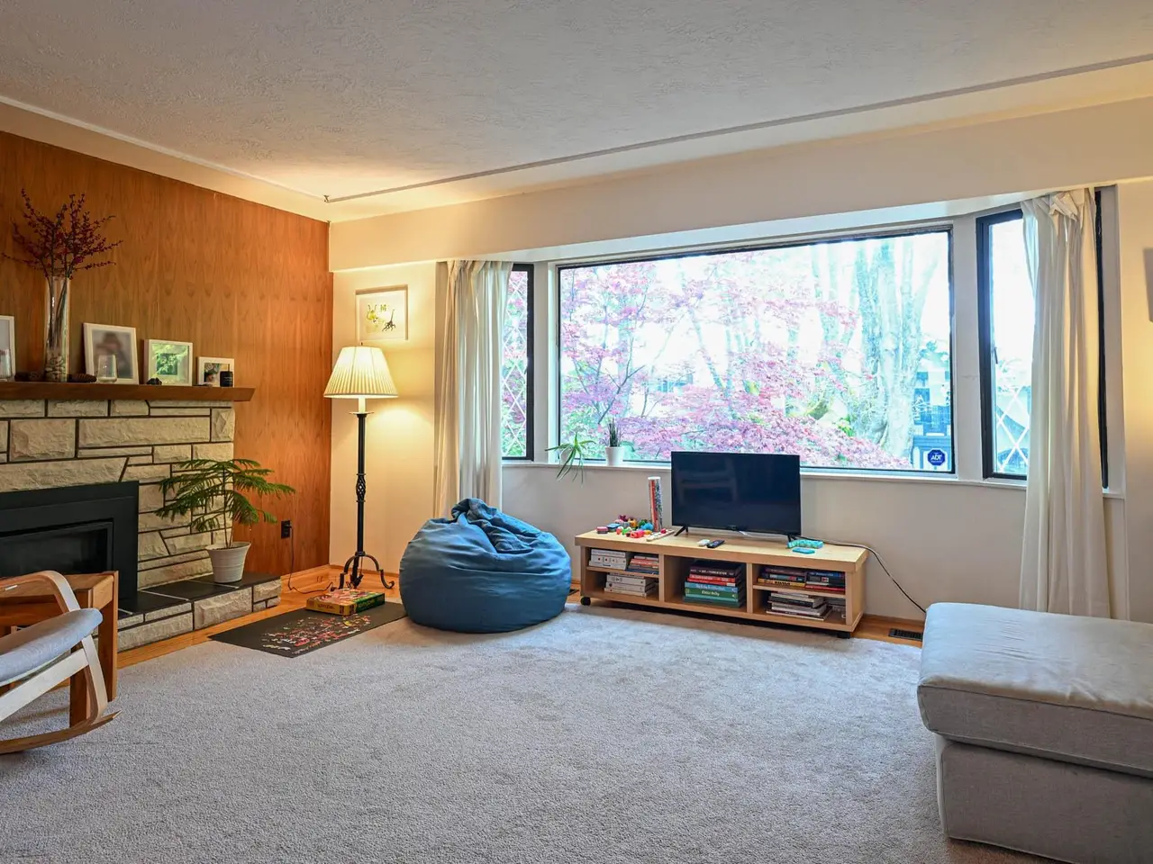 Large rec room with fireplace
