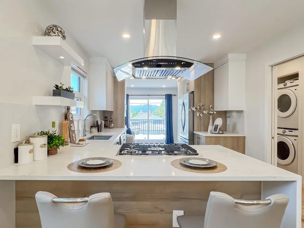 Modern, high-efficiency home on a quiet, tree-lined street in one of East Vancouver’s most sought-after neighborhoods! Ideally located near schools, shopping, and transit. Move-in ready with new windows, roof, insulation, dual-fuel heat pump, on-demand hot water, 200-amp electrical service, EV charger, and spacious two-car garage plus extra parking. Enjoy a well-designed two-level layout featuring a mortgage helper suite with separate entrance. Premium finishes include engineered hardwood floors, heated ensuite bath floors, higher-end kitchen appliances like Bosch/Miele/LG, sleek linear electric fireplaces, and imported Italian tile. Relax on your private deck with gas BBQ hookup. No GST applies.
