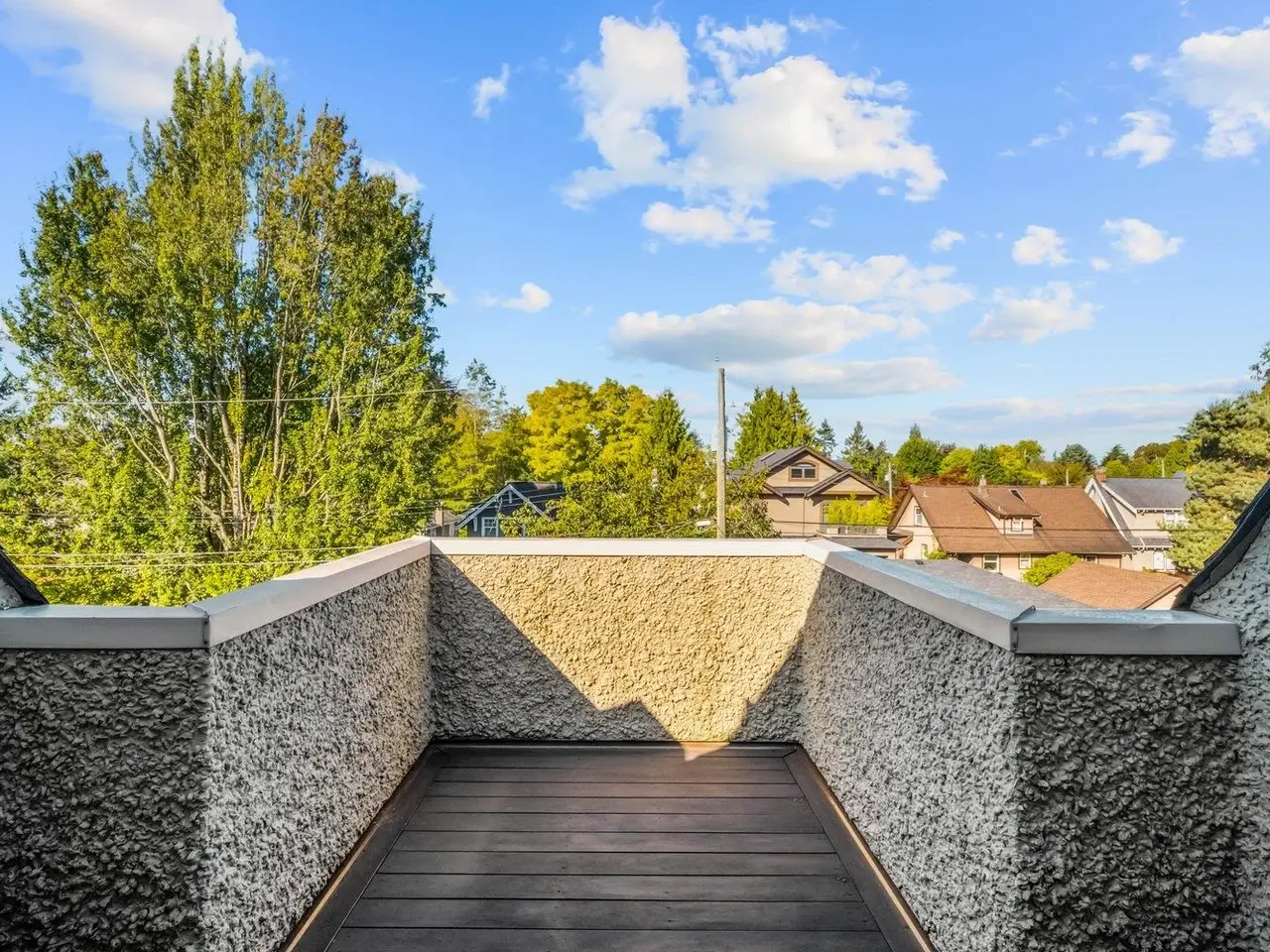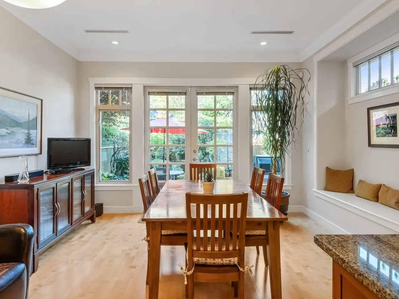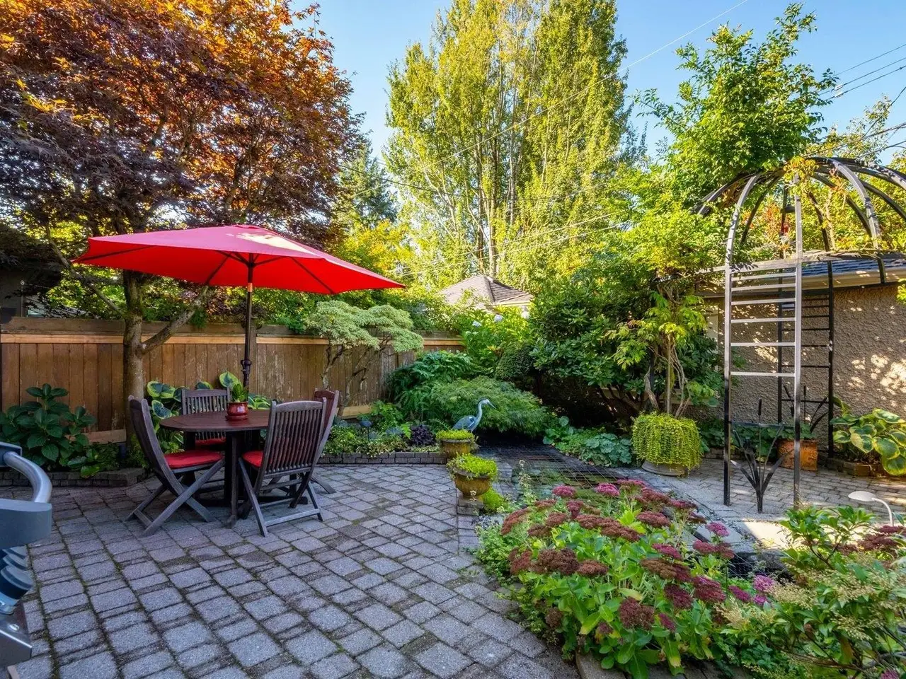 Perennial gardens lead to the front entry of this stately 4-bed, 4-bath, 3-storey Kerrisdale home. Open concept main w/ over-height ceilings, maple H/W floors, & architectural details throughout, including crown moulding, recessed bench seating in family rm, windows seat & gas F/P in living rm. Chef's kitchen w/ bespoke cabinets & island, granite counters, gas range, & S/S appliances. French doors lead to patio for seamless in/outdoor living. 2nd floor features: sprawling primary bed w/ ensuite, + 2 additional beds (one w/ vaulted ceiling), bath, & laundry. Potential 2nd primary suite on top floor w/ ensuite, W-I-C, skylight, & W-facing balcony. Serene backyard w/ professional hardscaping & custom pond. OPEN HOUSE: SATURDAY, NOVEMBER 1 @ 1-3pm