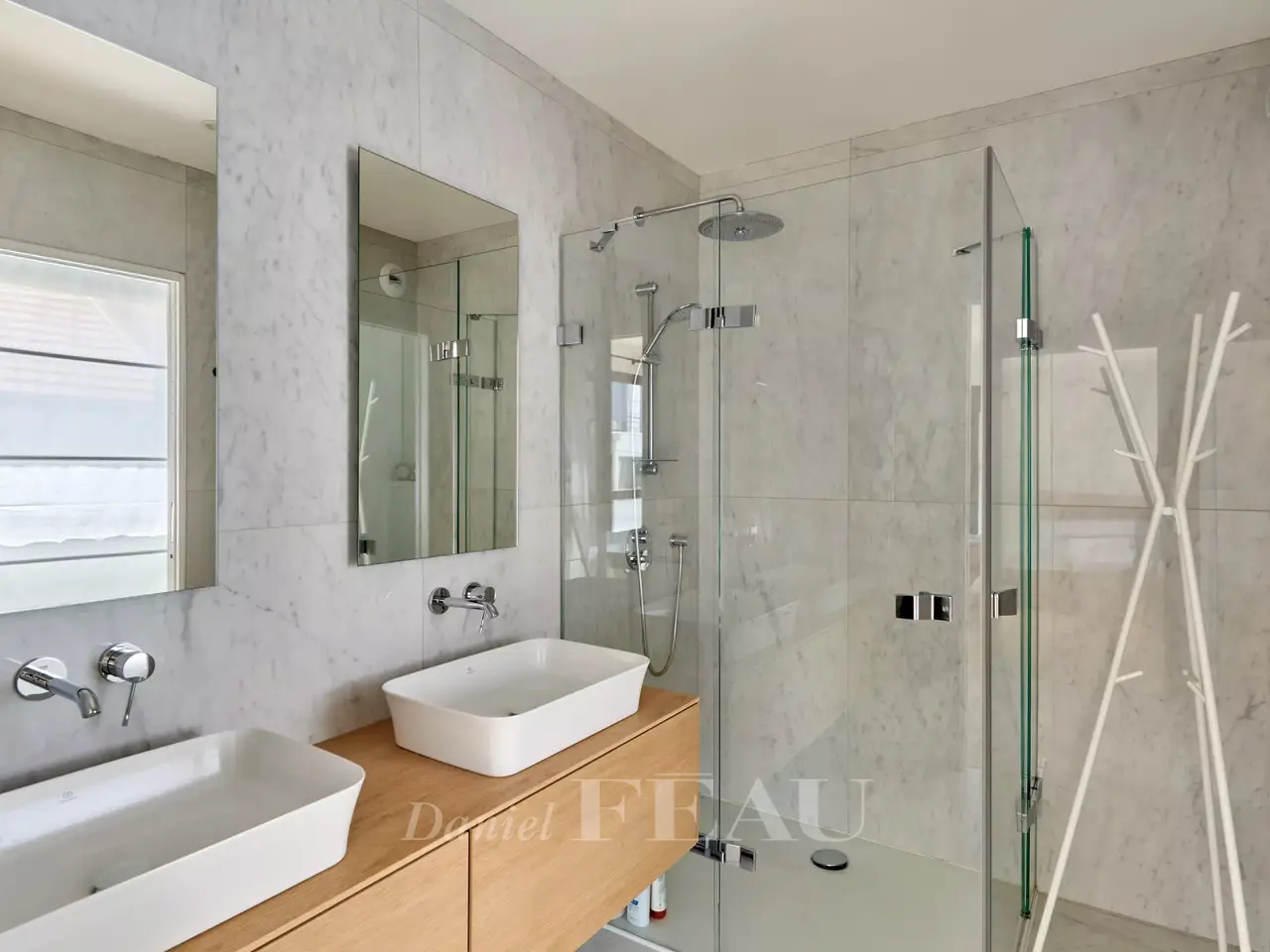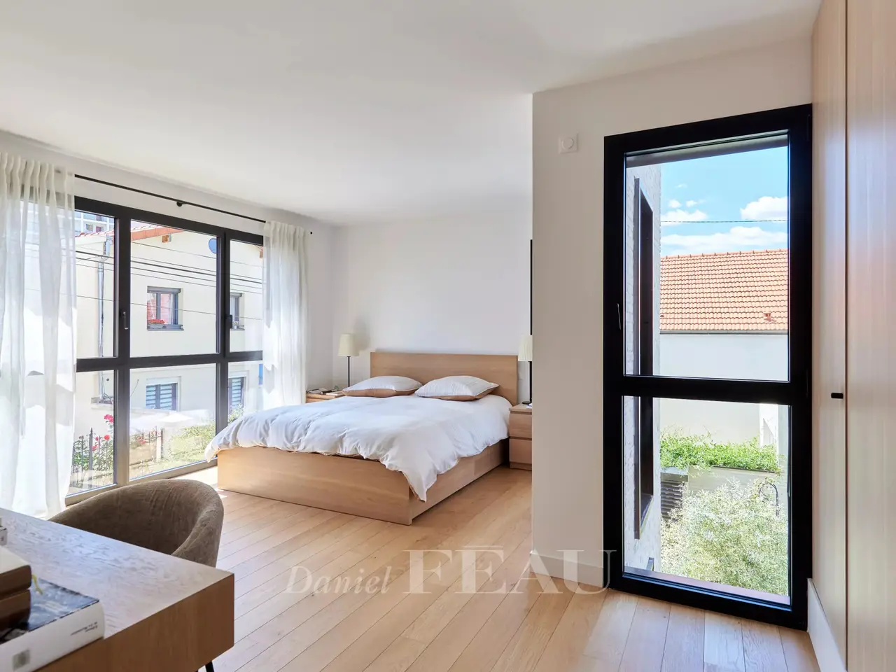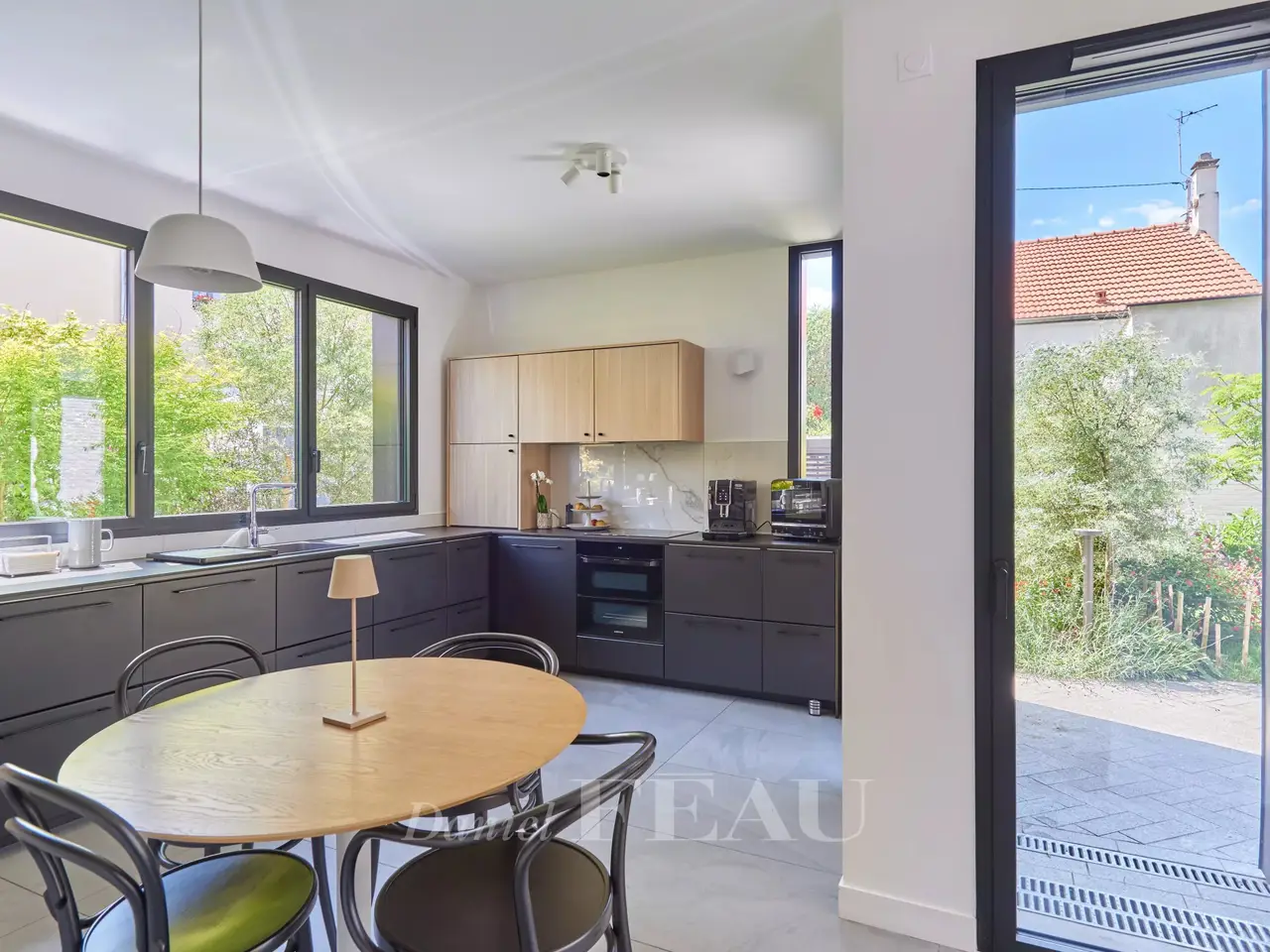 In a green bower, nearby Vanves train station, architect house dating from 2022, offering 284 sqm of living space and a garden-terrace space of 62 m². On ground floor, the entry leads to a separate and equipped kitchen, a spacious living room opening onto the garden, a suite and its shower room, a study and a separate wc ; on the upper floor, four bedrooms, three shower rooms and a separate wc on the landing. In the basement, a utility room, a living room, a fitness room, a pantry and a technical space.