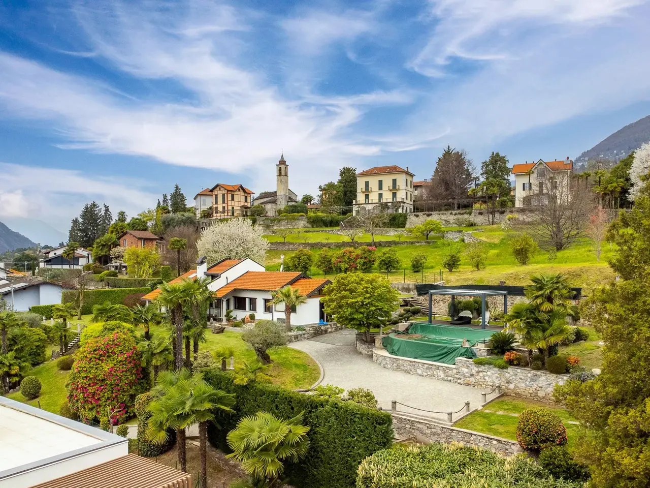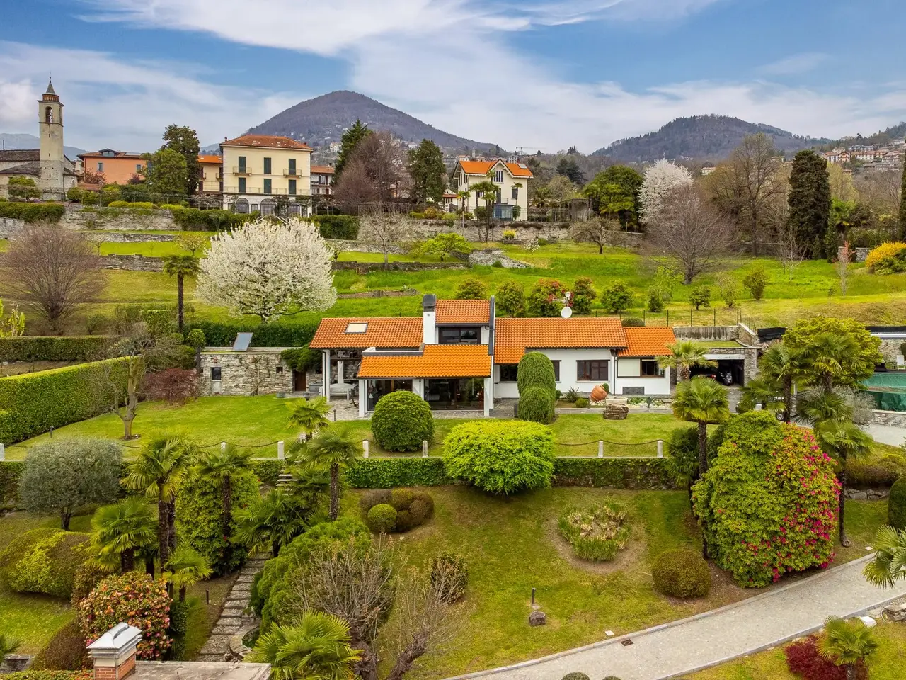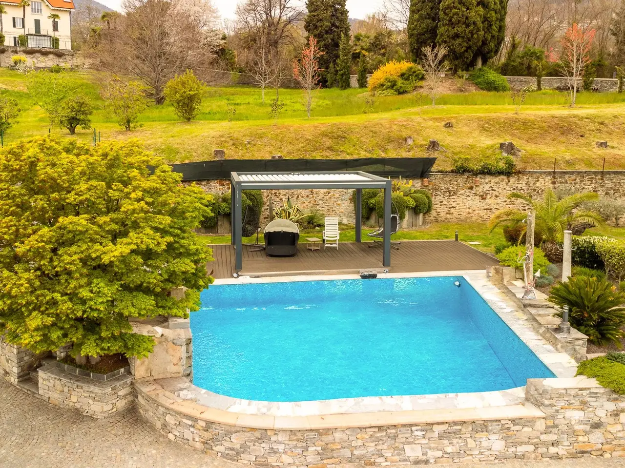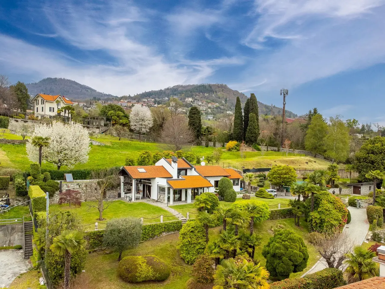 In a privileged hillside location, just a few minutes' walk from the historic center of Intra, this stunning villa enjoys breathtaking views of Lake Maggiore and the Borromean Gulf. Bathed in quiet and light, it is surrounded by an enchanting, perfectly manicured park with swimming pool, spring-fed pond and lush vegetation. The property stands out for its balance of elegance, privacy and comfort. An ancient 100-year-old olive tree, a majestic camphor tree, palm trees, fruit trees and rare flower essences frame a pond fed by spring water, populated by Koi carp specimens. Completing the garden are a bocce court, a wooded area, flower meadows, and an automated irrigation system fed by a cistern that collects spring water. The house, originally built in the 1960s, was completely renovated and expanded in 2020, with great attention to detail and quality materials. The main entrance, through a porphyry driveway, leads to a large parking area with a pergola and a convenient garage. The interior offers bright and refined rooms: a large open space on the ground floor accommodates living room with double-sided fireplace, integrated kitchen, dining area, two bedrooms, two bathrooms, wine cellar and covered terraces. On the second floor there is a study with a panoramic terrace, a bedroom with a covered terrace, a second bedroom and a bathroom equipped with a mini-pool with whirlpool and shower. Outside, the heated infinity pool with solarium and pergola represents a corner of absolute relaxation. The villa is equipped with many state-of-the-art amenities, including an air-conditioning system to maintain an ideal environment throughout the year and a cozy fireplace for relaxing on cooler evenings. The property is entirely surrounded by an automatic irrigation system, which keeps the garden in perfect condition, and carefully designed outdoor lighting to enhance every architectural detail.