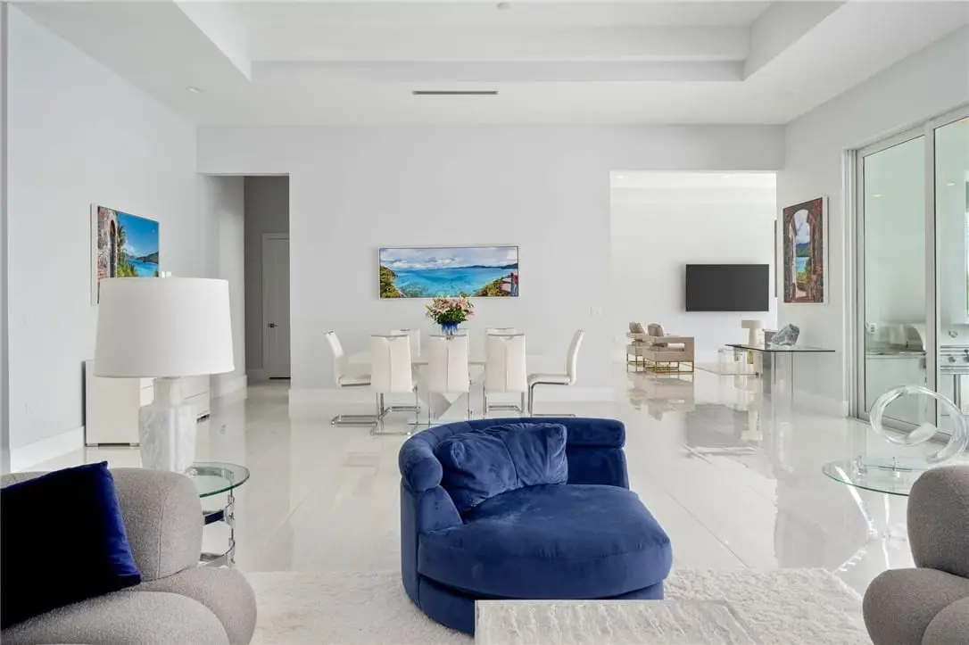 Experience luxury waterfront living in this breathtaking 2022-built riverfront home. Featuring 4 beds, 4 baths, and a spacious three-car garage with approximately 5,261 square feet, this property is designed to impress. Soaring voluminous ceilings and floor-to-ceiling sliders frame mesmerizing river views, seamlessly blending indoor and outdoor spaces. Every detail has been meticulously crafted, from the elegant fireplace in the living area to the premium Jenn-Air appliances in the chef's kitchen. Step outside to your private dock with lift, and enjoy the tranquil beauty of the river from your own backyard. A true riverfront gem!