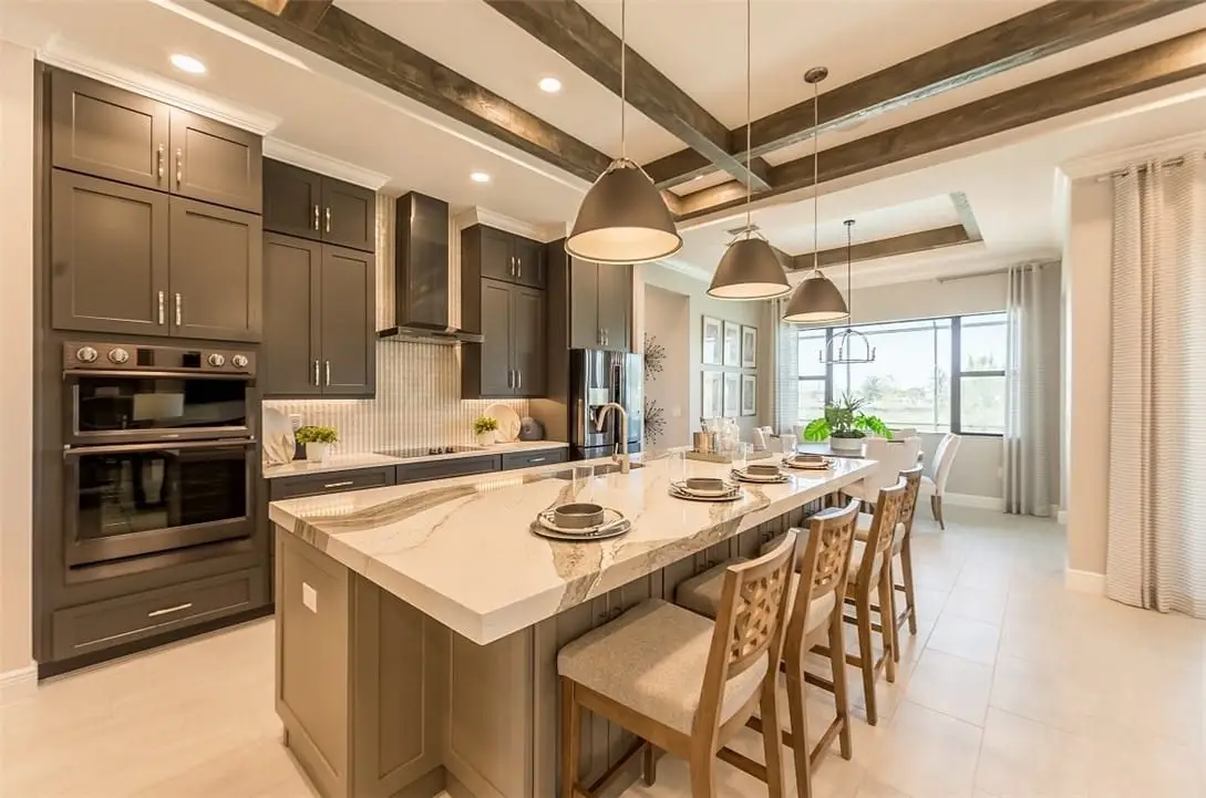 Example of what you can build in desirable golf community in South Vero Beach! Kauai floorplan 3/3+ Office. Oversized 2 car garage. Gourmet kitchen, wood cabinets, quartz counters & built in appliances. Impact windows, tile roof and pool. This energy-efficient SunSmart home will save you 40% on your electric bill. Room sizes approximate/ subject to error.