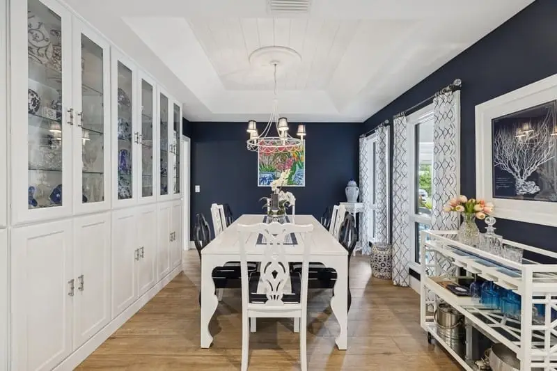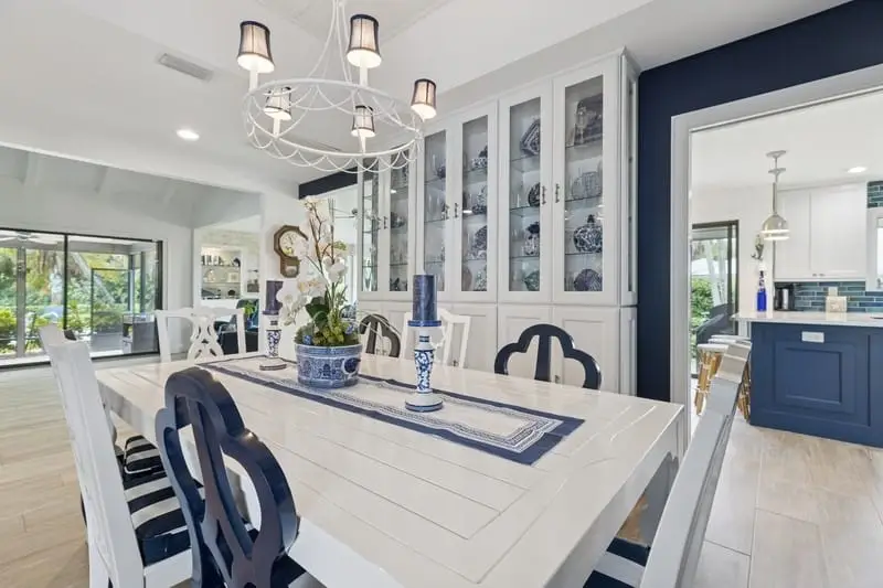 Thoughtfully designed 4BR/3BA coastal retreat where no detail is overlooked. Elegant white kitchen, custom cabinetry, and wood plank tile throughout. Resurfaced saltwater pool, gas fireplace, and range, plus exterior gas line for grilling. Spacious fenced yard with new 30-year metal roof (completion mid-Nov). Walk or cart to deeded beach access with private parking, lanais, showers, grill & tortoise habitat. Near Moorings Yacht & CC with rare Social Club Membership opportunity.