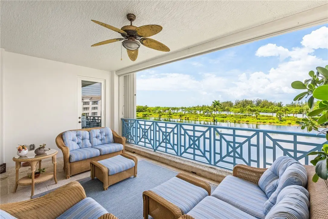Elegant condo offers unobstructed views of Indian River Intracoastal waterway. Beautifully finished w/Saturnia marble floors in Living Area, custom built-ins, crown moldings, custom window treatments, gas fireplace. New kitchen quartz counter tops, new top of the line appliances, buffet bar, interior painted 2020. New AC units in 2024. Electric roll patio screens, private elevator entry, 2 Car AC garage. Heated pool & fitness room across from Clubhouse. Deeded Beach Access. Seller paid the $35,000 assessment for Exterior Painting, new roof plus the Clubhouse. Incorrect Sq. ft. in tax record.