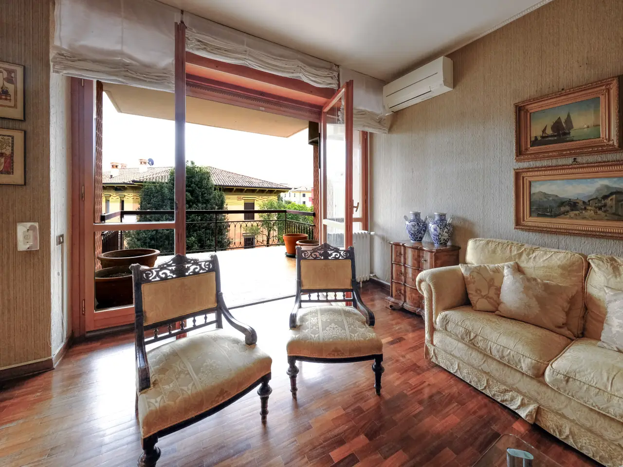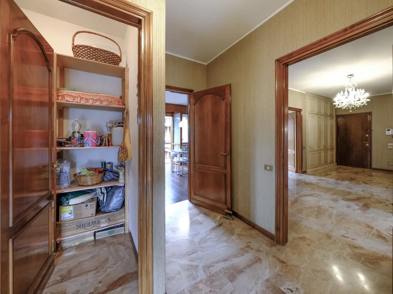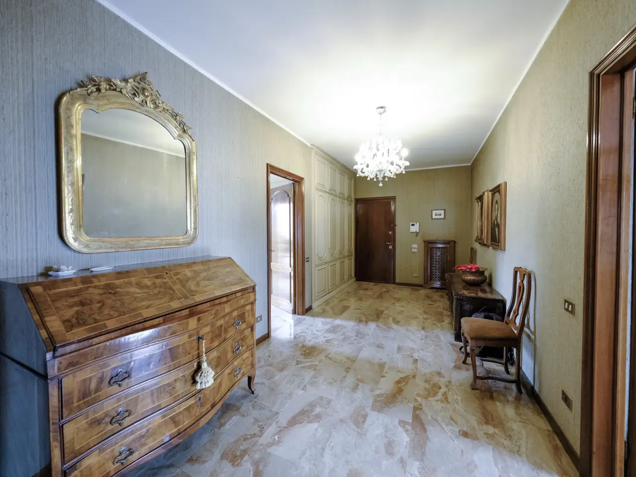 In an elegant and refined condominium context in the exclusive Borgo Trento district, a bright and fantastic apartment of generous dimensions is offered for sale with its terraces and balconies. The property is located in a strategic area being close to the city center and is convenient to all services. The apartment is located in a very suggestive condominium being surrounded by greenery with also a nice private internal parking and is composed of: an entrance hall, a large and bright living room with large terrace, large dining area connected to a large eat-in kitchen with attached laundry / bathroom, a long corridor that houses the wardrobes and a closet, 3 large bedrooms and two bathrooms with windows. The presence of large windows along the perimeter of the house makes it very bright at all hours of the day. A large cellar and a double garage complete the property. The finishes, even if original from the time, are very elegant, alternating parquet floors with marble floors, some shutters are electric, presence of air conditioning and central heating.