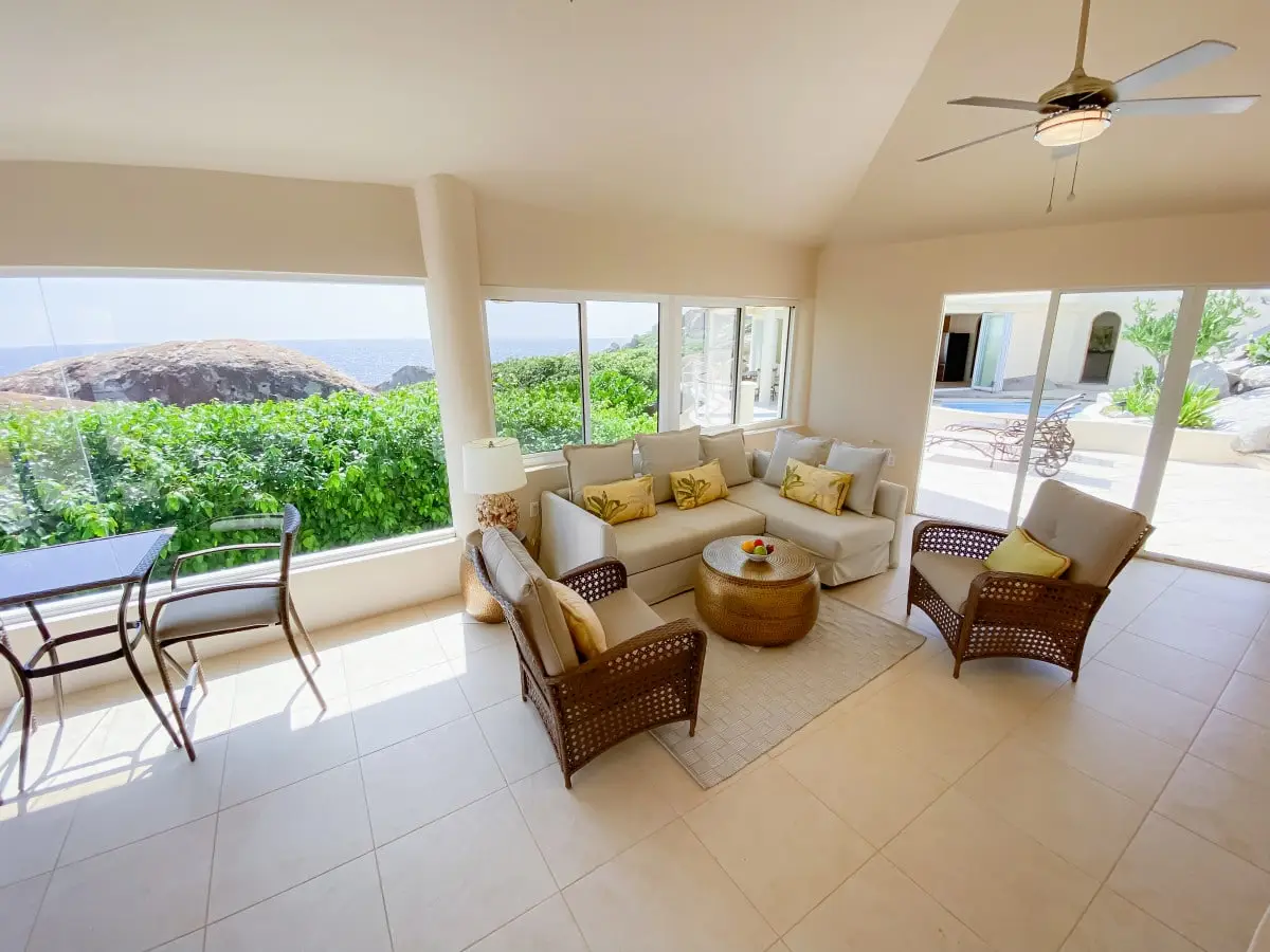 <strong>REDUCED FROM 4.5 MILLION </strong>Water's Edge was constructed in the heart of one of nature's great wonders. Located among the giant granite boulder fields of Virgin Gorda, this is a contemporary Caribbean fantasy home. It lies close to the World famous “Baths” National Park, but in a secluded, quiet and private estate. Any new owner of this unique home will enjoy sharing both the spectacular natural scenery whilst relaxing in deluxe accommodations, in a one-of-a-kind setting for one of the most extraordinary experiences in the BVI.<br /> <br /> Water's Edge was designed so that construction of the house would live in harmony with the natural environment and not distract from the location's spectacular beauty. Tucked away in a cavernous area, the exterior garden walls enclose the villa and you enter through Brazilian hardwood doors to discover the treasurers beyond.<br /> <br /> Once inside, an instant sense of awe is felt as the home is designed around a collection of huge volcanic boulders. The sensation of tranquility is instant as the panoramas of the Caribbean Ocean lure the eyes to embrace the turquoise waters. Water's Edge is uniquely connected with outdoor living as all three of the property's buildings have been constructed to fit amongst the granite rocks. Cream coloured exteriors with white peaked-roofs and orange clay tiles provide soft tones to contrast against the vibrant scenery. Large folding glass doors and picture windows frame the unhindered views while enabling a refreshing breeze to travel throughout the indoor living spaces. The patio and deck afford plenty of space featuring an outside bar area equipped with power points and a spot for an extra fridge. In addition to various hidden spaces for stargazing and sun lounging, when it's time to cool off, the 24ft pool with its unique little river and footbridge are a blessing for a refreshing dip.<br /> <br /> The home is a blank canvas waiting for the personal touches of its new owners to be implemented into the design, furnishings, and decor. The first building contains the kitchen and dining area, with state-of-the-art cooking facilities, sparkling tortoise shell granite countertops and custom wooden cabinetry. This great room offers an ocean view and is flooded by natural light from the floor length folding glass doors, which open to the outer decks. In addition to the luxury, fully equipped kitchen, a central island in the cooking area comprises bar stools and an additional small sink and station for preparing cocktails. A wine fridge compliments the open space where you can serve and entertain your guests relaxing on a unique built-in stone sofa. An expansive pantry with additional kitchen prep area links the great room to the indoor and outdoor shower, bath and laundry areas which are all accessible for pool use.<br /> <br /> From the second building, the expansive windows deliver a dramatic view of the ocean. This room was intended as the main indoor living area, and the design possibilities are endless for any new owner to craft the room with the comforts and amenities they desire. Currently this room doubles as another bedroom with access to the pool bath.<br /> <br /> The third building holds two and a half bedrooms. Both main bedrooms have direct patio access where a plunge pool is situated, while offering seclusion between the boulders and views looking out to sea. Both bedrooms contain king-sized beds, en-suite bathrooms featuring a powder areas for makeup, double sinks, and gorgeous outdoor showers constructed between the boulders. One of the bedrooms is also fitted with a small kitchenette behind double wooden doors and a pass through window, giving the owners a private place for breakfast and other meals if not wanting to use the main kitchen. The eating space is nestled under a covered patio between the bedrooms. The views are spectacular from all areas. This home brings in substantial revenue as a short-term rental.<br /> <br /> This home is perfect for anyone who enjoys entertaining.<br /> <h3>Water's Edge Virtual Tour on Virgin Gorda, British Virgin Islands</h3><br /> <iframe src="https://my.matterport.com/show/?m=yzR6dVx8Puu" width="853" height="480" frameborder="0" allowfullscreen="allowfullscreen"></iframe><br /> <h3>Water's Edge Sun Room Virtual Tour on Virgin Gorda, British Virgin Islands</h3><br /> <iframe src="https://my.matterport.com/show/?m=Hofv3m4QzBW" width="853" height="480" frameborder="0" allowfullscreen="allowfullscreen"></iframe><br /> <h3>Water's Edge Guest Villa Virtual Tour on Virgin Gorda, British Virgin Islands</h3><br /> <iframe src="https://my.matterport.com/show/?m=oEyW842sgRV" width="853" height="480" frameborder="0" allowfullscreen="allowfullscreen"></iframe><br /> <br /> &nbsp;