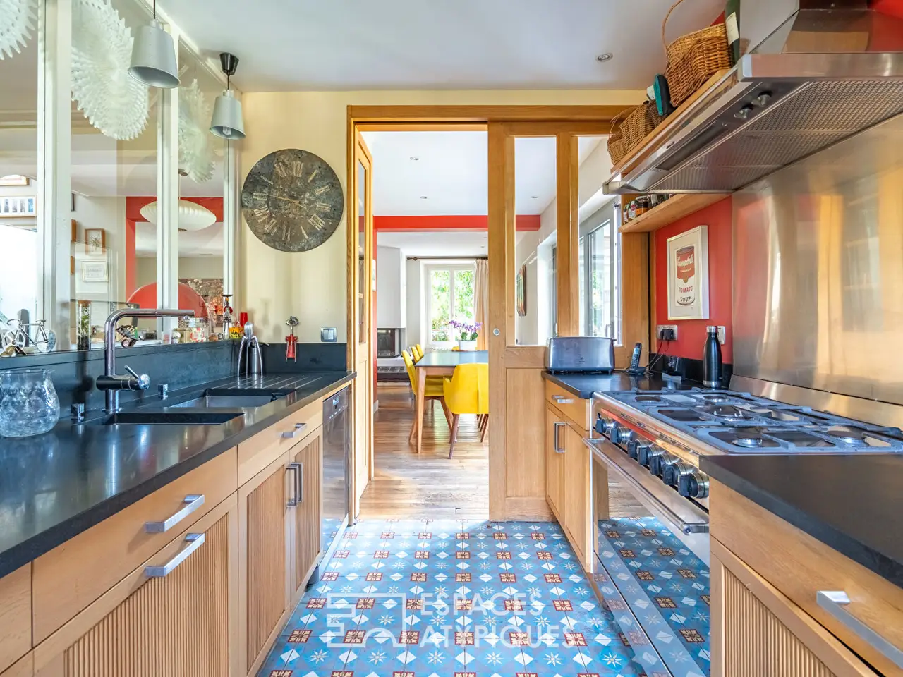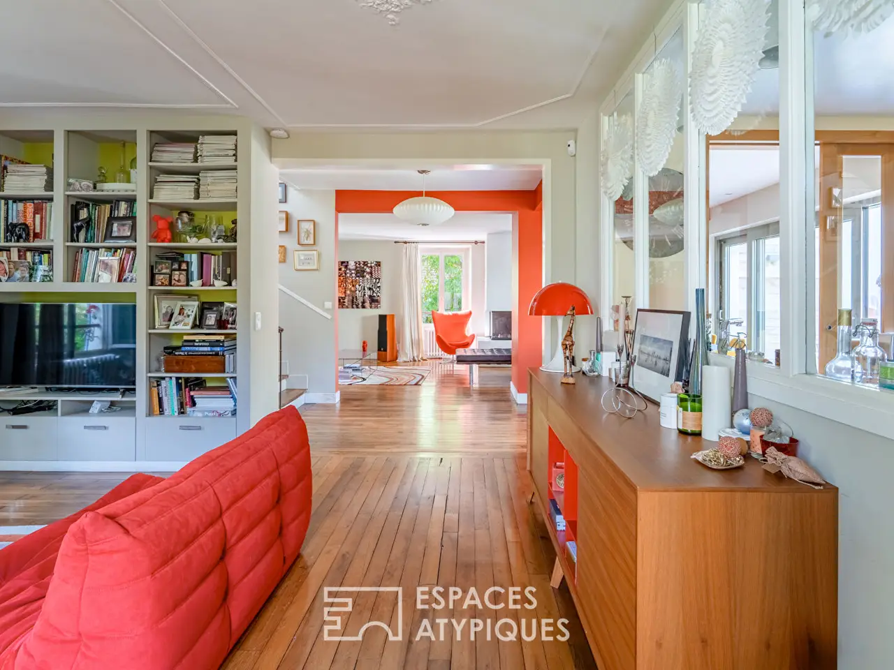 Located in the immediate vicinity of the Rive Droite station, Viroflay, the city center and the shops, this sumptuous 9-room house revisited by an architect awaits you for an unforgettable visit. With its 300 m2 surface area and its charming 700m2 garden, this property is distinguished by an architecture that is at once classic, modern and atypical, classic and contemporary by its first two levels borrowed from bourgeois houses and atypical by the incredible and unexpected elevation futuristic which characterizes its timeless charm and its high-end services. The result of this composition offers as a highlight to those who will live there an exceptional levitating master suite, a very pleasant double living room, a heated swimming pool and a warm terrace opening onto the garden out of sight. Ideally nestled in a discreet and cocooning environment, this house offers an exceptional living environment. As soon as you enter, you will be won over by the impeccable condition and modernity of this residence carefully renovated by the architect. The 60 m2 double living room, the real heart of the house, offering a breathtaking view and direct access to the garden, creates a friendly and bright space where it is good to get together with family or friends. The adjoining and independent kitchen, fully equipped with quality materials, is separated from the dining area and the living room by an industrial glass roof. A functional scullery enriched the latter. The brightness, omnipresent thanks to its through configuration, bathes each room in natural light, creating a warm and welcoming atmosphere. A separate WC completes this level. The home has 4 to 5 spacious bedrooms spread across the two upper levels, including two large master suites with en-suite bathrooms, perfect for comfortably accommodating your family and guests. The modernist elevation carried out in 2010 by an enlightened architect gives this totally incredible, atypical and rare place a magnificent master suite with a panoramic and crazy view of the garden, accommodating an office, a large dressing room, a private terrace, a bathroom and a suspended designer fireplace offering space for an unrivaled space of relaxation and tranquility. The finished basement is an additional asset to this property. It includes a large multi-purpose room that can be used as a cinema room or sports room. You will also find a laundry area, a spacious wine cellar with gravel on the floor for optimal storage temperature, as well as a storage room and a technical room housing the machinery for the swimming pool and the gas boiler. Finally, the 700 m2 garden, carefully maintained and planted with several species (palm, fig and a large cedar), is a true haven of peace. The heated swimming pool and the 30 m2 terrace are perfect for enjoying the sunny days and organizing moments of relaxation outdoors in this privileged setting inviting relaxation and pleasure. The condition of the floors and installations (plumbing, gas heating, electricity) is excellent, guaranteeing optimal daily comfort. Three outdoor parking spaces complete this exceptional property. Possibility of building a closed garage. Close to schools and shops Near Tram, Line N, bus 171 2 minutes walk, RER 5 minutes walk ENERGY CLASS: C / CLIMATE CLASS: C. Estimated average amount of annual energy expenditure for standard use, established based on energy prices for the year 2021: between €2,310 and €3,200. REF. 6988 Additional information * 9 rooms * 5 bedrooms * 2 bathrooms * Outdoor space : 780 SQM * Parking : 2 parking spaces * Property tax : 1 000 €