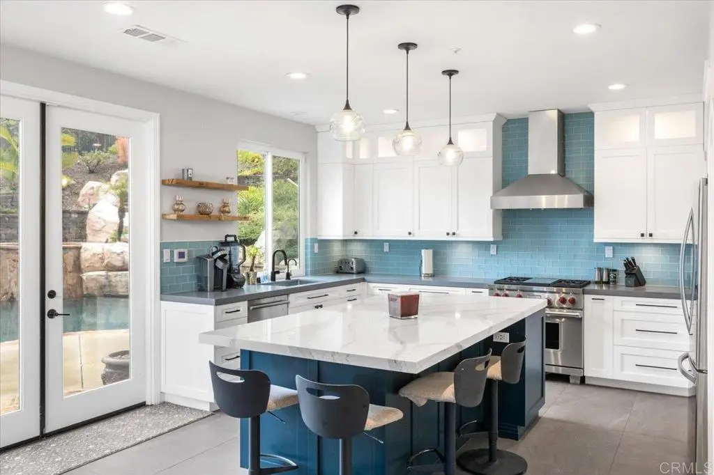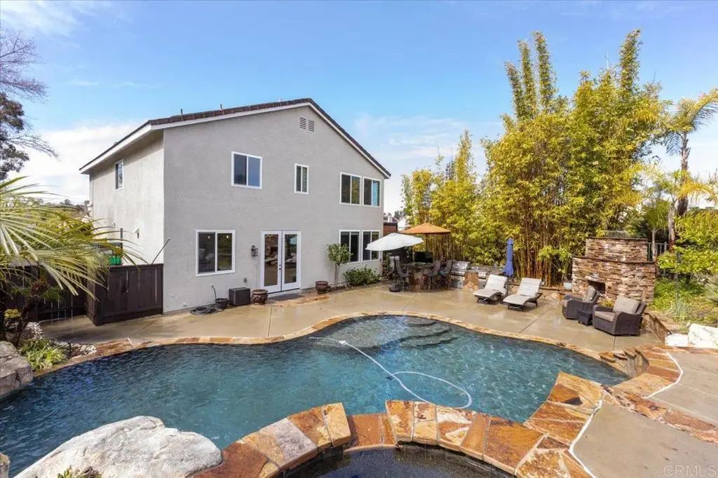 Discover your dream retreat! This stunning estate offers unmatched privacy, luxury, and modern upgrades--fully paid-for solar for energy savings included! Nestled at the end of a rare double cul-de-sac, it's a true sanctuary, surrounded by a lush Private Reserve--no neighbors, just tranquility. Inside, you'll find a beautifully remodeled 4-bedroom, 3-bath floor plan with a versatile upstairs loft--perfect for working from home, family fun, or guest visits. Every inch is finished with timeless style: a gourmet kitchen featuring a WOLF RANGE & HOOD, gorgeous ice blue tile accents, a spacious island with seating, newer windows, and contemporary touches that elevate everyday living. Step outside to your own resort-style paradise--immerse yourself in the dramatic spillway, unwind in the vanishing-edge spa, or soak in the shimmering saltwater pool with the top-of-the-line heater. Expansive, mature landscaping creates the perfect backdrop for lazy afternoons, starry nights, and unforgettable entertaining. This isn't just a home--it's a lifestyle. Embrace serenity, style, and effortless luxury in a private haven designed for those who cherish quality, privacy, and the good life. Your dream lifestyle awaits! 14 MIN DRIVE TO LEGOLAND 16 MIN DRIVE TO TERRAMAR BCH, CARLSBAD 46 MIN DRIVE TO INTERNATIONAL AIRPORT