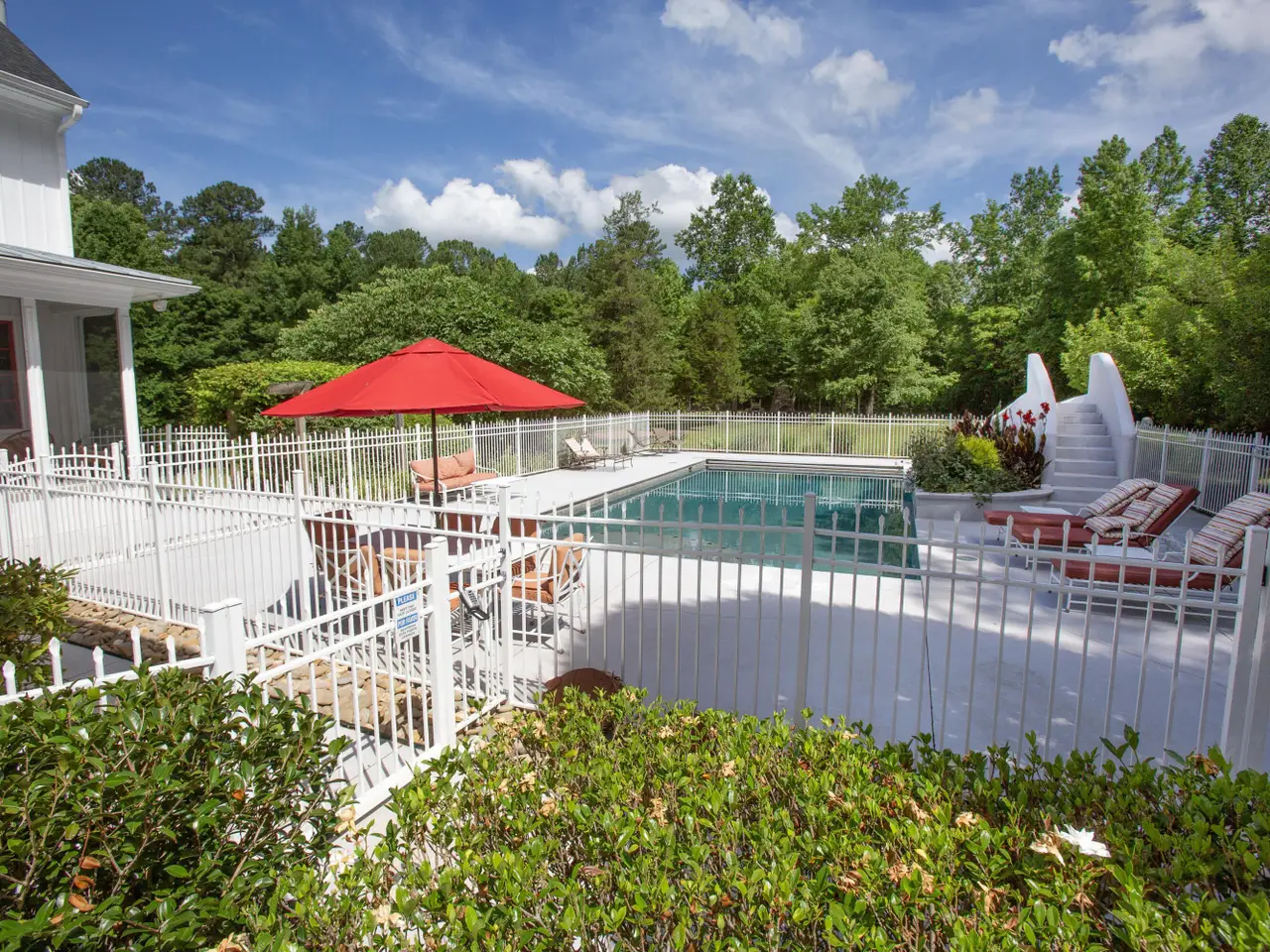 Das Traumhaus eines jeden Künstlers. Dieses individuelle Haus mit fünf Schlafzimmern und 4,5 Bädern steckt voller Charakter und kreativem Flair. Hier kommt keine Langeweile auf! Dieses Haus wurde mit dem richtigen Flair für fantasievolle Menschen entworfen, die frei fließende Räume mit skurrilen Akzenten lieben. Ein einzigartiges Zuhause inmitten atemberaubender Landschaften. Es ist voller natürlicher Holzschnitzereien, Kunstwerke und kreativer Schmiedeeisenakzente. Das Haus liegt auf einem 2 Hektar großen Grundstück mit herrlichem Blick auf Bäume, Freiflächen, einen Swimmingpool, einen riesigen Garten und grenzt an den Falls Lake. Es verfügt über eine offene Küche mit Bar und ein Wohnzimmer mit Kamin, einen Bastelraum, einen Bürobereich und eine Speisekammer/Schlammschleuse. Im zweiten Stock befinden sich eine Master-Suite, extragroße Schlafzimmer, private Bäder und viel Platz zum Ausbauen. Die untere Ebene umfasst ein Familienzimmer, ein Gästezimmer und reichlich Stauraum. Genießen Sie einen ruhigen Spaziergang über das Gelände oder zum See. Entspannen Sie auf der großen, überdachten Veranda oder am Pool. Einkaufsmöglichkeiten, RTP und die I-540 sind bequem erreichbar.