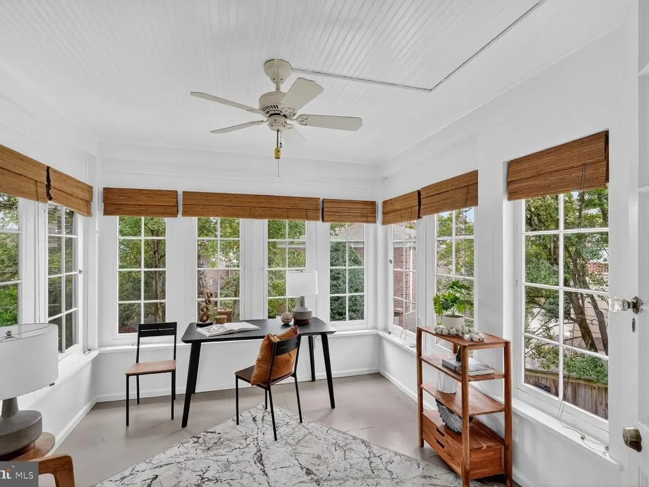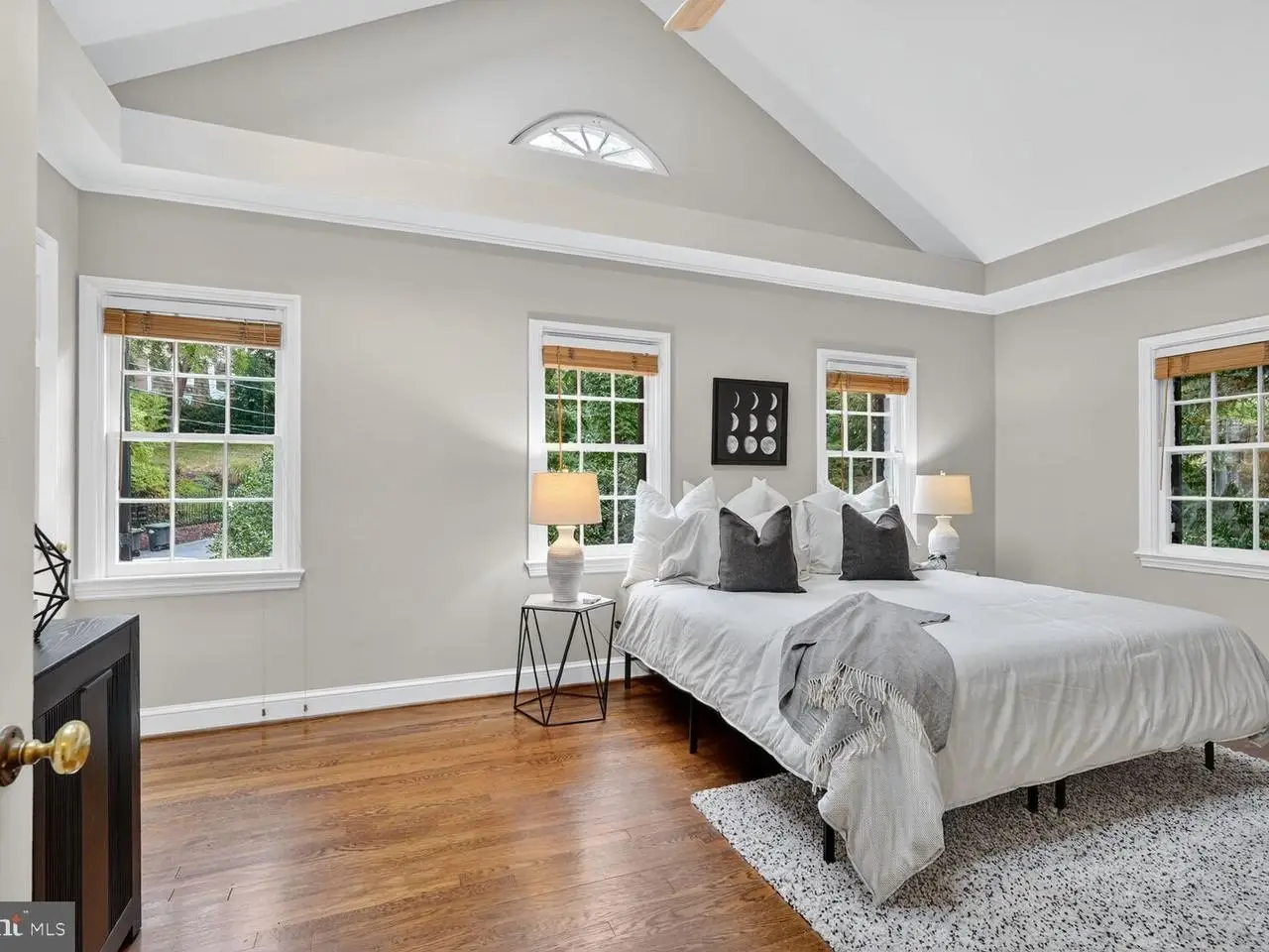 Classic storybook 1941 Federal with nearly 2600 sq ft of charming living spaces! Wonderful chef's kitchen with good counter & cabinet space and an open breakfast or dining area flooded with light from large bay window. Step down a few steps a spacious living room with high ceilings which leads out to a wonderful 3 sided windowed sun room flooded with light! There is a powder room and access directly into the garage as well. Upstairs there is a spacious and dramatic primary suite with skylit vaulted ceilings and an en-suite bath, 2 additional well sized bedrooms and a full hall bath! The basement provides an optional 4th bedroom guest suite or home office/den with a full bath, a large laundry & utility room, and a grand family room with a wood-burning fireplace and access to a screened 3 season porch leading to a grand party deck & rear yard! Other fine features include warm hardwood floors, high ceilings, a quite cul-de-sac location, and easy access to all our nation's Capitol has to offer! Solar cuts electricity to under $50/mo. on average!!! A rare find for under 1.5 million in the sought after Berkeley subdivision!