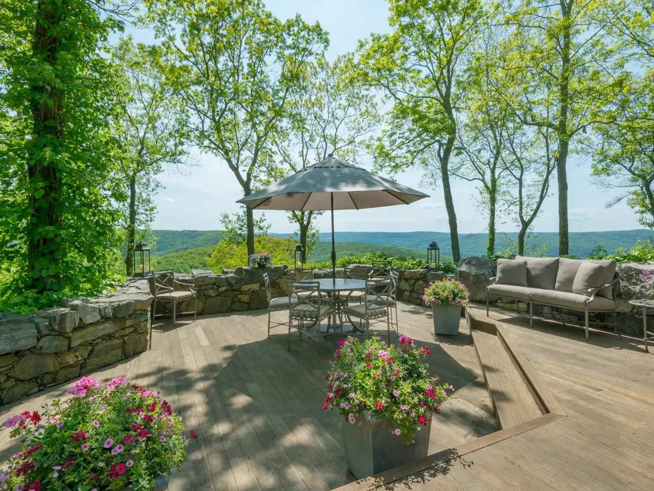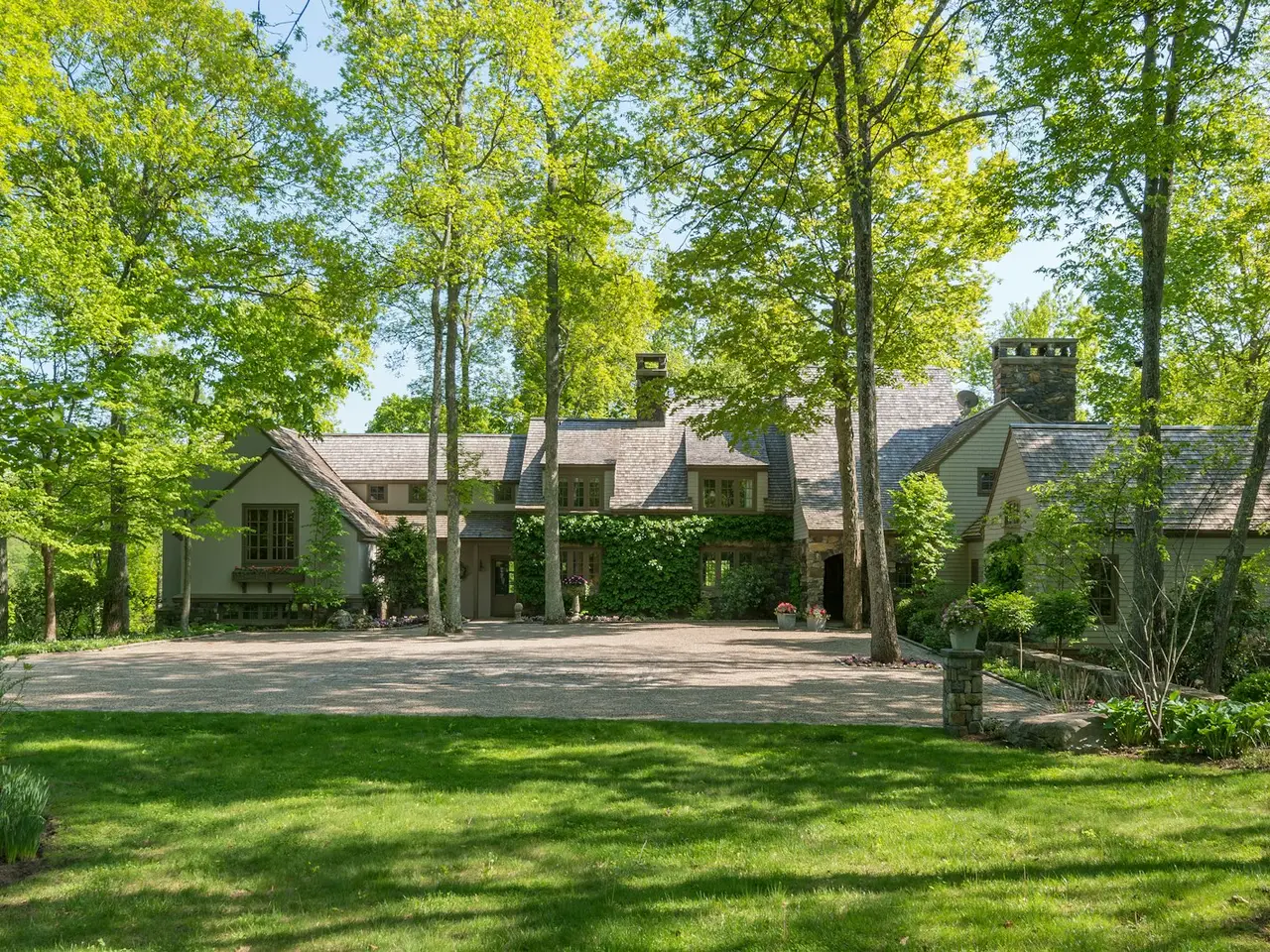 Perched on the crest of a plateau overlooking panoramic, protected views, West Wind Hill, a bespoke country estate on 389 plus acres, straddles Kent, CT and Amenia, NY. Experience this truly magnificent classic stone and shingle manor house sited perfectly to experience lush sunsets and fairytale mists with the upmost in privacy. Only eight minutes from the center of Kent and less than two hours from New York City, access is via a private gated road that winds through trees, past old stonewalls with glimpses of open meadow and a serene pond. Spacious rooms perfect for entertaining include a large great room with a soaring peaked ceiling and a 20' stone fireplace, a sun-filled formal dining room with three exposures and a huge chef's kitchen with a massive stone fireplace and adjoining catering kitchen, a marble paneled powder room and mud room. Beautiful reclaimed chestnut floors, exquisite detailing and numerous banks of windows and French doors make this an unparalleled home. The primary bedroom suite which includes a paneled library, separate office workspace and large bathroom and dressing areas--is located on the first floor in a private wing of the house. Of course, there is a billiard room, complete with mini-kitchen and bar, full bath and adjoining guest bedroom/office area. A second-floor, primary-sized guest room has a beautiful bath with soaking tub and deck that faces the amazing mountain views. Two bedroom suites with ensuite bathrooms, a charming peaked bedroom and a well-appointed office area complete this floor. The extensive and recently renovated lower level contains a media room with 9' screen, half bath, wine tasting room and wine cellar with adjoining prep kitchen for large gatherings. In addition, there is a sunny laundry room, craft room and gym with ground level access. Beautiful stone steps lead down to a stunning natural stone pool and a tennis court. There is also a two-story pool house with spiral staircase, full kitchen and full bath. The expansive two building maintenance court also contains a pumping system for irrigating the lawns and gardens.