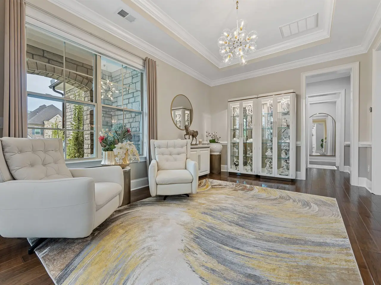 Stunning European castle style home in the premier gated Ladera community. Full brick & stone exterior. No expense was spared in the detailed and high end renovations thru-out-a true gem! Stunning two-story foyer with an elegant, curved staircase. Flowing & spacious first floor hosts a gourmet kitchen with a huge quartz island, 2 story great rm with gas fp, generous dining area, sunroom/study, scullery w/ sink, large pantry, private guest suite and powder rm. Telescoping sliding glass doors open to the airy screened-in porch overlooking the private and extensively landscaped yard. Second flr provides for the luxurious primary retreat boasting a spa-like bath which includes a dual vanity, large tiled shower, huge closet with tons of storage and sitting area. 3 additional bedrooms each with their own private bath. Open loft/flex space completes the picture. Enjoy the picturesque setting w/ koi pond, view of the pond & fountain as you relax on the oversized patio. Union county taxes only