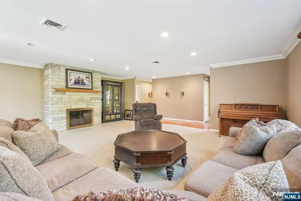 Welcome home to this beautifully maintained 4,900 sq ft Ranch nestled on a thoughtfully landscaped lot. Designed for effortless one-floor living, this spacious residence combines comfort, elegance, and functionality. Step into the welcoming entry foyer that opens to the bright, open-concept main living area. The spacious living room invites relaxation with its large windows and cozy gas fireplace, seamlessly flowing into the elegant dining room adorned with custom moulding an ideal setting for intimate meals and lively gatherings. The home chef's dream kitchen features custom cabinetry, marble countertops, stainless steel appliances, built-in desk, and separate dining area, opening to the inviting family room with large windows, fireplace, and access to the deck perfect for indoor-outdoor living. The main level offers two primary suites, each with a private en suite bath, along with two additional bedrooms and a full bathroom. The expansive finished lower level provides versatility with a second family room, gas fireplace, den overlooking the backyard, sliding doors to the patio, a third primary suite, additional bedroom, full bath, laundry, and ample storage. Outdoor living is equally impressive with a deck for al fresco dining, a patio ideal for entertaining, and a fully fenced yard offering privacy and space for recreation. Conveniently located near NYC transportation, shopping, and dining, this exceptional home offers the perfect blend of space, style, and convenience.
