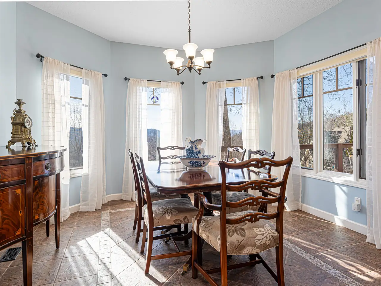 This contemporary mountain home offers a perfect blend of design and natural beauty. Boasting long-range views of the surrounding mountains and golf course, this home is a serene escape. The open floor plan invites seamless flow, with high ceilings and a spacious living area that is ideal for both relaxed family living and entertaining. A cook's kitchen with a large island is the heart of the home, while the living room and dining areas offer breathtaking views. Guests can unwind in generously sized guest rooms on both the second and terrace levels. Outdoor living spaces extend the beauty with a large new deck perfect for soaking in the mountain air and stunning vistas. The terrace level is designed for ultimate entertainment, featuring a versatile entertainment room and laundry/exercise room. Whether you're looking for a peaceful retreat or a place to entertain, this home provides the ideal backdrop for mountain living at its finest.