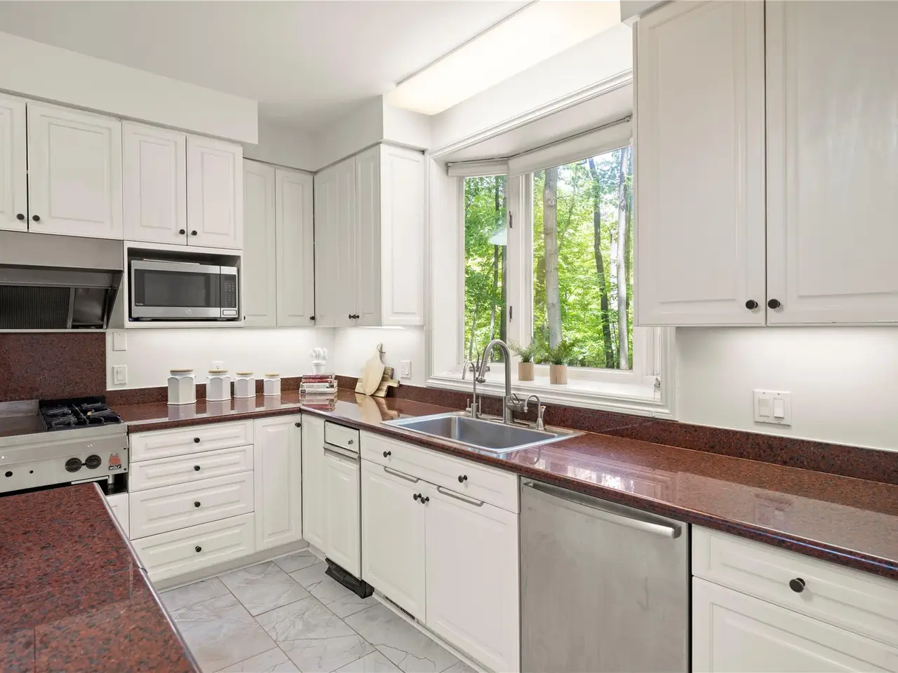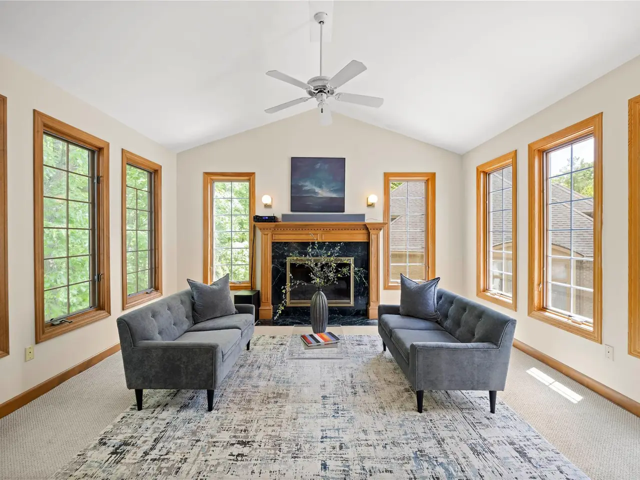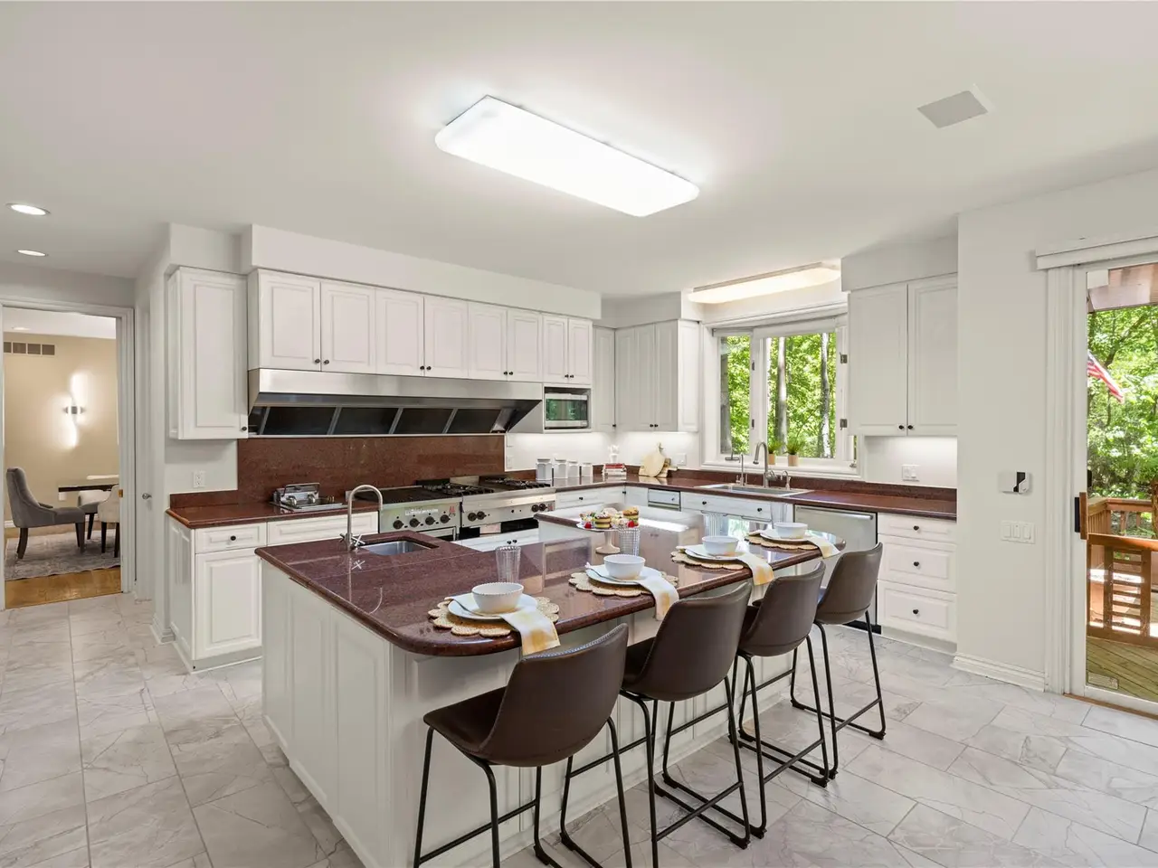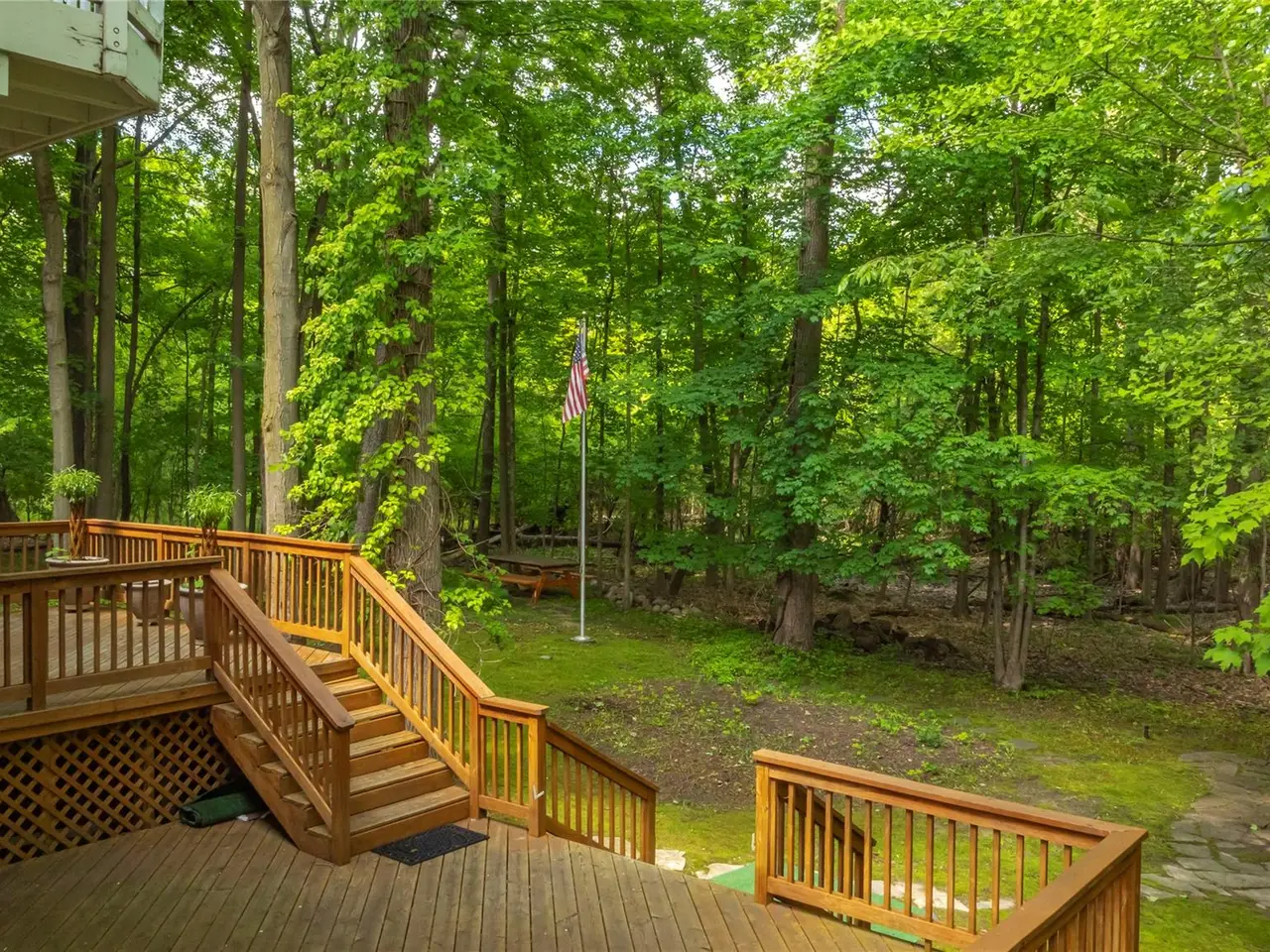 Welcome to 6212 Bromley Court! Nestled at the end of a tranquil cul-de-sac within the prestigious Stonebridge community of West Bloomfield, this custom-built colonial masterpiece offers unparalleled luxury and privacy. Spanning over 8,200 sqft, this residence features 5 spacious bedrooms, 5 full and 2 half bathrooms, and a 3-car heated garage equipped with a TESLA charger. As you enter, a grand two-story foyer welcomes you, leading to a formal library with custom woodwork and built-in storage. The large living room boasts lofty ceilings, Palladian windows, and French doors that bathe the space in light while offering views of the surrounding trees. The entertaining area with a wet bar is ideal for gatherings. The gourmet kitchen includes a professional-grade Wolf gas range, center island, walk-in pantry, and a breakfast nook that opens to a cozy family room with built-in shelving. A separate sitting room with a fireplace adds to the home's inviting ambiance. Additional main-level amenities include a guest powder room, laundry, and a pet wash station. The upper level houses five bedrooms, including a luxurious primary suite featuring vaulted ceilings, a private balcony, sitting room with a fireplace, multiple walk-in closets, a home office space, and a spa-like bathroom with a jetted tub, euro shower, and makeup vanity with new countertops(2025). The fully finished lower level features versatile living spaces, including a commercial grade golf simulator room(2024, $30K value), a theater room, a state-of-the-art fitness room, two full bathrooms, a remodeled wine room(2025), and ample storage. Set on a 0.32-acre lot with lush landscaping and mature trees, this home combines elegance and modern amenities perfectly. Additional highlights include a whole-house generator and a new Trex Deck.