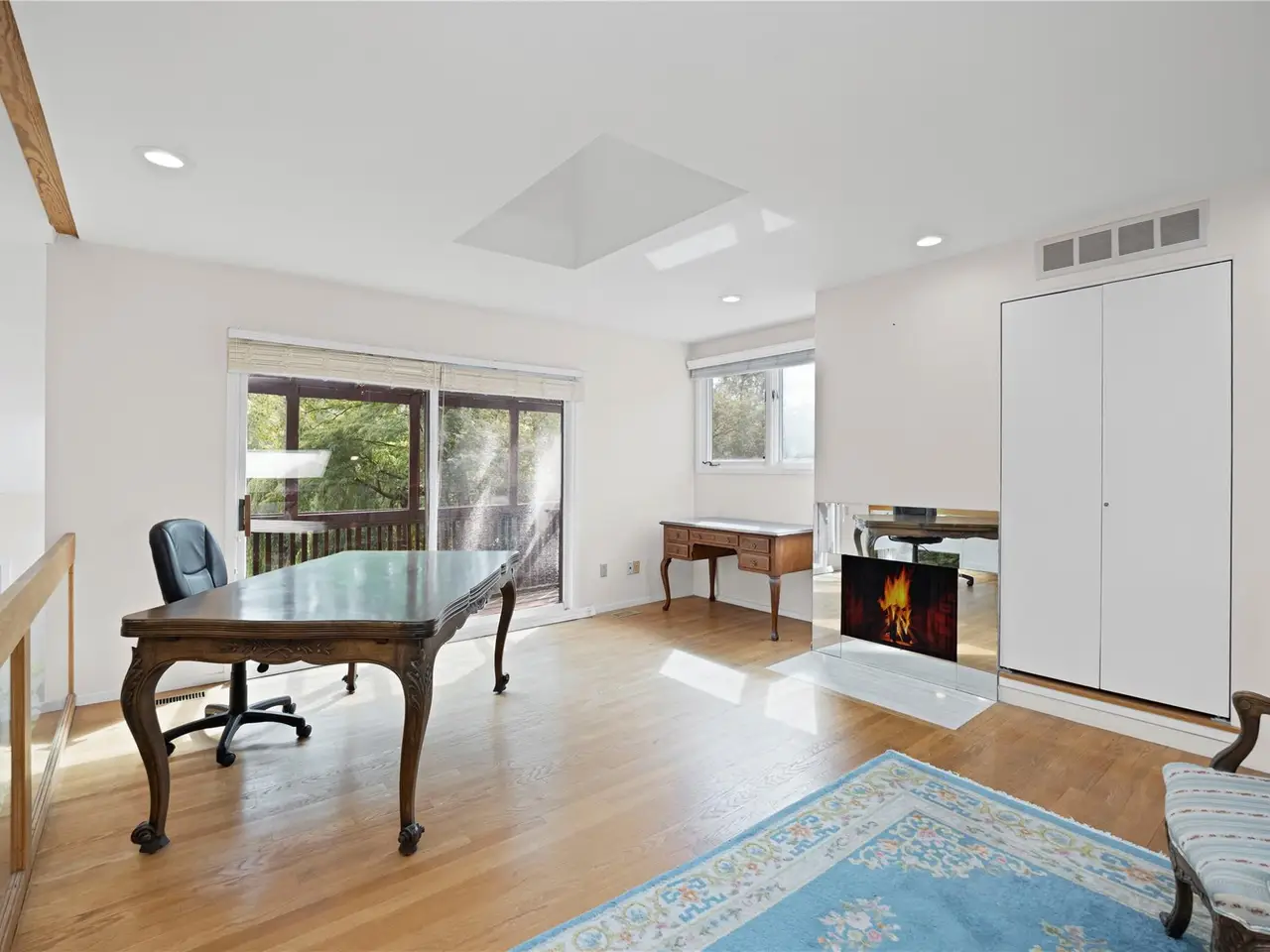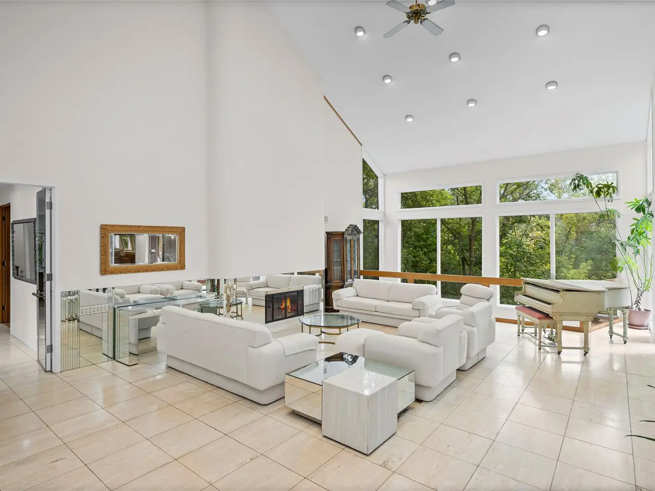 Welcome to this exquisite ranch estate nestled in the heart of West Bloomfield, meticulously designed and crafted by renowned architect David Lubin and being offered by its original owners. This stunning residence seamlessly blends sophisticated architectural elements with luxurious water-front living. Step inside to soaring ceilings in the expansive great room, adorned with floor-to-ceiling windows that showcase breathtaking water vistas. The gas fireplace and elegant travertine flooring create a warm, inviting ambiance perfect for entertaining or relaxing. The gourmet kitchen is a chef’s dream, featuring high-end appliances, abundant cabinet and counter space, a generous walk-in pantry, and an oversized nook/ living room overlooking the tranquil water—ideal for casual dining or a morning coffee. A striking spiral staircase ascends to a versatile loft area, complete with its own gas fireplace, balcony overlooking the water, and panoramic views of the entire first floor. The primary suite offers a private retreat with natural hardwood floors, soaring ceilings, and a private balcony overlooking the water. His and her walk-in closets lead to a luxurious private ensuite. The second main-level bedroom boasts a large walk-in closet, a private ensuite, and versatile space suitable for an office or lounge area. The finished walk-out lower level adds approximately 3,400 square feet of versatile living space, featuring two additional bedrooms, a full bathroom, and a half bath. A spacious entertaining area with floor-to-ceiling windows offers stunning views of the backyard and water, providing an ideal space for relaxation or entertaining. Located in the vibrant West Bloomfield community, this exceptional home is served by the award-winning Bloomfield Hills Schools. Experience luxurious waterfront living in this architecturally and functionally stunning estate.