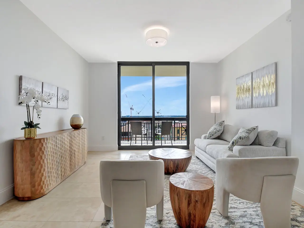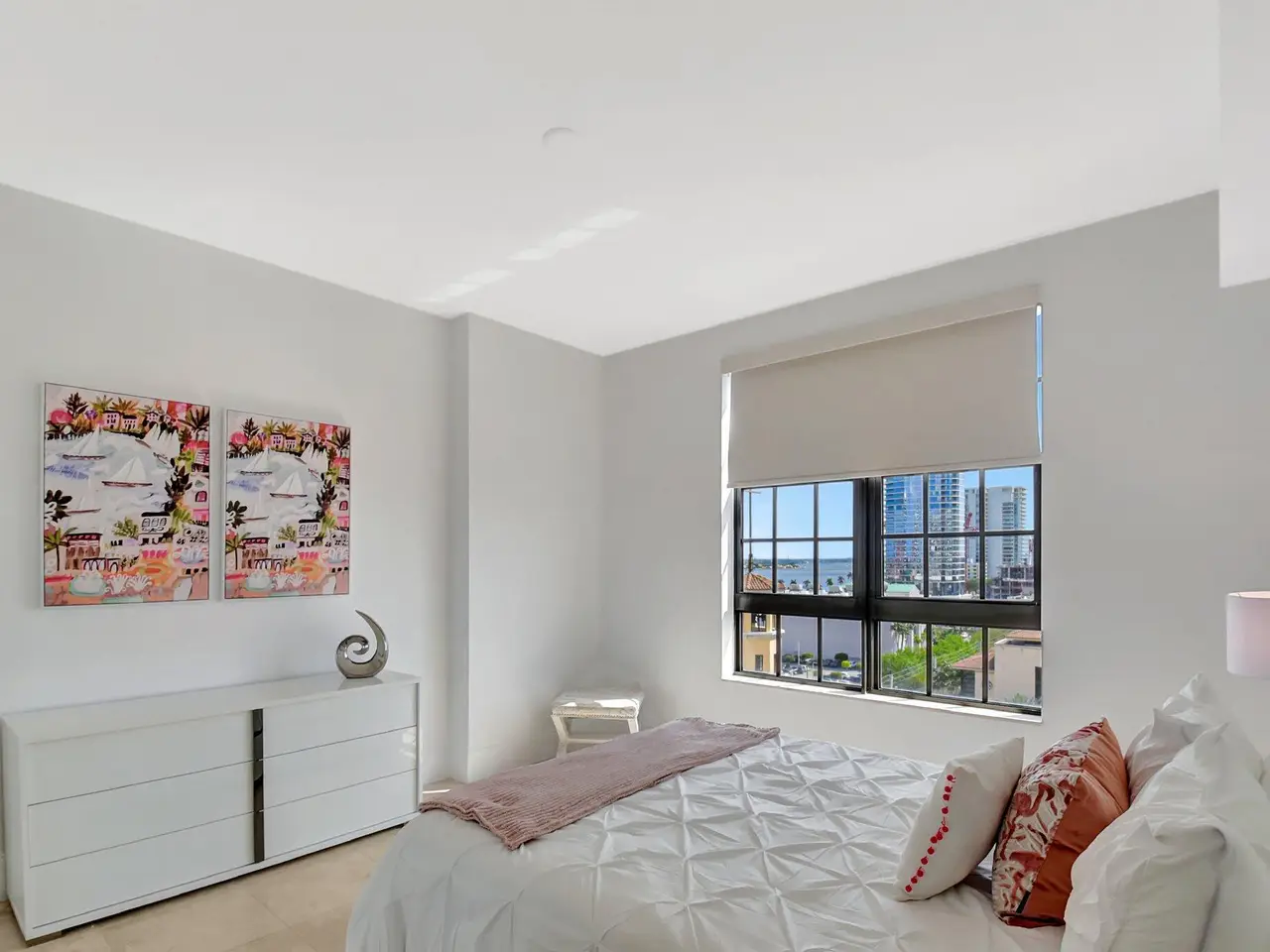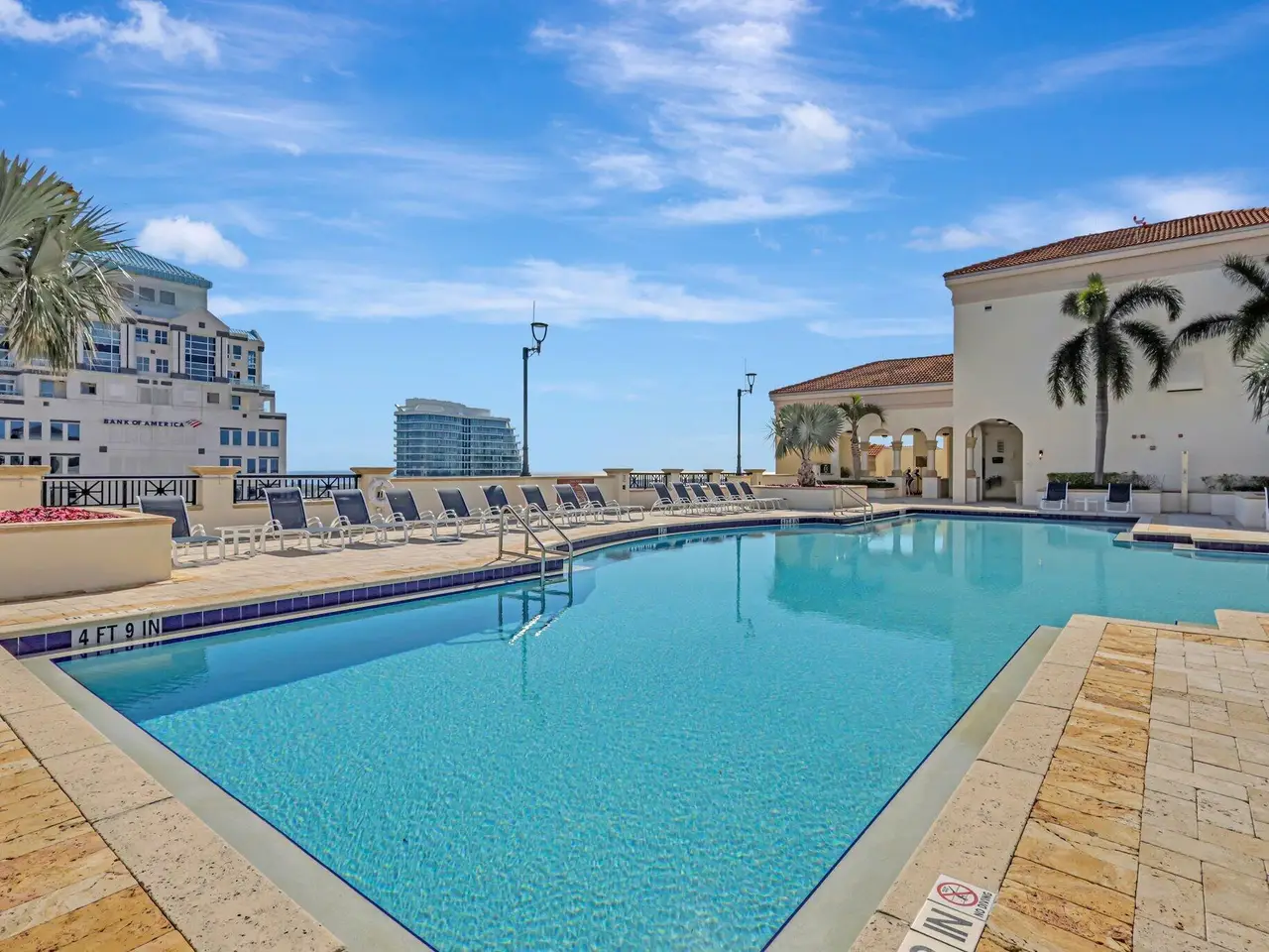 A must see! Recently staged with beautiful brand new furniture. Amazing SE water views from all windows. Stunning kitchen with dining island, stainless steel appliances. Primary bedroom has 3 California closets. Polished marble primary bath with 2 vanities separate shower and Roman soaking tub. Renovated 2nd bathroom. Upgrades throughout include all new electrical, high hats and lighting fixtures, bathroom mirrors, faucet and fixtures. 24/7 manned lobby, guest and valet parking, state-of-the-art fitness center, club room. Amazing Roof Top views of Palm Beach, ocean and the intracoastal where you can relax in the heated pool, steam room, sauna or BBQ and outdoor dine. Dog friendly building! 10 minutes to PBI airport. Walk to Clematis.