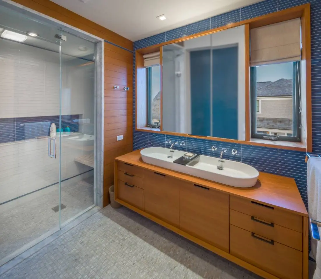 • Glass and wood details throughout