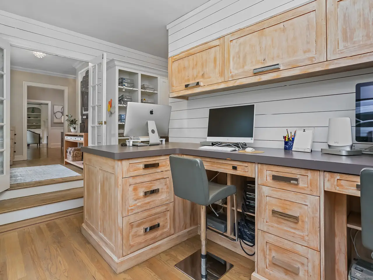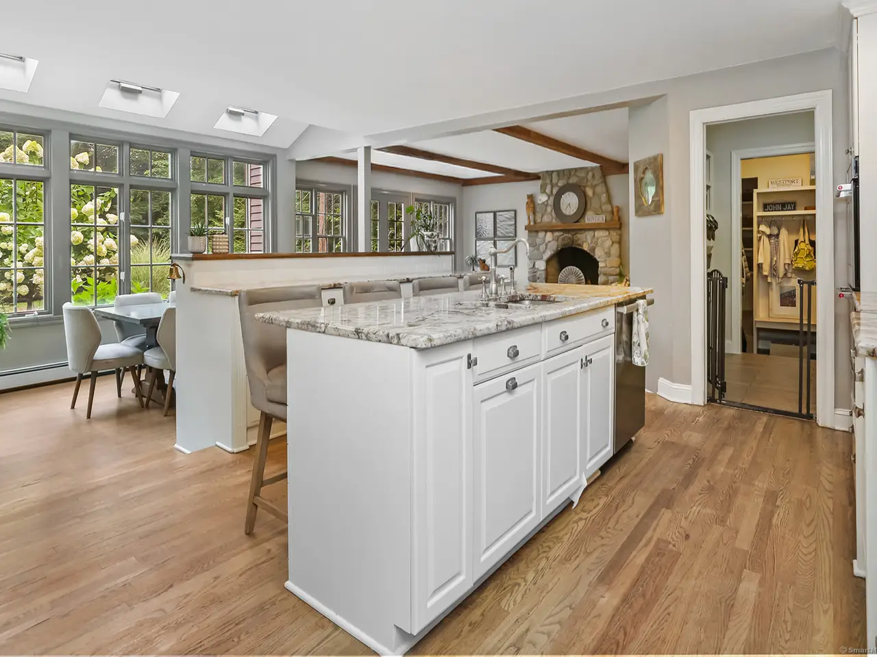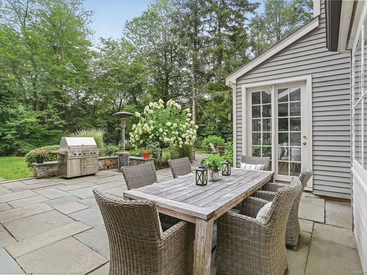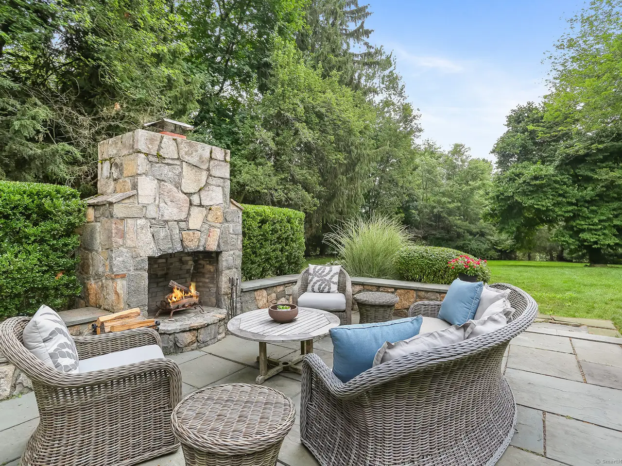 Welcome to this beautifully maintained 1945 stone-front Cape in the heart of Old Hill. Loved by the same family for 22 years, it radiates warmth and character. With five bedrooms, 5.5 baths, and two flexible spaces for home offices, it offers comfort and versatility, including a first-floor suite ideal for guests or in-laws. The light-filled kitchen flows into an inviting dining area and cozy sunken family room with a stunning river-rock fireplace-perfect for gatherings or quiet evenings. French doors open to a level backyard with a bluestone terrace, outdoor fireplace, and grilling area, creating an ideal setting for entertaining. A three-car tandem heated garage, mudroom, pantry, and laundry room add practicality, while a gracious dining room and front-to-back living room with built-ins and a second fireplace set the stage for special occasions. Upstairs, the serene primary suite offers a balcony, spa-inspired bath, and dressing room. Three additional bedroom, two additional full baths and a loft provide space for everyone. The finished lower level features a playroom, gym area, full bath, and ample storage with walk-out access to the garage. Move-in ready with room to personalize, this special home invites you to start your next chapter in one of Westport's most desirable neighborhoods. Don't miss the chance to make it yours!