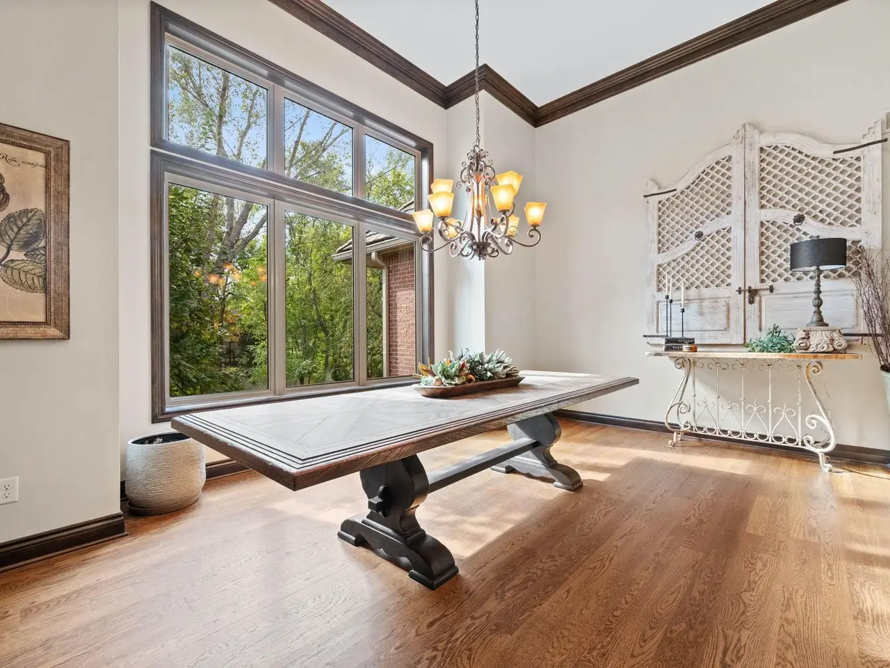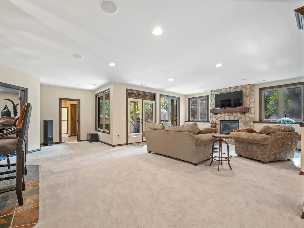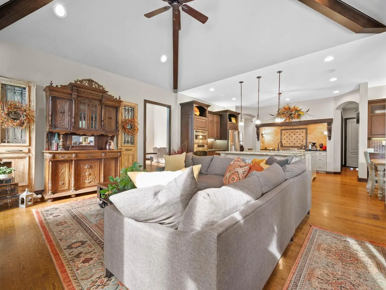Welcome Home to 8219 W. Meadow Park, located in the sought-after gated Fossil Rim Estates neighborhood of west Wichita. This full brick and stone residence combines craftsmanship, comfort, and natural beauty on nearly one acre backing to mature trees. Designed for everyday living and memorable entertaining, the home offers 6 bedrooms, 4.5 baths, and approximately 6,082 sq ft of finely finished space. Step inside to find architectural detail at every turnarched entries, custom millwork, crown moulding, and gleaming hardwood floors. The open main level showcases a formal living and dining area with built-ins, gas fireplace, and tall windows that frame peaceful tree views. The adjoining hearth room features a stone fireplace with beam accents, creating a warm gathering space connected to the gourmet kitchen. Well-appointed for cooks and hosts alike, the kitchen includes granite countertops, double ovens, gas cooktop, stainless appliances, two large islands, and a walk-in pantry with prep sink. A main-floor office provides an ideal workspace, while the laundry room offers built-in cabinetry, sink, and drop-zone bench. The spacious primary suite is a private retreat with a coved, lighted ceiling and a wall of windows overlooking the wooded yard. The spa-style bath offers dual vanities, jetted tub, custom tile shower, and an impressive walk-in closet with built-ins. Two additional bedrooms and a full bath complete the main level. The finished walk-out basement extends the living space with a large family room centered around a stone fireplace, full wet bar with granite counters and slate flooring, billiards area, exercise room, two bedrooms, concrete safe room, and abundant storage. Natural light and patio access make the lower level ideal for entertaining or relaxation. Outdoor living shines here with a covered composite deck featuring a stone fireplace, perfect for year-round enjoyment, and a lower brick patio surrounded by landscaped beds. The expansive yard includes fencing, fire pit, and a private well and sprinkler system. The side-load three-car garage offers epoxy flooring and extra workspace. A concrete tile roof and full masonry exterior provide exceptional durability and timeless curb appeal. Located in Maize School District 266, within minutes of Sedgwick County Park, NewMarket Square shopping and dining, Ridge Road corridor amenities, and the Northwest YMCA, this property delivers the perfect balance of privacy and convenience. Experience refined living in Fossil Rim Estateswhere design, setting, and quality craftsmanship come together in one remarkable west-side Wichita address.