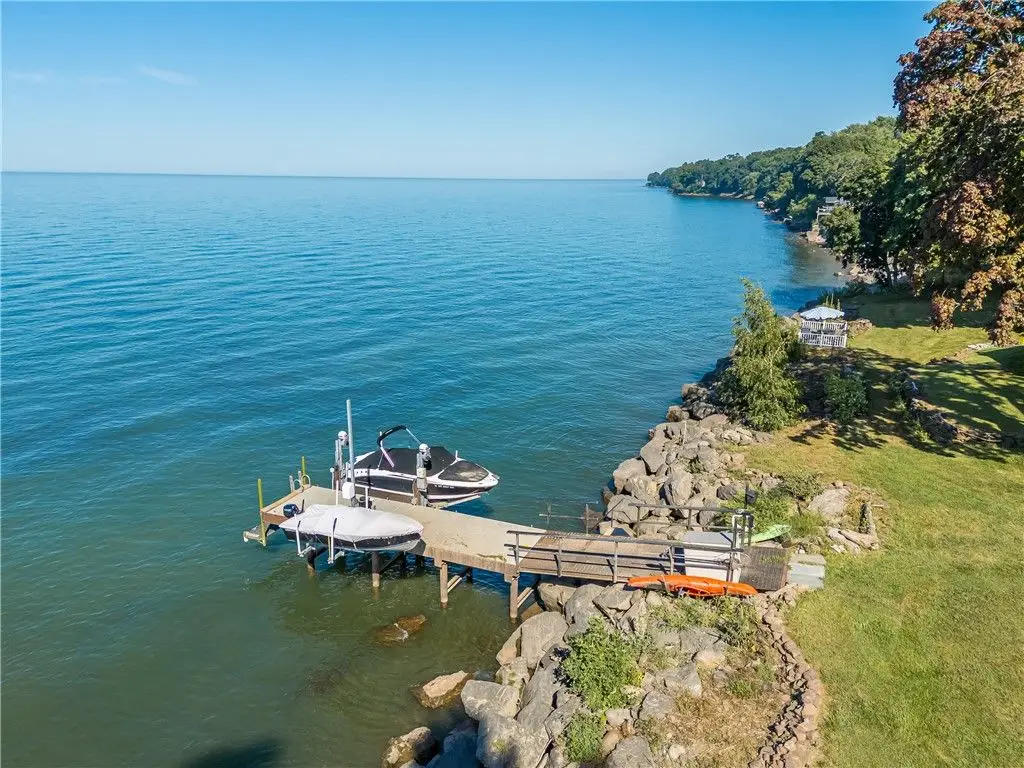 SPECTACULAR LAKE ONTARIO DESIGNER SHOWCASE DREAM ESTATE with MILLION DOLLAR VIEWS & 310' LEVEL LAKEFRONT with STONE BEACH & PERMANENT DOCK for your boat plus 1.7 ACRES! ULTIMATE LAKE ONTARIO DESIGNER SHOWCASE worthy of being in ARCHITECTURAL DIGEST! UPDATED TO PERFECTION including a MAIN HOUSE, GUEST HOUSE & more! Amazing Value with the replacement value of over $5 Million! Main Estate Home features a stunning interior, starting with a grand foyer leading to the hallmark of this special home is the GREAT ROOM with beam ceiling & custom moldings, two fireplaces with living and dining areas with a granite counter wet bar for great entertaining......opening to the most spectacular SUNROOM with custom heated tile floors and a wall of glass with those MILLION DOLLAR VIEWS! The DESIGNER COOK'S KITCHEN has beautiful cabinetry, breakfast counter, stainless steel appliances & more! The 1st floor also features an office or potential bedroom and adjacent bath. The excitement continues upstairs with a GRAND LAKEVIEW OWNER'S SUITE with fireplace living area, spacious bedroom ALL LEADING TO THE ULTIMATE ELEVATED SUN DECK with those MILLION DOLLAR VIEWS. Plus a huge walk in closet/room and the ULTIMATE SPA BATHROOM with dual vanities, bath and shower! 2nd floor also features a laundry and three other bedrooms & bath! Enjoy the lake lifestyle with the ULTIMATE ENTERTAINMENT LAKEVIEW COURTYARD with raised fireplace, plus a garden room where the window opens to serve drinks..this amazing courtyard opens to the ULTIMATE GUEST HOUSE! Just beautiful with CATHEDRAL CEILING GREAT ROOM with a wall of glass including kitchen area, plus a separate bath & laundry area....leading to the open staircase to a loft bedroom! This stunning estate has beautiful landscaping with a tennis court and lakeview deck...to enjoy the SPECTACULAR SUNSETS! The evening lighting of this entire property is just spectacular!!! With 310' waterfront, property could be subdivided subject to town approval. You can have it all with this exceptional DESIGNER SHOWCASE LAKE ONTARIO DREAM ESTATE easy access to Rochester & Western New York. Main house approx. Sq.Ft. 3,692 & approx. Sq.Ft for guest house 1,442.