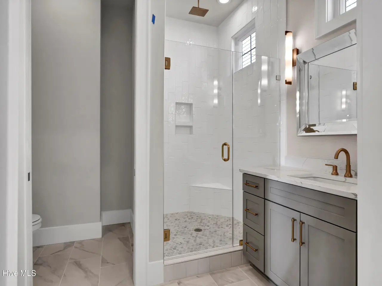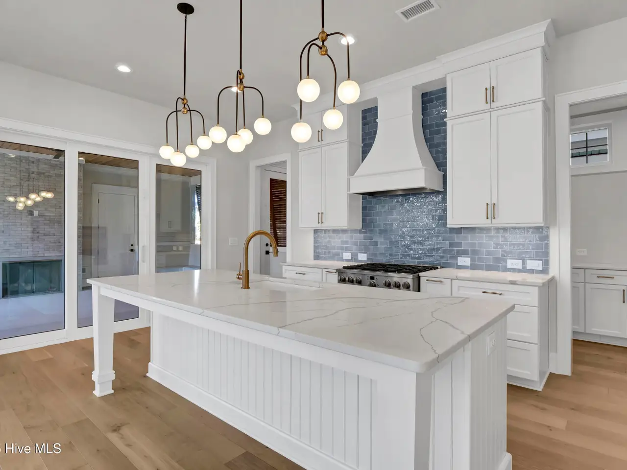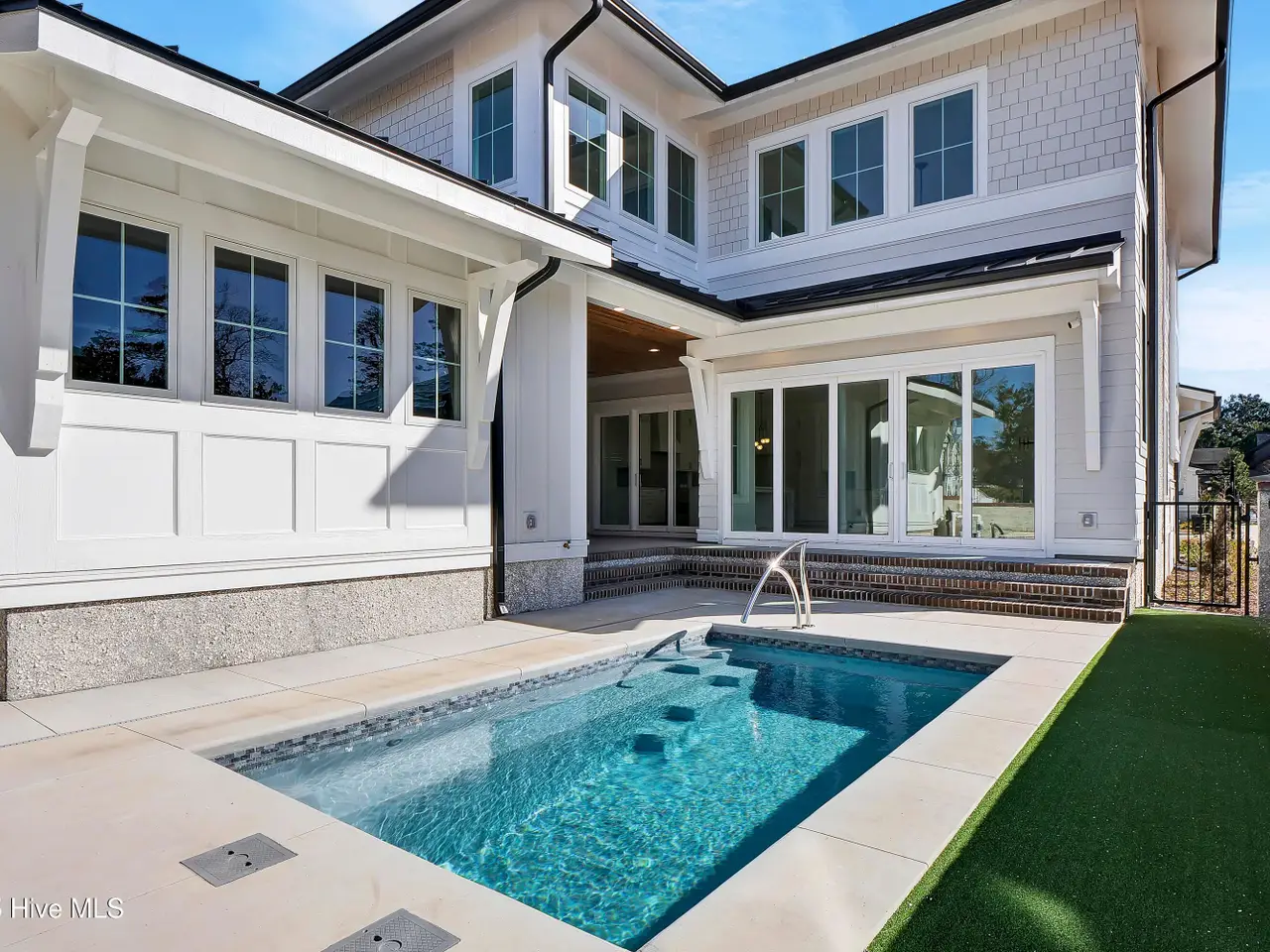 Introducing the exclusive custom home by Shenandoah Homes, a modern coastal dream come to life. 3,185 heated square foot home that presents primary first floor living with a design layout that is perfect for family and friends to enjoy. The exterior will feature incredible Hardie siding with a beautiful charcoal metal roofing and bracket details will give this timeless exterior something to rave about. As soon as you step through the front door, you'll be greeted with an incredible foyer with the clean-line iron stair railing that carries your eye up to the 2nd floor. Ahead, your eyes will wonder through the gathering room with views to the lush backyard and pool. The primary master suite will provide a gorgeous trim feature wall, pendant lighting, and incredible design elements in the master bath. Upstairs will house bedrooms 2-4, in addition to a spacious lounge with mini office or storage room. Whether you are cozied up on the gracious front porch that overlooks Lebanon Chapel park or enjoying the privacy of the large covered back patio and yard with its natural gas fireplace, outdoor grill and plunge pool, you are bound to pick the perfect spot to relax and enjoy the beautiful outdoor spaces.