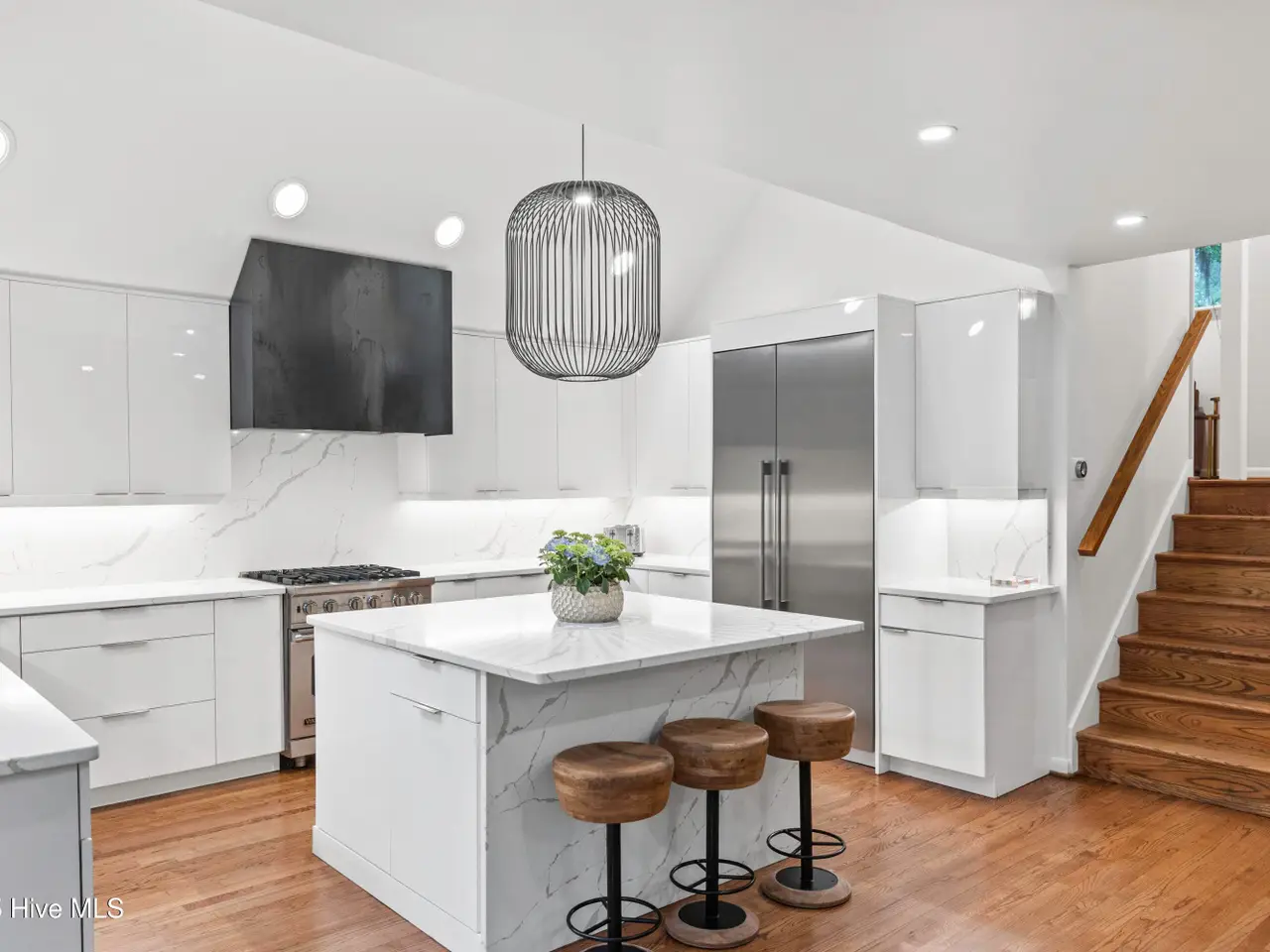 Welcome to a rare opportunity to own an extraordinary residence in the prestigious and highly coveted Westport community, nestled just off Greenville Loop Road. This exclusive waterfront community enclave offers privacy, elegance, and a lifestyle reserved for the discerning few. With deep water access and your own 30' boat slip, Westport epitomizes luxury coastal living. This impeccably renovated and architecturally refined home is a modern masterpiece, where timeless elegance meets contemporary sophistication. Anchored beneath the canopy of centuries-old live oak trees, the property immediately enchants upon arrival. Step inside to be greeted by a soaring vaulted ceiling in the living room, illuminated by the signature cloud chandelier--a statement piece that sets the tone for the rest of this breathtaking home. Every element has been thoughtfully curated, with seamless transitions and refined design choices throughout. The modern chef's kitchen is a work of art, featuring premium Thermador, Miele, and Viking appliances, custom cabinetry, and finishes that demand admiration. The home offers five uniquely designed bedroom suites, each its own jewel box sanctuary, complete with boutique-style bathrooms. An inviting lounge and playroom offer space for relaxation, entertainment, and family living. The mudroom doubles as a design feature, with functionality and artistry harmoniously integrated. The three-car garage offers ample storage and flexibility for your lifestyle. Step outside to your custom Ipe wood deck, bordered with sleek stainless steel cables, and enjoy your private haven. A short stroll down the charming, tree-lined street leads to the community gazebo and marina, where you'll savor panoramic views of Wrightsville Beach and the Intracoastal Waterway. Here, you'll enjoy unforgettable summers, breathtaking sunsets, and daily moments of peace aboard your personal vessel. This is more than a home--it's a lifestyle. Welcome to Westport!