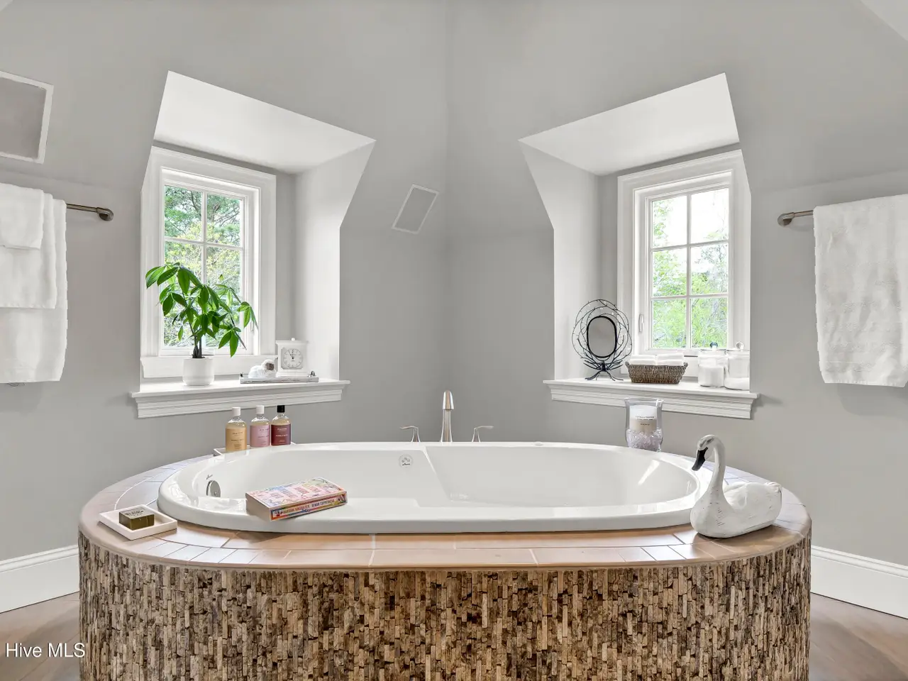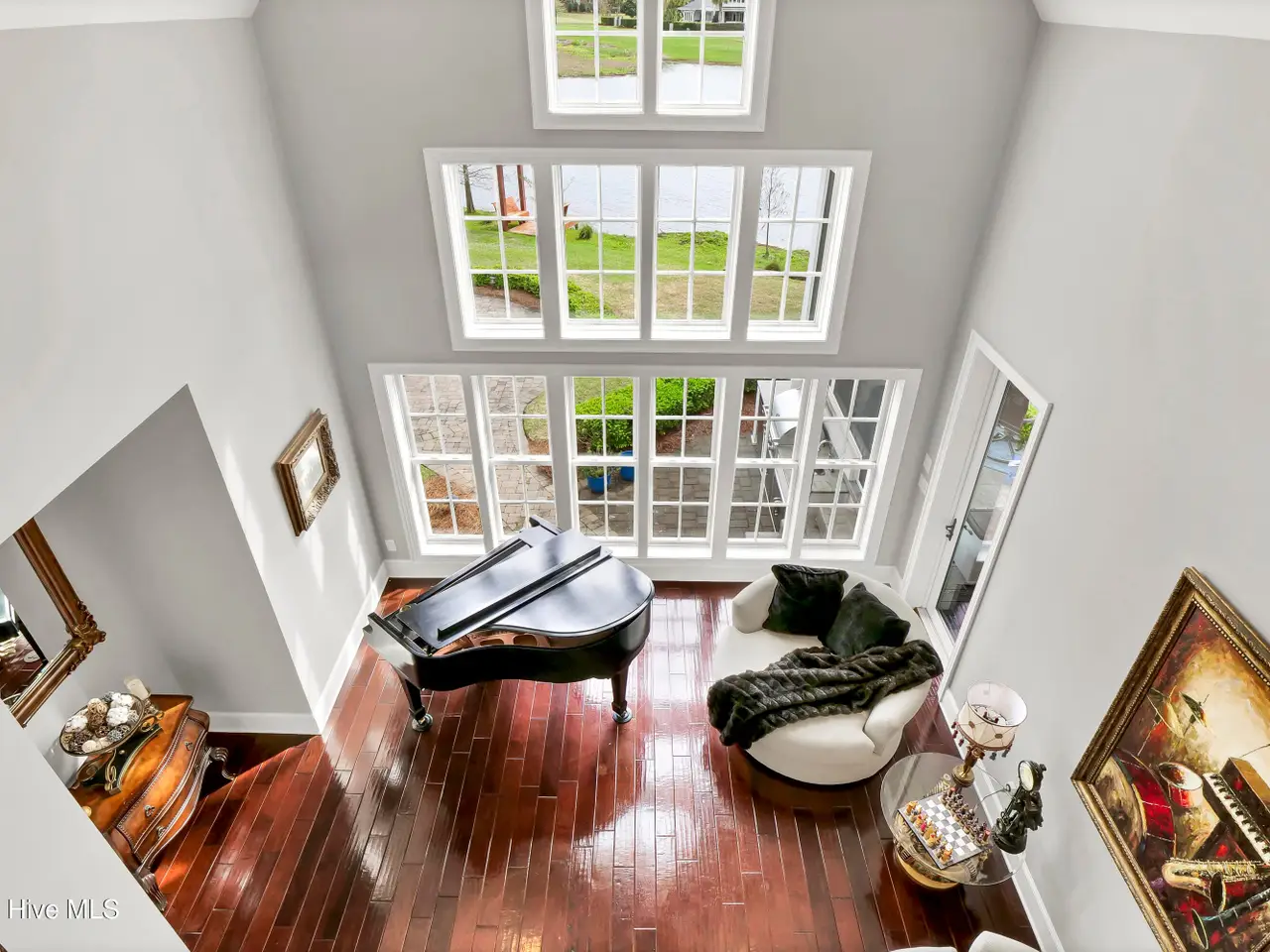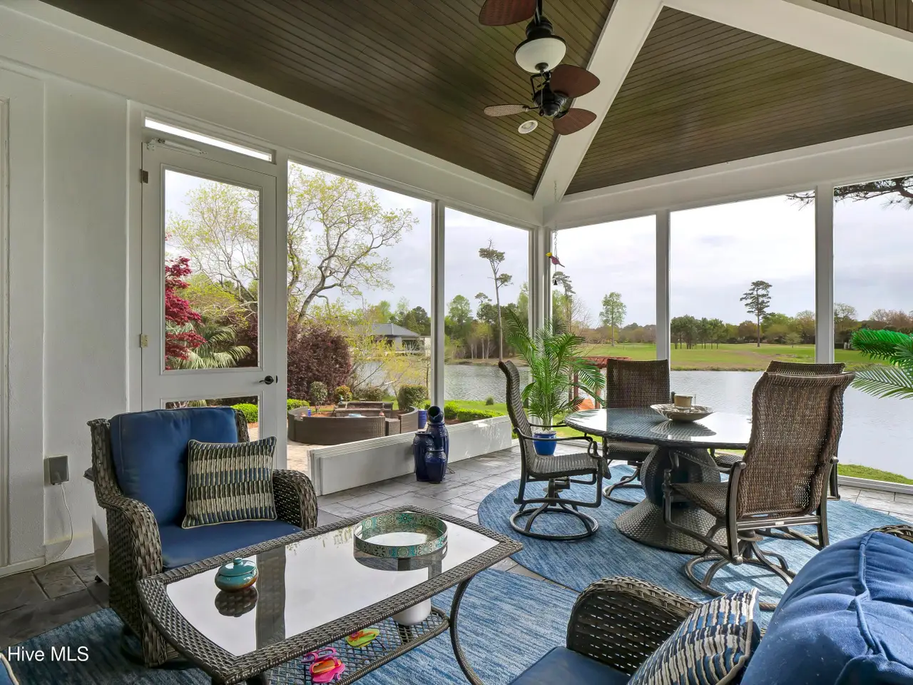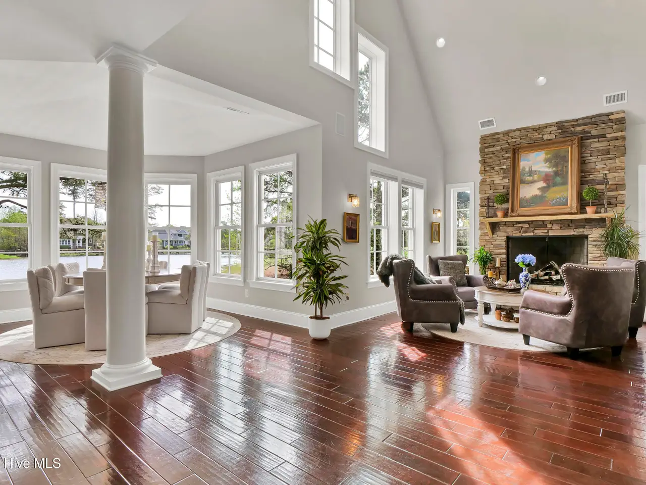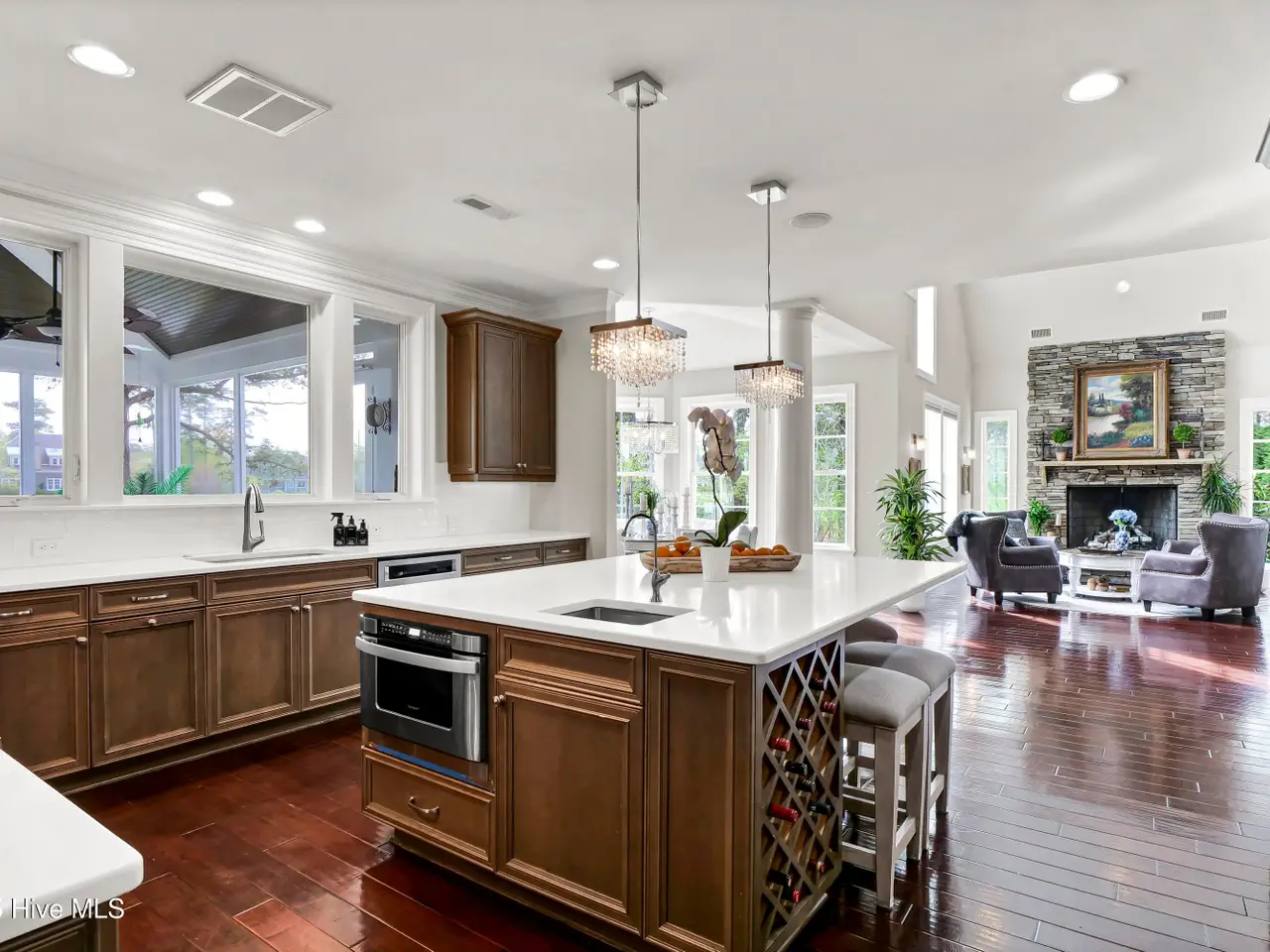 Situated on a quiet, private cul-de-sac in a peaceful peninsula-like setting is where you'll find this lovely lakefront Landfall sanctuary with Marsh #8 golf course views. Let your cares slip away as you gaze at swans gliding across the water, turtles basking in the sun or a variety of birds dancing in the breeze. The interior is equally as serene, as a Koi pond with fountain greets you in the foyer along with wood floors & soft, soothing colors that carry throughout formal and informal areas of this stunning residence. You'll love hosting memorable gatherings with family & friends in your gorgeous gourmet Kitchen complete with beautiful new quartz countertop, a Thermador professional series 6 burner natural gas range & 2 ovens, Thermador refrigerator, new dishwasher new microwave, beverage refrigerator, even reverse osmosis, a prep sink & roll out shelves. The generous Kitchen opens to formal & informal living & dining spaces with a stacked stone natural gas or woodburning fireplace. You'll find 2 offices/bedrooms with adjoining balcony and full bath on the first level; upstairs enjoy 4 bedrooms including the oversized Primary Suite with vaulted ceilings, a reading/exercise/meditation area, spacious walk-in closet, sizable jetted tub AND separate jetted shower. Heaven inside & out. Instantly fall in love with the incredible outdoor space - whether entertaining on your lanai, telling tales around the firepit, or simply sitting under the arbor near the water feeling the sunshine. Other special features of this amazing home include 107 windows including floor to ceiling in the Great Room offering abundant natural light, repainted interior, 2 on-demand hot water systems, whole house water filtration system, irrigation system on a well, efficient geothermal heating & cooling for very low energy bills, Laundry Room with sink & cabinets, wired for sound, oversized 2 car garage and fenced backyard. Wow.