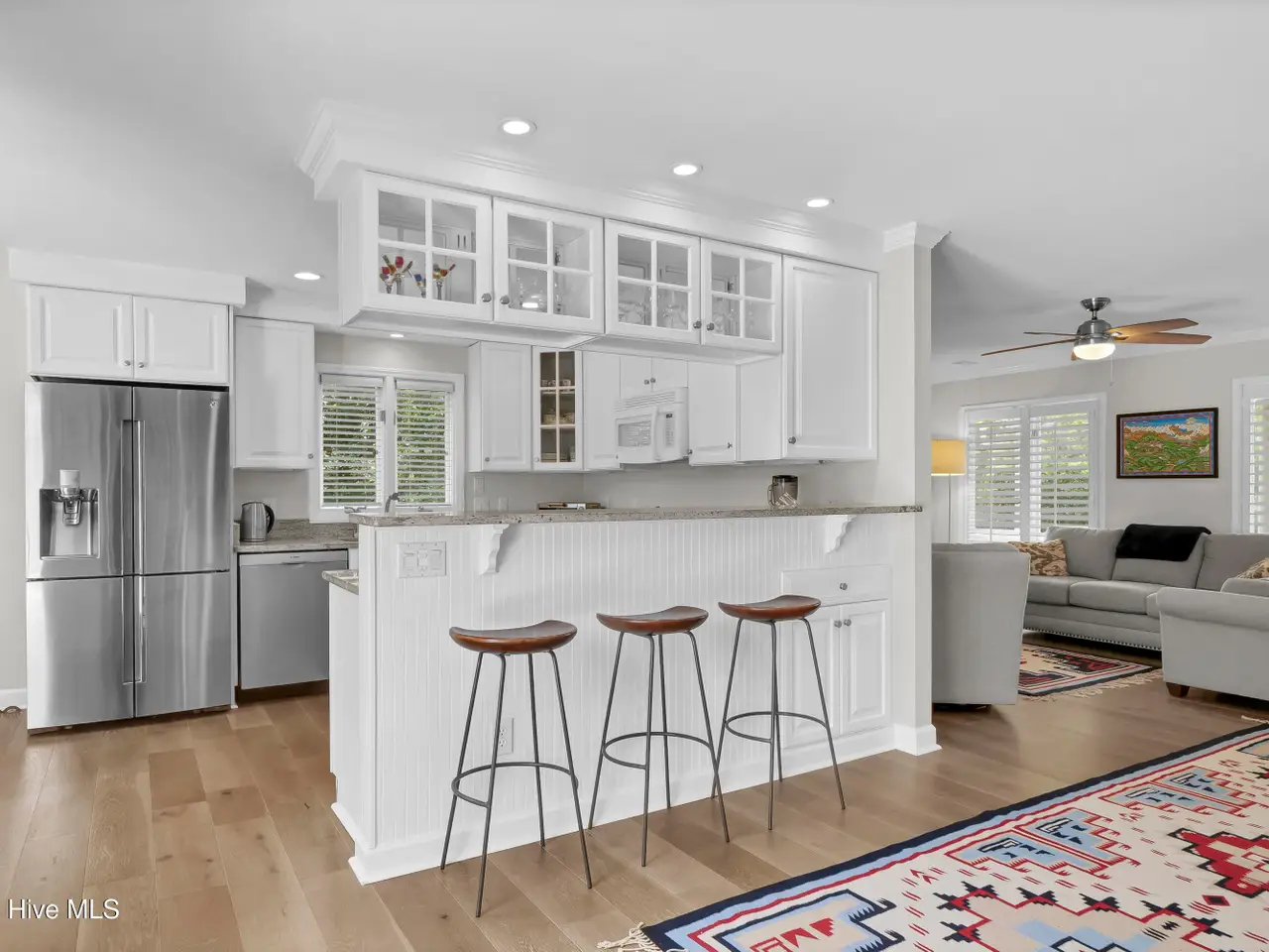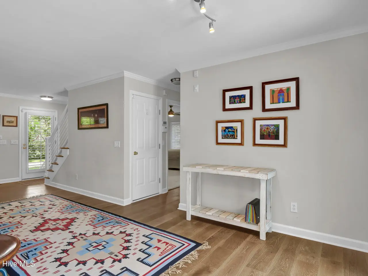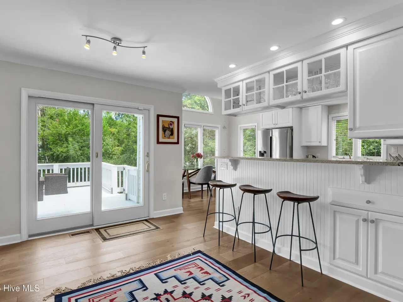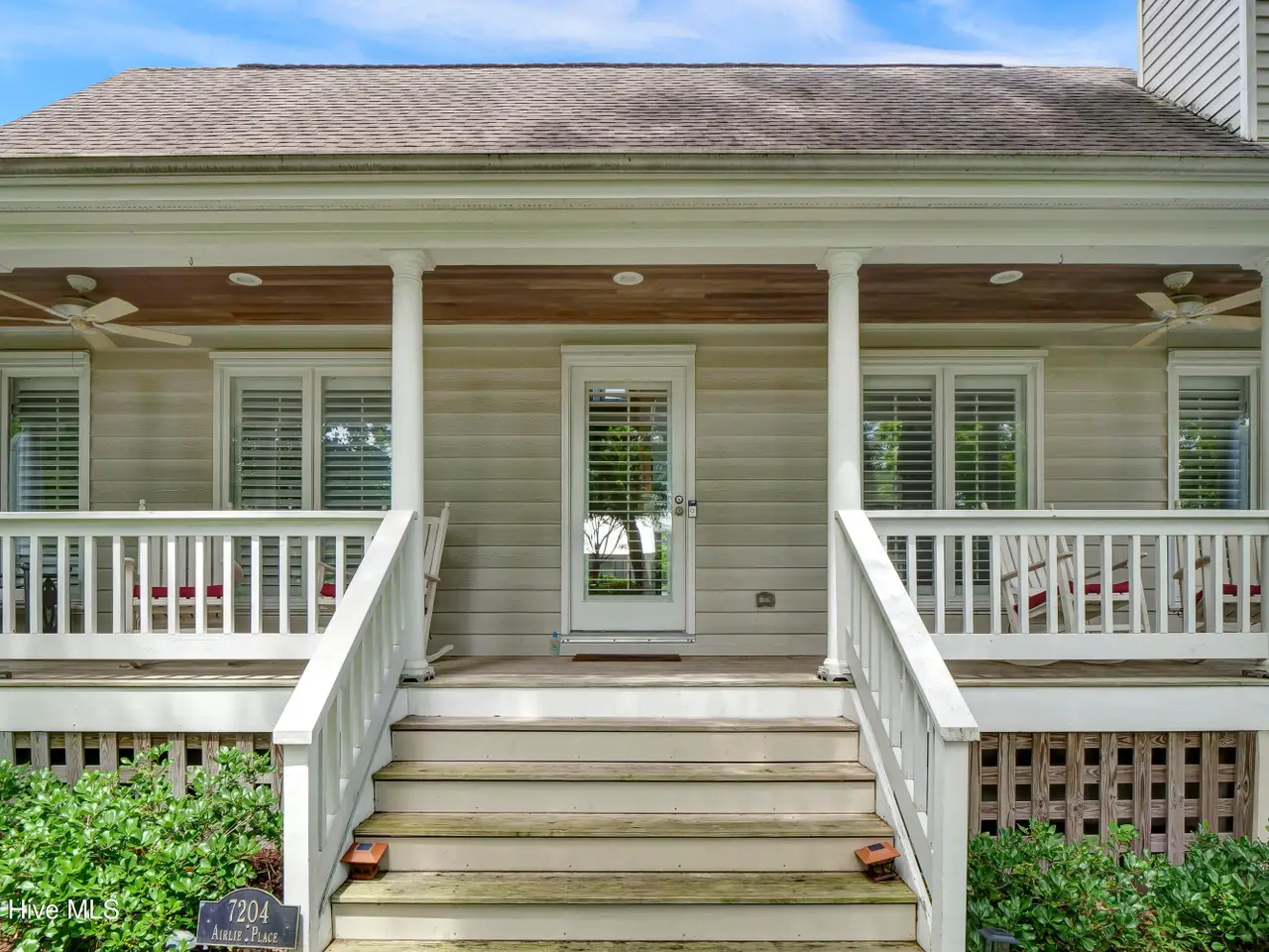 The drawbridge to Wrightsville Beach is the epicenter of the bubble and the best life in the Wilmington area. While this house is only 2371 square feet, it packs a punch with its rocking chair front porch, open floor plan, three bedrooms, 4 1/2 baths plus additional suite with kitchenette on the ground floor and two car garage. The elevated back deck overlooks, a beautifully landscaped pond and the Airlie Place neighborhood pool and clubhouse that is shared with the adjacent 9 neighbors. Nicely updated with quartz counters and updated baths, hardwood flooring, and great natural light. At the foot of the street is North Carolina scenic byway Airlie Road with three waterfront restaurants, including Dockside, Fish House and Bridge Tender. An easy walk or bike to the beach and start the day off with a stroll around the loop.