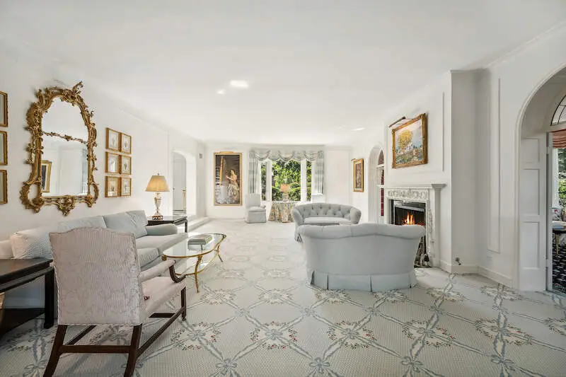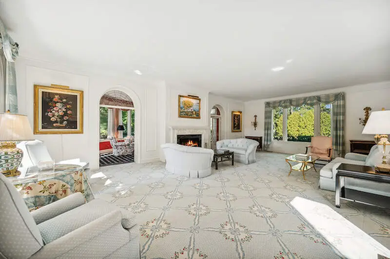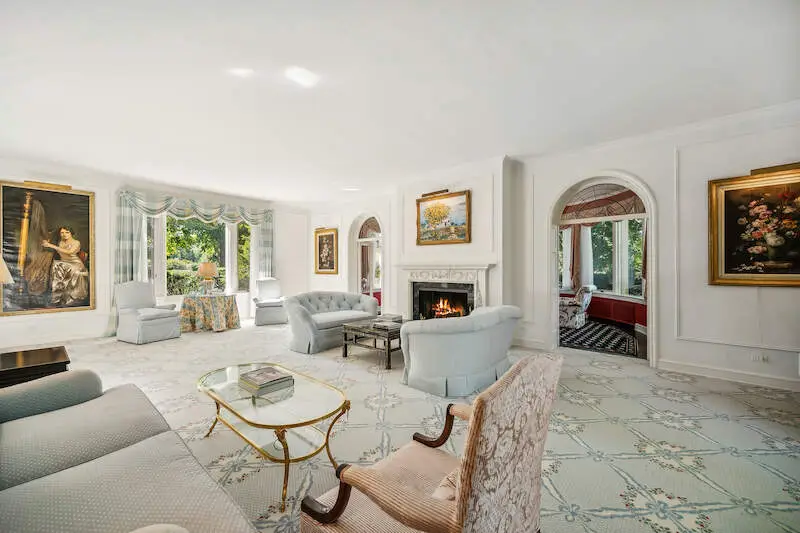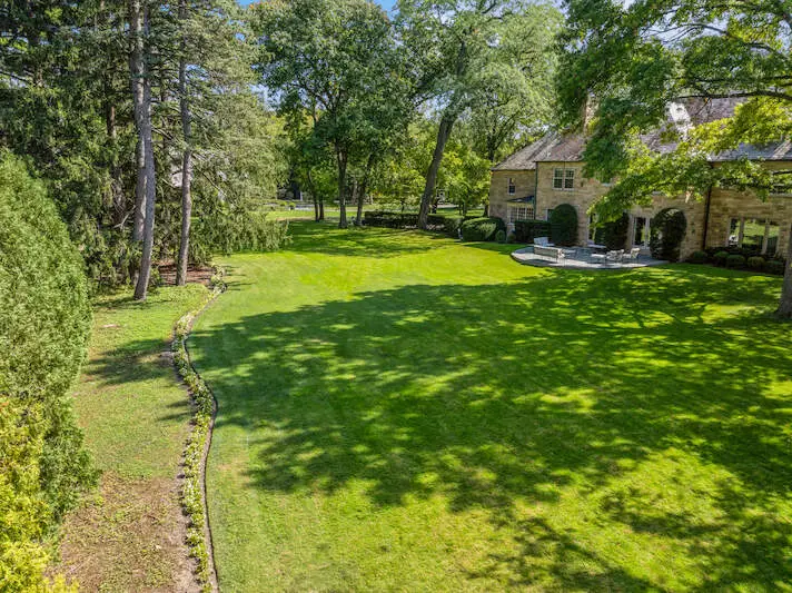Nestled down a winding, private road on 1.9 meticulous park-like acres, this grand, almost 10,000 square foot residence exudes luxury and timeless elegance. The front entrance is set apart from the road by a sweeping circular drive bordered by private hedges and mature trees. Upon entering the stately, two-story foyer with a 25' ceiling, bridal staircase, black and white marble floor, formal powder room and two coat closets, you are greeted by the sophistication that defines this home. The main level features a spacious, step-down living room with inlaid floors, a marble, gas and wood fireplace, and two picture windows that fill the room with natural light. Pass through the living room to an adjoining, architecturally beautiful solarium with a slate floor, that offers panoramic views of the lush grounds surrounding the residence. The formal dining room also features inlaid floors, and picture window. The handsome family room with custom cabinetry, lighting, millwork, and a marble, gas and wood fireplace, provides the perfect space for entertaining and relaxation while overlooking a yard large enough for a pool. The family room seamlessly flows into a large kitchen area that includes not only a custom kitchen but also a breakfast room, butler's pantry, back staircase, and mud room. The butler's pantry has an ice maker, second dishwasher, and beverage refrigerator. Upstairs, the luxurious primary bedroom suite boasts a marble, gas and wood fireplace, walk-in closet, and an adjoining sun room with stunning views of the grounds. It is perfect for family gatherings, office space or nursery. Adjacent to the dual sink primary bath with a vanity table, there is a winding staircase that leads upstairs to the third floor where you will find a beautifully crafted wardrobe/dressing room with many custom built-ins, lighting and mirrors. This lovely area conveniently leads to an exercise room, powder room and an oversized cedar closet, and this completes the third floor. There are four additional family bedrooms on the second floor, two share a Jack and Jill bathroom, one has its own en-suite, and the fifth bedroom suite offers versatile living space. The fifth bedroom and sitting room, located near the back stairs, welcomes an in-law arrangement, live-in nanny, or out-of-town guests. The full basement offers at least another 2,444 square feet of living space and includes a large recreation room with fireplace, billiard room, wet bar, spacious laundry room, large cedar closet, another storage room with built-in shelving, and a powder room. The yard is professionally landscaped, private, and nearly two acres is quite hard to come by in Winnetka. Additional features of this remarkable residence include: a three car, heated, attached garage, magnificent craftsmanship, glorious room sizes, four fireplaces, a slate roof, copper gutters, circular driveway and uncommon privacy. This residence is a true gem in the heart of Winnetka. Live a life of luxury and sophistication in this exceptional home. Woodley Road, with its canopy of mature trees, is a coveted private oasis, and yet is conveniently located near town, train, restaurants, schools and a public golf course. This property is not located in the flood plane.