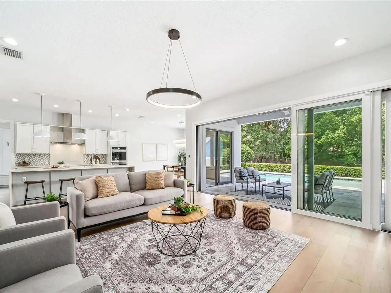 Discover this exceptional custom-designed modern pool home, ideally situated on a quiet street in Winter Park. This spacious residence offers 5 bedrooms, 4.5 bathrooms, and a large upstairs loft—providing the perfect blend of luxury, comfort, and functionality. From the moment you enter, you'll be captivated by the abundance of natural light and stunning hardwood floors that flow throughout the main level and continue upstairs into the loft and primary suite. The thoughtfully designed floor plan includes a downstairs bedroom and full bath, ideal for guests, in-laws, or a private home office. Designed with the entertainer in mind, the gourmet kitchen is a true showstopper—featuring quartz countertops, an oversized island, Jenn Air appliances including a double oven, and generous cabinet space. A large butler’s pantry with an additional sink offers even more storage and prep space. Seamlessly transition from indoor to outdoor living with the sliding glass doors that open to a covered lanai, private pool, and expansive fenced in backyard—perfect for relaxing or hosting gatherings year-round. Upstairs, the luxurious primary suite includes a walk-in closet and a spa-like bathroom with dual sinks, a soaking tub, and a separate walk-in shower. Three additional bedrooms, two full bathrooms, and a spacious laundry room with more storage complete the upper level. Additional features include a dedicated mudroom with built-in bench seating and storage, and an air-conditioned two-car garage with insulated doors and epoxy floors. All of this, just minutes from the Winter Park Racquet Club, Park Avenue’s boutique shopping and dining, and top-rated schools: Dommerich Elementary, Maitland Middle, and Winter Park High. Don’t miss this rare opportunity to own a one-of-a-kind home in one of Central Florida’s premier neighborhoods.