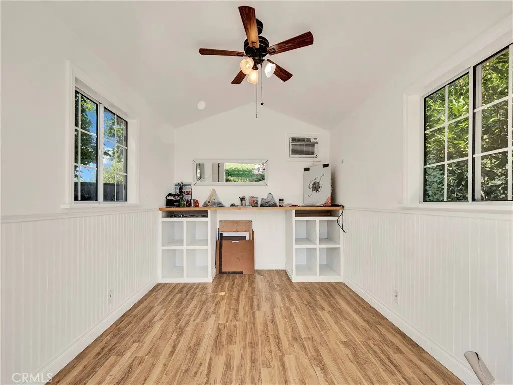 Welcome to this beautifully maintained three bedroom, two bathroom home, where comfort meets exceptional curb appeal. From the moment you arrive, you're greeted by stunning front landscaping—lush greenery, vibrant flower beds, and a manicured lawn that sets the tone for the rest of the property. This stunning home features an open floor plan that seamlessly connects the living and kitchen areas, creating a spacious and inviting atmosphere perfect for both everyday living and entertaining. Soaring high ceilings enhance the sense of openness, allowing natural light to flood the space through oversized windows and doors. Clean architectural lines, minimal interior walls, and fluid transitions between rooms give the home a modern, airy feel while maintaining warmth and comfort. Step into the backyard and you'll find a private outdoor oasis. Professionally designed landscaping continues with mature trees, colorful plantings, and serene seating area that make the most of every season. Whether you're enjoying a morning coffee on the patio or hosting weekend gatherings, the outdoor space is as impressive as the home itself. In addition to all these features there is an additional 120 square foot detached finished studio which can be an office, kids’ playroom or be used for your guests.