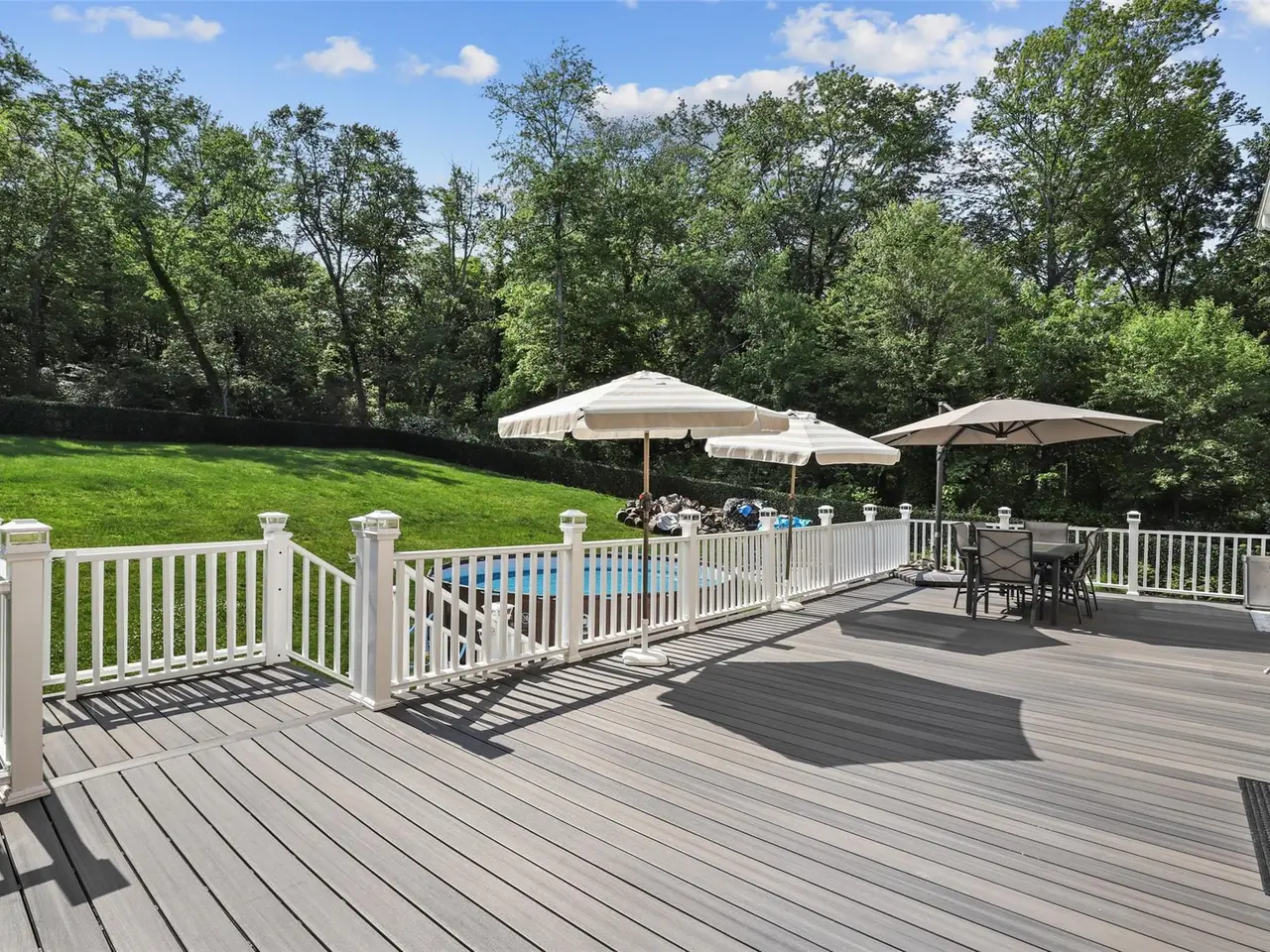 GLEAMING WITH PRIDE! Naturally light-filled Yorktown home with a range of custom, high quality updates by current owner. Your move into this gem comes with peace-of-mind and nothing to do! Newness surrounds this expansive 3 bedroom Contemporary (that lives like a 4). Bursting with charm and slick custom upgrades like TWO beautiful fireplaces, a huge eat-in-kitchen accented by stunning white granite counter tops and a sink window overlooking the expansive private backyard. The floor plan offers a large dining area, living room and a family room all on one floor. Gleaming hardwood flooring throughout. Skylights brighten up the cathedral entry hall area. The multiple-speaker system on the main floor is a nice touch as is the rows of recessed lighting. The primary bedroom is huge, accompanied by a marble laced shower bath. Let's keep going...there's a generator hookup in the two-car garage. You won't believe the custom stone work surrounding the long, expansive driveway (recently re-sealed)! Want more? The house is waterproofed and comes equipped with an enhanced drainage system directing water away from the house. The owner recently installed high end fencing with green camouflage that perfectly blends in with the lush nature surrounding the property. Two SGD's off the kitchen lead to a nice deck overlooking the pool and fire pit with plenty of privacy. Lots of exterior custom lighting, too. Escape & enjoy peace-and-quiet after a long day at this one-of-a-kind retreat that is enhanced by being situated on a quiet cul-de-sac.