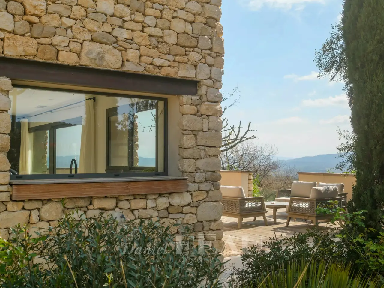 Sole Agent. This superb property is located 15 minutes from Aix en Provence in an elevated setting commanding breathtaking views of the iconic Saint Victoire Mountain and the Luberon countryside. Offering 470 sqm of living space, it is set In 6 hectares of peaceful grounds (two hectares of which are enclosed and feature a 15 x 5 metre overflow swimming pool). Allying stone, steel and extensive glazing, the beautifully appointed and tastefully decorated main house includes a spacious entrance hall, a living/reception room and dining room and open-plan kitchen with wide patio windows opening onto 250 sqm timber-decked terraces, a study, and a suite with a bathroom and dressing room. Upstairs are a study/library area, and two suites including a 70 sqm master with a terrace overlooking the surrounding countryside. The garden level comprises a sitting room with a bar, two bedrooms including a suite, technical premises, a home cinema, a sauna, and a heated 10 x 4 metre swimming pool. There is also a further independent bedroom. With a car port for five vehicles. Water is provided by the Canal de Provence. Unique.