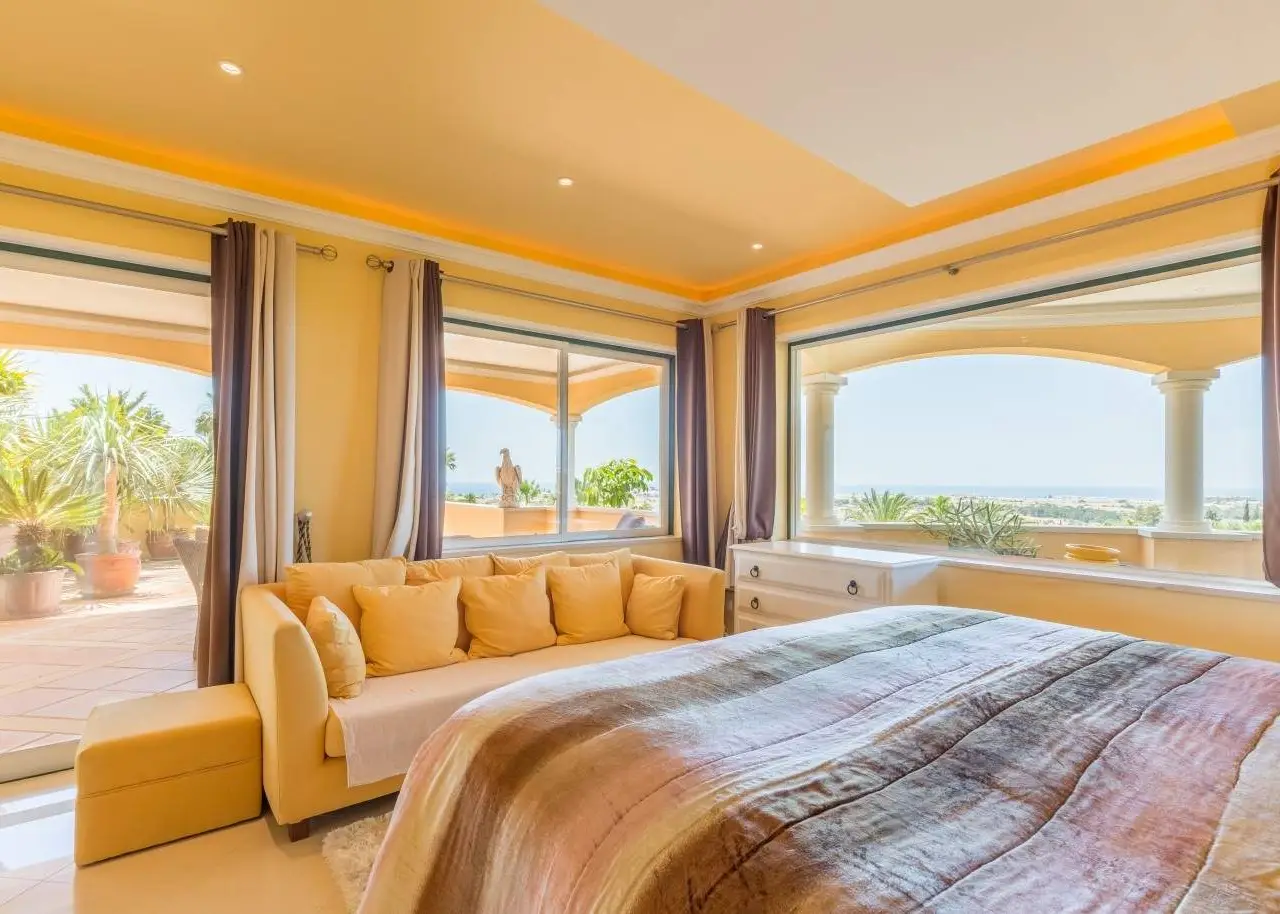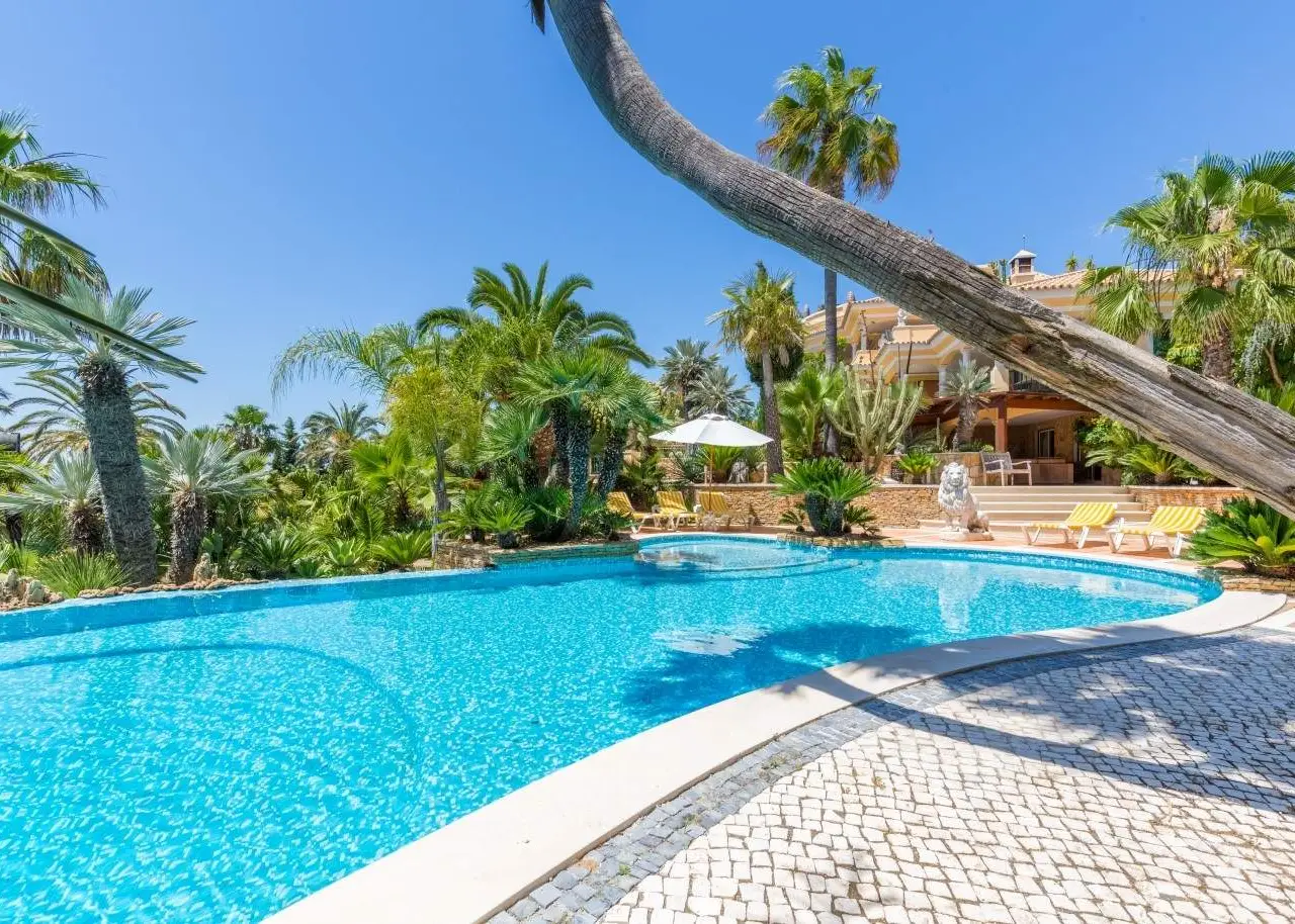 Stunning villa for sale with swimming pool, garden and a unique blue tennis court, in Albufeira, Algarve, Portugal. Surrounded by gardens, large palm trees, fruit trees, lakes and by a wonderful swimming pool, the property has several outdoor spaces for leisure, in a reserved environment. With a construction area of nearly 1500m2, the main feature of this home is glamour. It has several rooms with thematic decorations and large windows with views and direct communication to the exterior of the property. In the interior, the spacious rooms, the luxury finishes and the details that give it distinction also stand out. The large en suite rooms have a balcony. This magnificent property has characteristics that also allow its conversion to tourist purposes. With several golf courses nearby, it is located 10 minutes from the Marina of Albufeira and 30 minutes from Faro International Airport. CHARACTERISTICS: Plot Area: 4 500 m2 | 48 438 sq ft Area: 1 500 m2 | 16 146 sq ft Deployment Area: 1 500 m2 | 16 146 sq ft Building Area: 1 500 m2 | 16 146 sq ft Bedrooms: 7 Bathrooms: 8 Garage: 10 Energy efficiency: Certification in progress