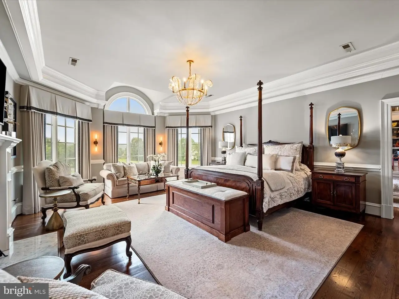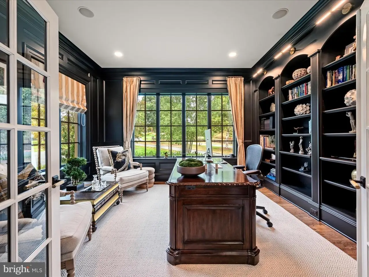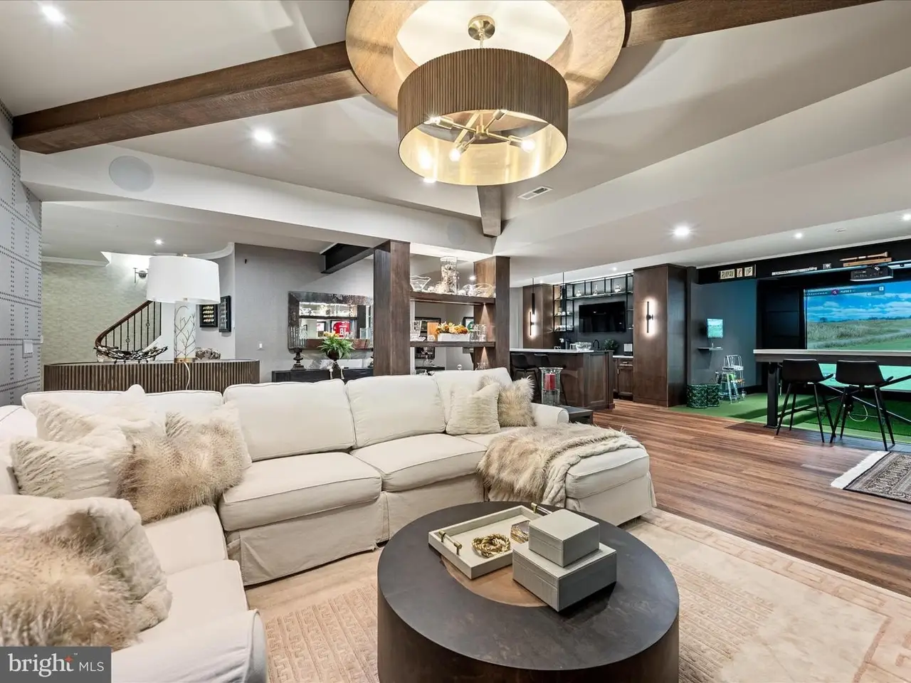 Welcome to a golfer's dream retreat, set on a pristine one-acre homesite with commanding views of holes 9, 14, and 15 of the Jack Nicklaus Signature Golf Course. This luxurious residence, a former model home known as the "Nicklaus House," has been meticulously upgraded throughout, offering the ultimate in elegance, functionality, and modern design. As you step into the grand foyer, you are greeted by a sweeping curved staircase and a new elegant chandelier. The main level showcases a formal dining room, a refined parlor, a private office with custom shelving, and a second office space for added versatility. The gourmet kitchen serves as the heart of the home, featuring a large center island with new quartz counters and backsplash, Sub-Zero and Wolf appliances, custom pantry with a barn door, and designer lighting throughout-perfect for both everyday living and stylish entertaining. The great room rises two stories high, with expansive windows and a stunning new quartz hearth and gas fireplace anchoring the space, while the adjoining family room offers a double-sided fireplace shared with the kitchen. The three-car side-load garage has been outfitted with custom flooring, cabinetry, lockers, shelving, and three electric overhead storage lifts-perfect for organization and functionality. The primary suite is a true sanctuary, boasting dual oversized walk-in closets, a new gas fireplace, and a spa-inspired bath with upgraded vanities and lighting. Each of the three additional bedrooms includes its own en-suite bathroom, all recently refreshed with new lighting and fixtures. The finished basement is a showcase of craftsmanship, featuring a custom temperature-controlled wine cellar, a stylish family room with wood-beamed ceilings, and a full bar equipped with hidden storage, a two-drawer fridge, dishwasher, microwave, and ice machine. A new state-of-the-art golf simulator brings the fairway home, while a private bonus room with walk-in closet and spa-quality bath provides the perfect guest or au pair suite. Additional storage and a separate bathroom complete this exceptional level. Every inch of this home has been thoughtfully upgraded to deliver the perfect blend of luxury, comfort, and functionality-all set within the exclusive, gated community of Creighton Farms. With sweeping golf course views and world-class amenities just outside your door, this property truly defines resort-style living.