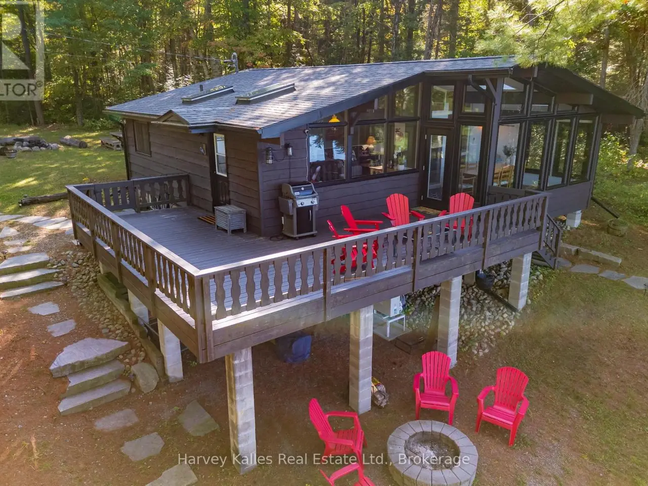 Ready to begin or enhance your cottage adventures? A perfect turn-key waterfront retreat on Kawagama Lake is now available. Boasting 128' of pristine frontage, the sandy, family-friendly entry makes swimming and water fun effortless, while the dock and waterfront storage shed add convenience and charm to lakeside living. Step inside to discover more than 1000sqft on the main floor with three inviting bedrooms and a full bathroom complemented by a sun-drenched Muskoka room that perfectly captures lake views and natural light. Cozy up by the propane fireplace in the living room or host unforgettable gatherings on the lakeside deck overlooking the sparkling waters. The 725sqft walkout basement, features a separate entrance and a newly completed 3-piece bathroom, offering a versatile space for guests, hobbyists, or potential for additional living areas. Car enthusiasts and boat lovers will appreciate the 3-bay garage and ample parking, while a garden and multiple fire pit areas add an extra special touch to this lakeside haven. With a drilled well, year-round accessibility, and every detail to create the quintessential Muskoka experience, this property is more than a cottage. Lakeside memories await! (id:16999)