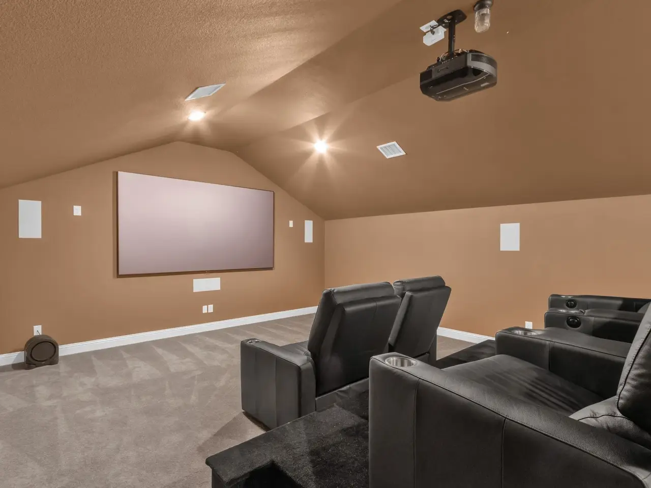 • Two-tiered media room with theater seats