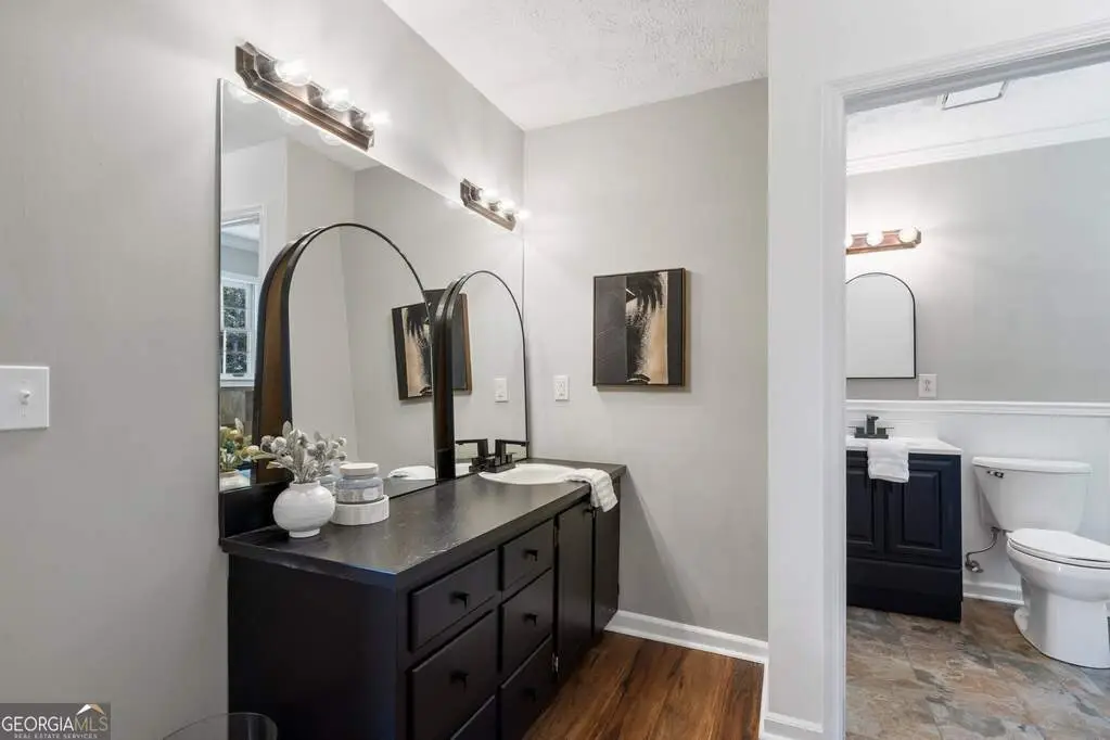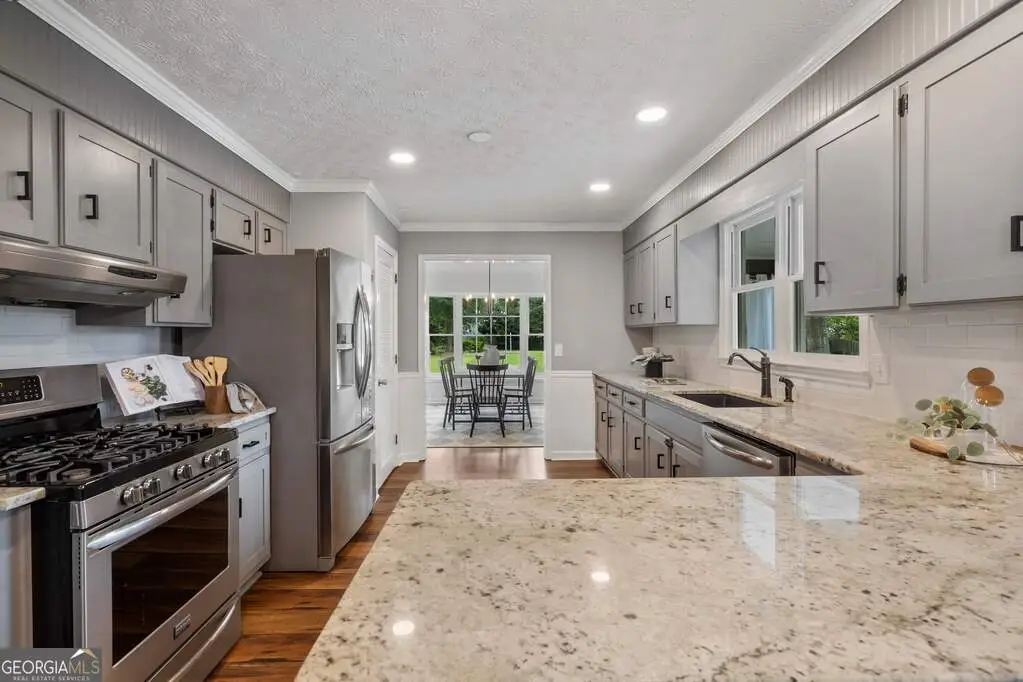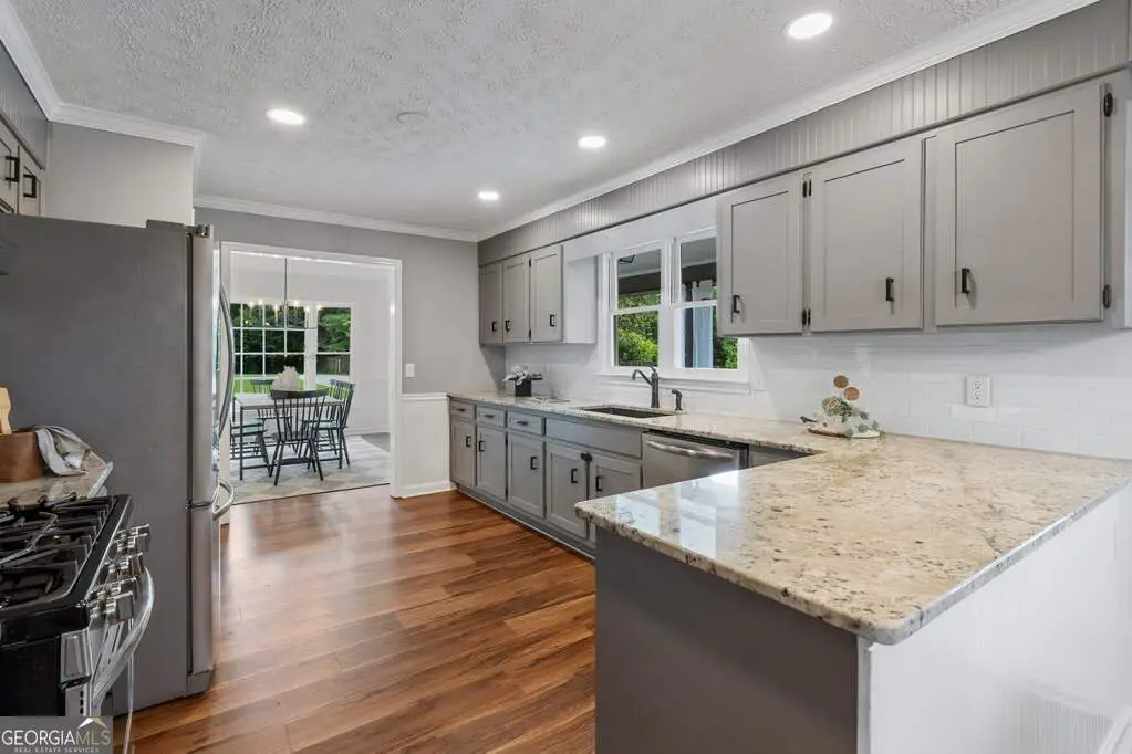 Downtown Alpharetta's Best-Kept Secret-Over an Acre, 4,000+ sqft =Endless Possibilities! Welcome to 290 Dania Drive, a hidden gem at the end of a quiet, tree-lined street just minutes from the vibrant heart of Downtown Alpharetta. Tucked away on over one acre of serene, private land, this expansive 4,258 sq ft residence offers unmatched space, flexibility, and value-there's truly nothing like it on the market! With 2 full kitchens, 2 laundry rooms, 2 fireplaces, and 3 separate living areas, this home is designed for multi-generational living, entertaining, or passive income potential. The fully finished terrace level features a complete in-law suite with private entrances, a full kitchen, bedroom, bath, laundry, and three versatile bonus rooms-ideal for guests, rental income, or a home-based business. And with no HOA, the possibilities are wide open. The main level welcomes you with charming outdoor spaces-a breezy side porch, a relaxing front porch, and a spacious back deck, perfect for enjoying the peaceful surroundings. Inside, the bright and updated kitchen features granite countertops, stainless steel appliances, gas range, and ample pantry space. The dining room offers flexibility for formal or casual gatherings, while the oversized family room impresses with a floor-to-ceiling brick fireplace and double doors spilling in natural light. The primary suite on the main is a true retreat, complete with its own laundry, while two additional bedrooms and a full bath round out the level. Downstairs, the terrace level offers a bedroom, full bathroom, Kitchen, second fireplace, additional living space, and three more finished rooms for your ideal layout-home office, gym, media room, or more. Whether you're looking for a move-in ready multi-generational home, an income-producing property, or a stunning lot to build your dream estate, this one-of-a-kind opportunity in Downtown Alpharetta checks every box. Prime location. Endless flexibility. Over an acre of privacy. Don'