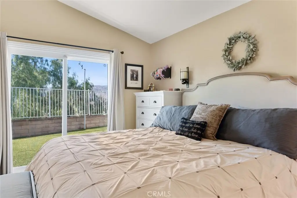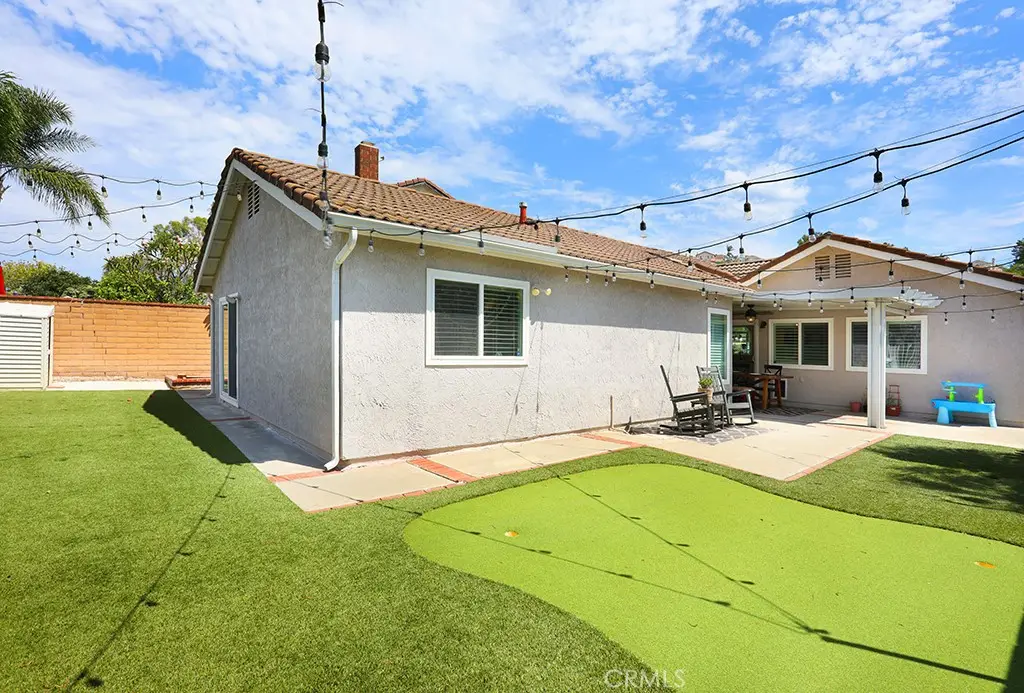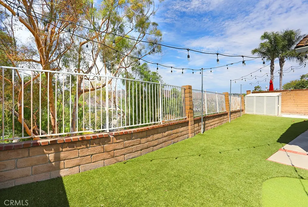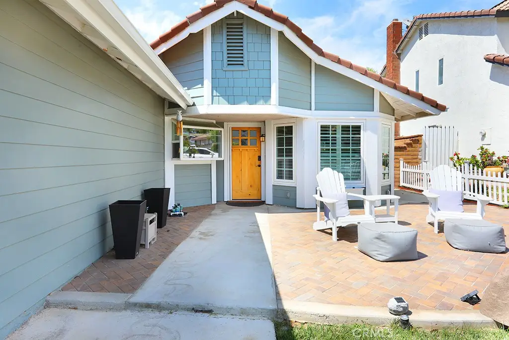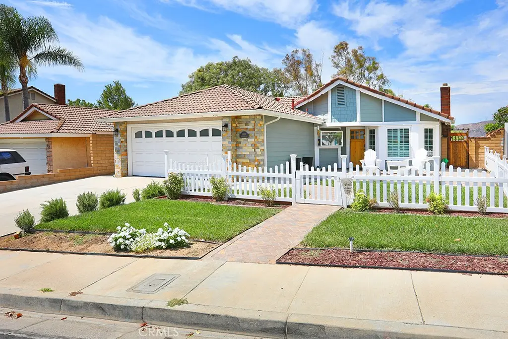 Dreaming of the perfect home with a white picket fence? Here it is! Delivering charm and sweeping city light and mountain VIEWS, this SINGLE STORY 3 bed 2 bath home tucked away in the Bel Air neighborhood of Anaheim Hills offers a a sense of tranquility and vibrant energy all at once. Delightful curb appeal welcomes you up a newly paved and enclosed front patio for extra outdoor entertaining. Inside discover a cozy family room with vaulted ceilings, rich brick fireplace with custom mantel and a picture perfect bay window trimmed in classic plantation shutters. The newly remodeled farmhouse kitchen is accented with crisp white shaker cabinetry, quartz counters, glazed subway tile backsplash, stainless steel appliances, a deep single basin sink, recessed lighting and features a light-filled window box. Head down the halls trimmed in wainscoting to the primary bedroom with vaulted ceilings and impressive views overlooking the rolling hills and direct access to the backyard. The enviable remodeled primary bath features a walk in shower with artful tile work and a custom glass enclosure and dual vanities with granite counters. Two ample sized guest bedrooms share a guest bath with single vanity and granite counter. Outdoor entertain under the covered patio outfitted with electrical lighting or perfect your golf game on the putting green while soaking in the incredible views. The garage features epoxy flooring, upgraded lighting, new cabinets, a custom entertainment center with TV and attic storage with pull down ladder. Other improvements include a newer water heater, HVAC system, gutter system, whole house fan, interior and exterior paint, low maintenance turf, exterior hardie plank concrete siding and new stone facade. This low HOA neighborhood offers convenient access to 91 and 241 freeways, shopping centers, dining, hiking trails, award-winning schools and more!