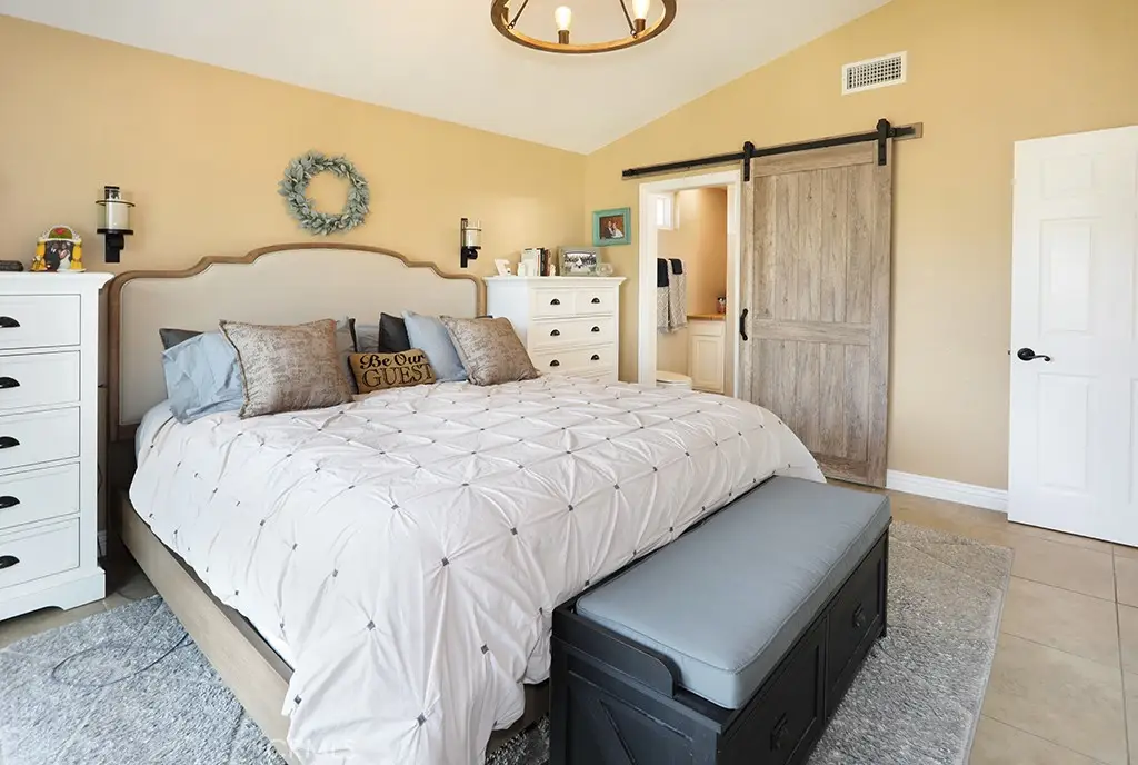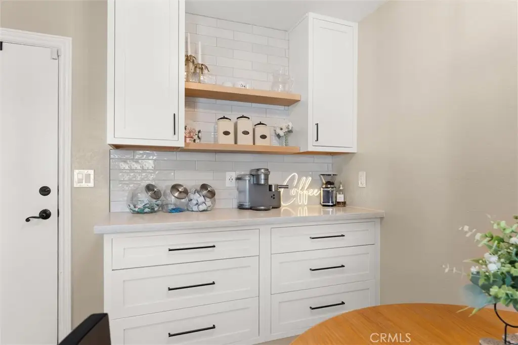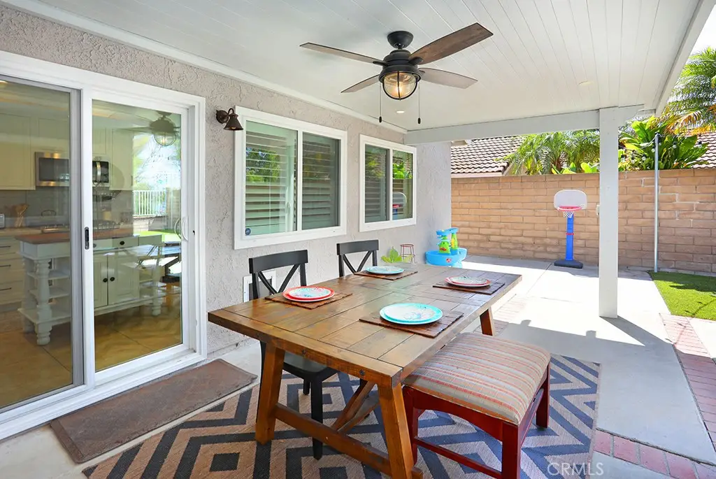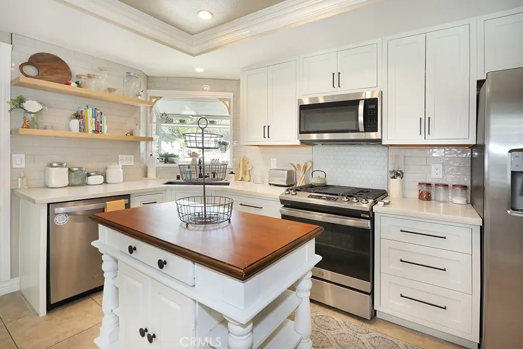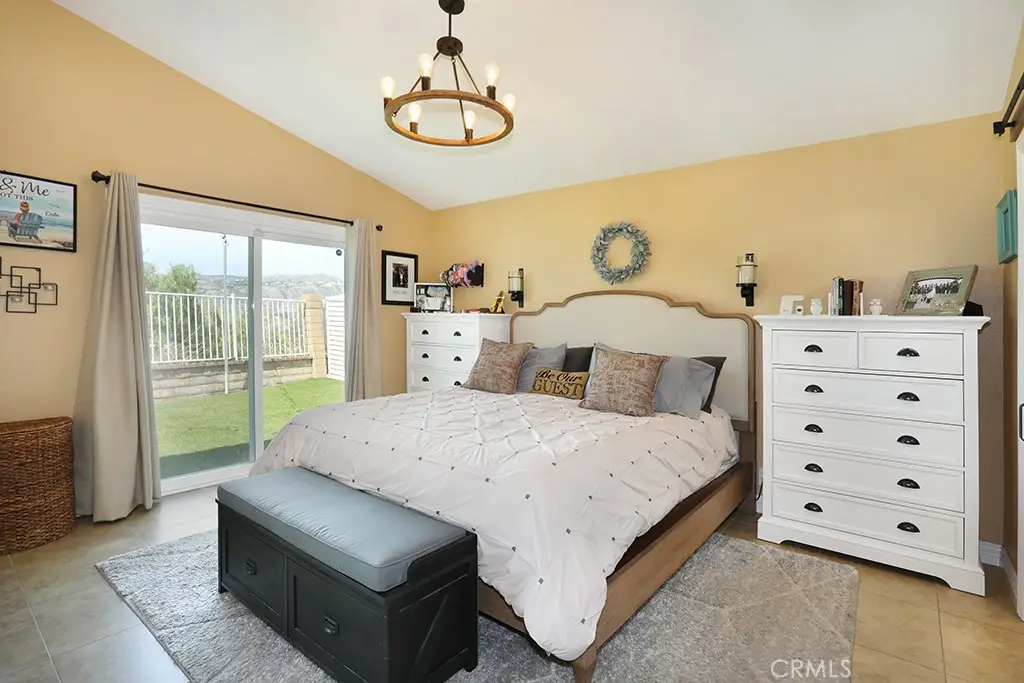 Dreaming of the perfect home with a white picket fence? Here it is! Delivering charm and sweeping city light and mountain VIEWS, this SINGLE STORY 3 bed 2 bath home tucked away in the Bel Air neighborhood of Anaheim Hills offers a a sense of tranquility and vibrant energy all at once. Delightful curb appeal welcomes you up a newly paved and enclosed front patio for extra outdoor entertaining. Inside discover a cozy family room with vaulted ceilings, rich brick fireplace with custom mantel and a picture perfect bay window trimmed in classic plantation shutters. The newly remodeled farmhouse kitchen is accented with crisp white shaker cabinetry, quartz counters, glazed subway tile backsplash, stainless steel appliances, a deep single basin sink, recessed lighting and features a light-filled window box. Head down the halls trimmed in wainscoting to the primary bedroom with vaulted ceilings and impressive views overlooking the rolling hills and direct access to the backyard. The enviable remodeled primary bath features a walk in shower with artful tile work and a custom glass enclosure and dual vanities with granite counters. Two ample sized guest bedrooms share a guest bath with single vanity and granite counter. Outdoor entertain under the covered patio outfitted with electrical lighting or perfect your golf game on the putting green while soaking in the incredible views. The garage features epoxy flooring, upgraded lighting, new cabinets, a custom entertainment center with TV and attic storage with pull down ladder. Other improvements include a newer water heater, HVAC system, gutter system, whole house fan, interior and exterior paint, low maintenance turf, exterior hardie plank concrete siding and new stone facade. This low HOA neighborhood offers convenient access to 91 and 241 freeways, shopping centers, dining, hiking trails, award-winning schools and more!
