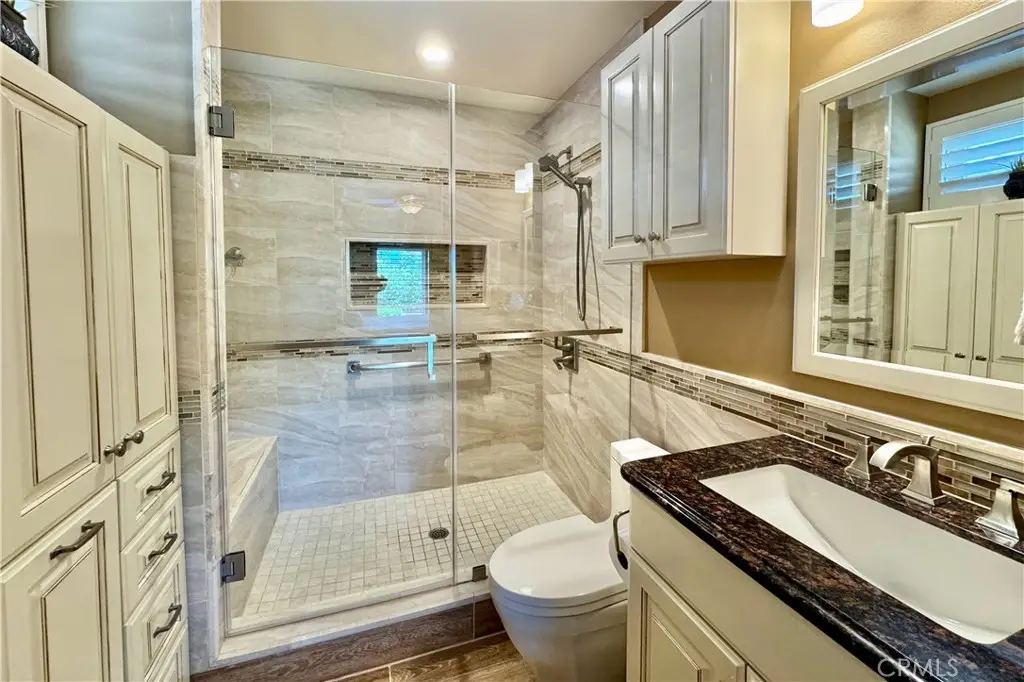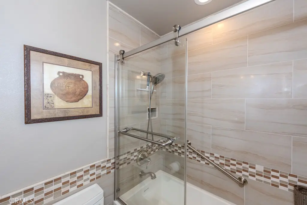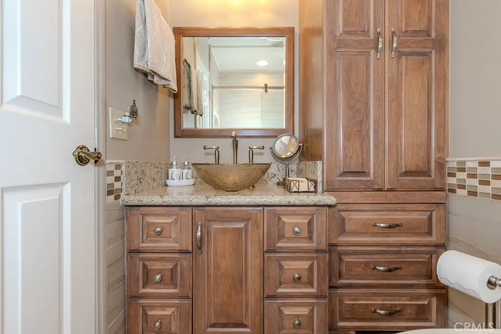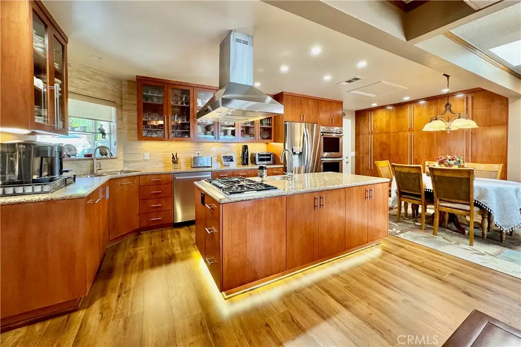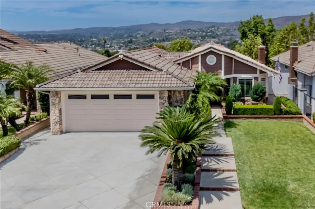 Beautiful single-story home in Anaheim Hills. Wonderful curb appeal, luxurious upgrades throughout and city lights and hillside views. Spanning over 1,500 square feet, the three-bedroom, two-bath layout has been thoughtfully expanded to create an open and inviting floor plan. At the heart of the home is a true gourmet kitchen featuring a custom island with prep sink, five-burner gas cooktop, and abundant storage. Included are Thermador double ovens and warming drawer. Built-in microwave, French door refrigerator, and a new Bosch dishwasher. A dining nook and lots of additional pantry space complete the kitchen, which seamlessly flows into the spacious great room. The great room includes custom built-ins with a TV. The patio door highlights the view. The living room showcases a marble-tiled fireplace and opens to the formal dining area. Wide-plank flooring throughout, plantation shutters, upgraded dual-pane windows, and beautifully remodeled baths elevate the interior. Each bedroom includes a designer closet with custom built-ins, adding both function and style. The home also comes with a new washer and dryer, water softener, garage cabinets, Newer A/C, and a whole-house fan. Set on a quiet street, this home also offers a two-car attached garage with insulated door, low HOA dues of $77 per month, and a low property tax rate of approximately 1.05%. Conveniently close to shopping and dining, this residence is move-in ready and represents Anaheim Hills living at its finest.