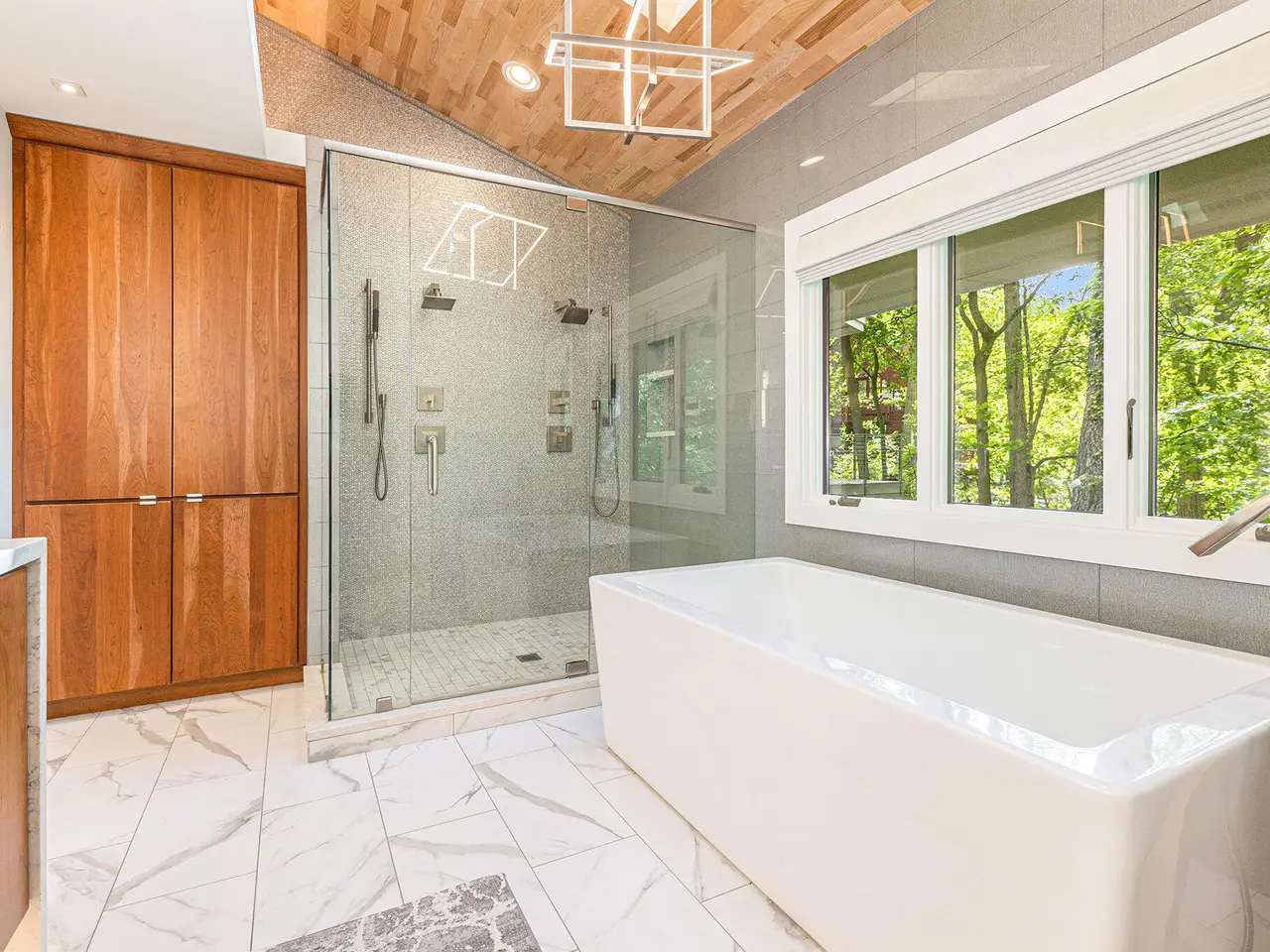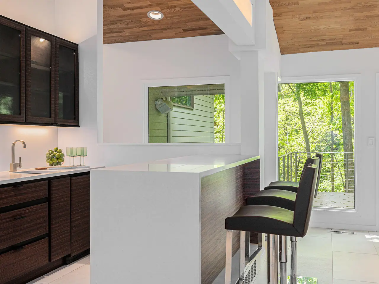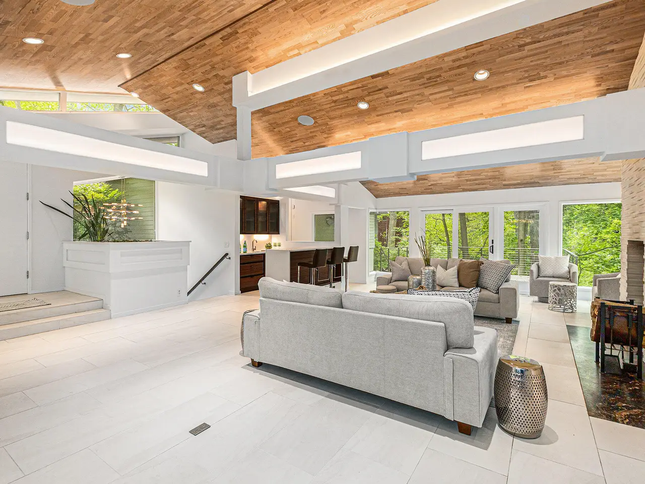 This completely updated Mid-Century Modern inspired home is one of the few homes with direct access to Nichols Arboretum. The home was created and reimagined with only the finest in Design, Materials, and Craftsmanship and is simply stunning inside and out. The setting is breathtaking featuring unobstructed, panoramic view of The Arb and is just Minutes from all UM Campus Locatoins and all Hospitals. The grounds feature extensive Landscaping, a terraced yard, and multiple outdoor living areas. The interior highlights of this home are evident at every turn. You are immediately welcomed into an expansive Great Room featuring stone flooring, vaulted ceiling, fireplace, wet bar, fantastic architectural details, and floor to ceiling windows. The gourmet kitchen features custom painted maple cabinets, quartz countertops, and professional grade appliances plus expansive windows overlooking the patio. The dining area is nicely centered within the living area and perfect for formal dinners. The Primary Bedroom wing features a private study, expansive bedroom area overlooking The Arb and a spa-like bath with dual sink vanity, free-standing soaker tub, and large walk-in shower. The finished walk-out lower level incudes a large multi-space rec room with fireplace perfect for home theater, exercise, and game tables plus 4 additional bedrooms and 2 additional full baths. The home is loaded with many custom details including built-in sound system and wine closet.