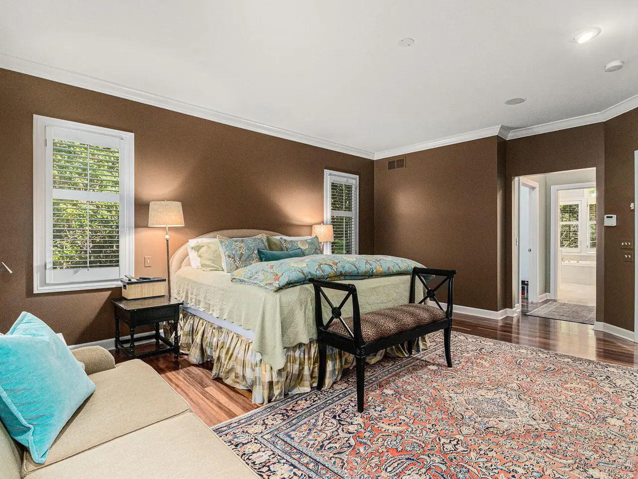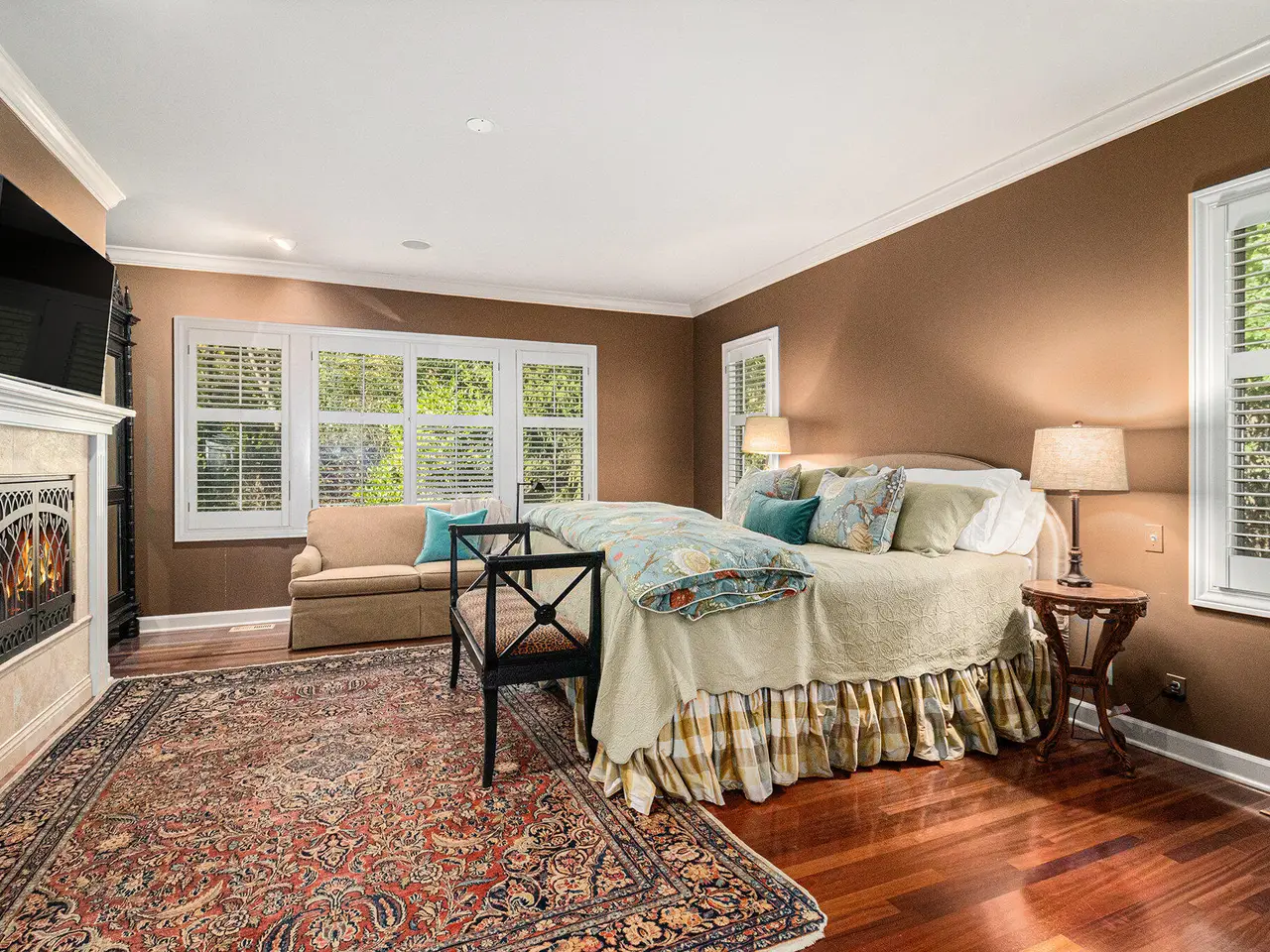 This custom built Ranch by Henry Landau is truly spectacular and includes a panoramic view of Fleming Creek . The home was built with only finest in Design, Materials, and Craftsmanship and has been perfectly modernized to today's standards. The setting is incredible just minutes to all Hospitals and UM Campus locations with a private, wooded 2.3 acre setting featuring panoramic views of Fleming Creek from the large deck and all the main living areas in the home. This home is stunning at every turn. Highlights include a covered entry porch, welcoming foyer, all hardwood floors throughout the main living area, striking Great Room with 12' Ceilings, fireplace, and built-in cabinets and display shelves, updated kitchen with painted white cabinets, quartz counter tops, and stainless steel appliances, wonderful Sun Room with walls of glass to the backyard, spacious formal Dining Room, luxurious main level primary bedroom with fireplace, spa-like bath with stone tile floor, and great closet space, and nice back hall mud room and laundry room. The finished walk-out lower level is fantastic. Features include a large rec room with fireplace, oversized screened porch, three bedrooms, two full baths, kitchenette, exercise space with sauna, and tons of storage. Bedroom 4 is set up as a perfect home office with fireplace. The home has many additional amenities including an oversized garage, fenced backyard, brick paver patio, and retractable awning. You will LOVE this home!