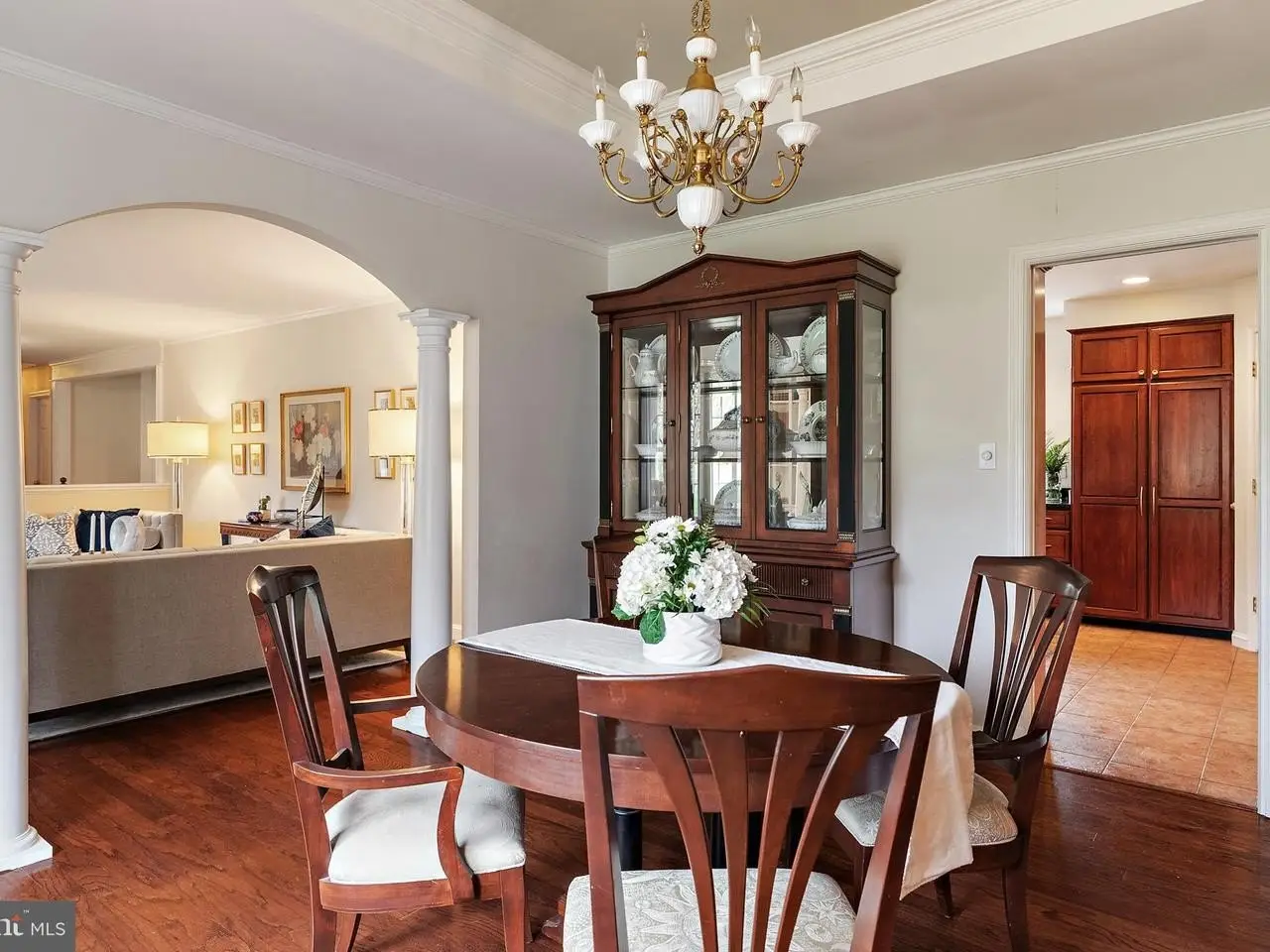 Wood floors and crown moldings throughout living spaces