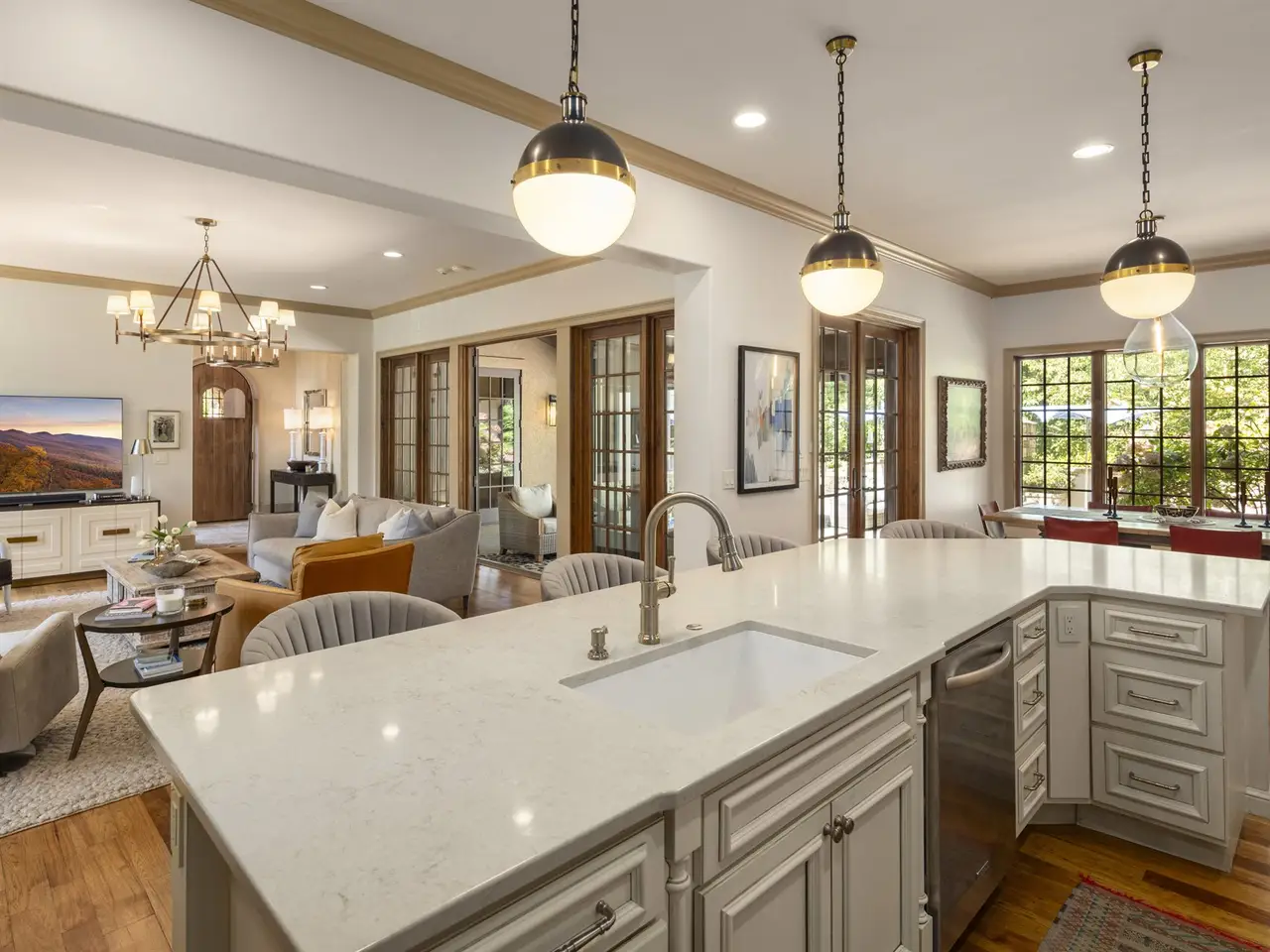 Discover exquisite mountain living in this exceptional home, a superb-quality residence by renowned builder Butch Heatherly. As the original model home for Cove Park, this residence was designed to impress, seamlessly blending sophistication with the tranquility of its natural surroundings. Step inside and be greeted by an open floor plan, where exquisite hardwood floors guide you from a spacious living room with a cozy fireplace to a high-end kitchen. Perfect for entertaining, the gourmet kitchen features a huge island, top-of-the-line appliances (including a 48" Wolf range), and a walk-in pantry. The dining area is bathed in natural light from large Pella windows, providing a lovely space for meals and gatherings. Throughout the home, designer lighting fixtures add a touch of elegance. The residence offers three bedrooms with en-suite bathrooms, including an immense master suite with large walk-in closets, and a powder room on the main level, providing a private and luxurious retreat. Venture outside to a covered porch with a roll-down screen, extending your living space and allowing for comfortable enjoyment of the outdoors. The property's beautifully landscaped courtyard is a true oasis, featuring a stunning multi-tiered water feature with a stone waterfall and a separate, inviting patio area with a stone fireplace and hot tub - perfect for al fresco dining or relaxing on cool evenings. A new landscape lighting system illuminates the grounds, creating a magical ambiance. This home is as functional as it is beautiful, featuring a whole-house water filtration system and an encapsulated crawl space for optimal maintenance. Situated about 500 feet from the community's Wellness Center, residents can take advantage of the indoor and outdoor pools, Har-Tru tennis courts, state-of-the-art workout equipment, and various fitness classes. This home provides the ideal blend of a private sanctuary and access to a vibrant, active community. Club membership is available.
