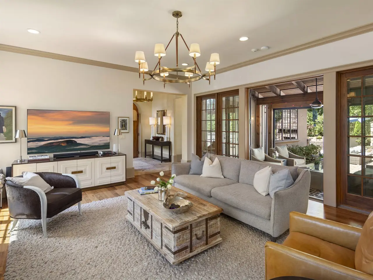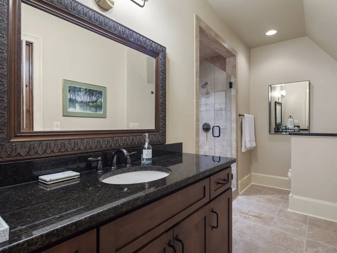 Discover exquisite mountain living in this exceptional home and adjacent vacant lot, a superb-quality residence by renowned builder Butch Heatherly. This offering provides a total of .55 acres for added privacy and the option to expand the current home or build a separate guest cottage. As the original model home for Cove Park, this residence was designed to impress, seamlessly blending sophistication with the tranquility of its natural surroundings. Step inside and be greeted by an open floor plan, where exquisite hardwood floors guide you from a spacious living room with a cozy fireplace to a high-end kitchen. Perfect for entertaining, the gourmet kitchen features a huge island, top-of-the-line appliances (including a 48" Wolf range), and a walk-in pantry. The dining area is bathed in natural light from large Pella windows, providing a lovely space for meals and gatherings. Throughout the home, designer lighting fixtures add a touch of elegance. The residence offers three bedrooms with en-suite bathrooms, including an immense master suite with large walk-in closets, and a powder room on the main level, providing a private and luxurious retreat. Venture outside to a covered porch with a roll-down screen, extending your living space and allowing for comfortable enjoyment of the outdoors. The property's beautifully landscaped courtyard is a true oasis, featuring a stunning multi-tiered water feature with a stone waterfall and a separate, inviting patio area with a stone fireplace and hot tub - perfect for al fresco dining or relaxing on cool evenings. A new landscape lighting system illuminates the grounds, creating a magical ambiance. This home is as functional as it is beautiful, featuring a whole-house water filtration system and an encapsulated crawl space for optimal maintenance. Situated about 500 feet from the community's Wellness Center, residents can take advantage of the indoor and outdoor pools, Har-Tru tennis courts, state-of-the-art workout equipment, and various fitness classes. This home provides the ideal blend of a private sanctuary and access to a vibrant, active community. Club membership is available.
