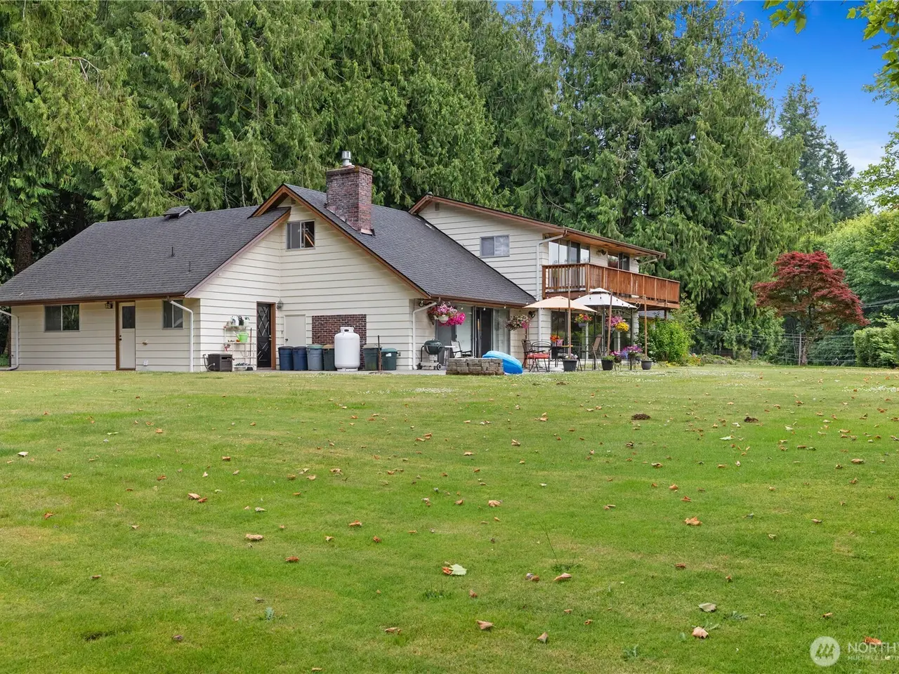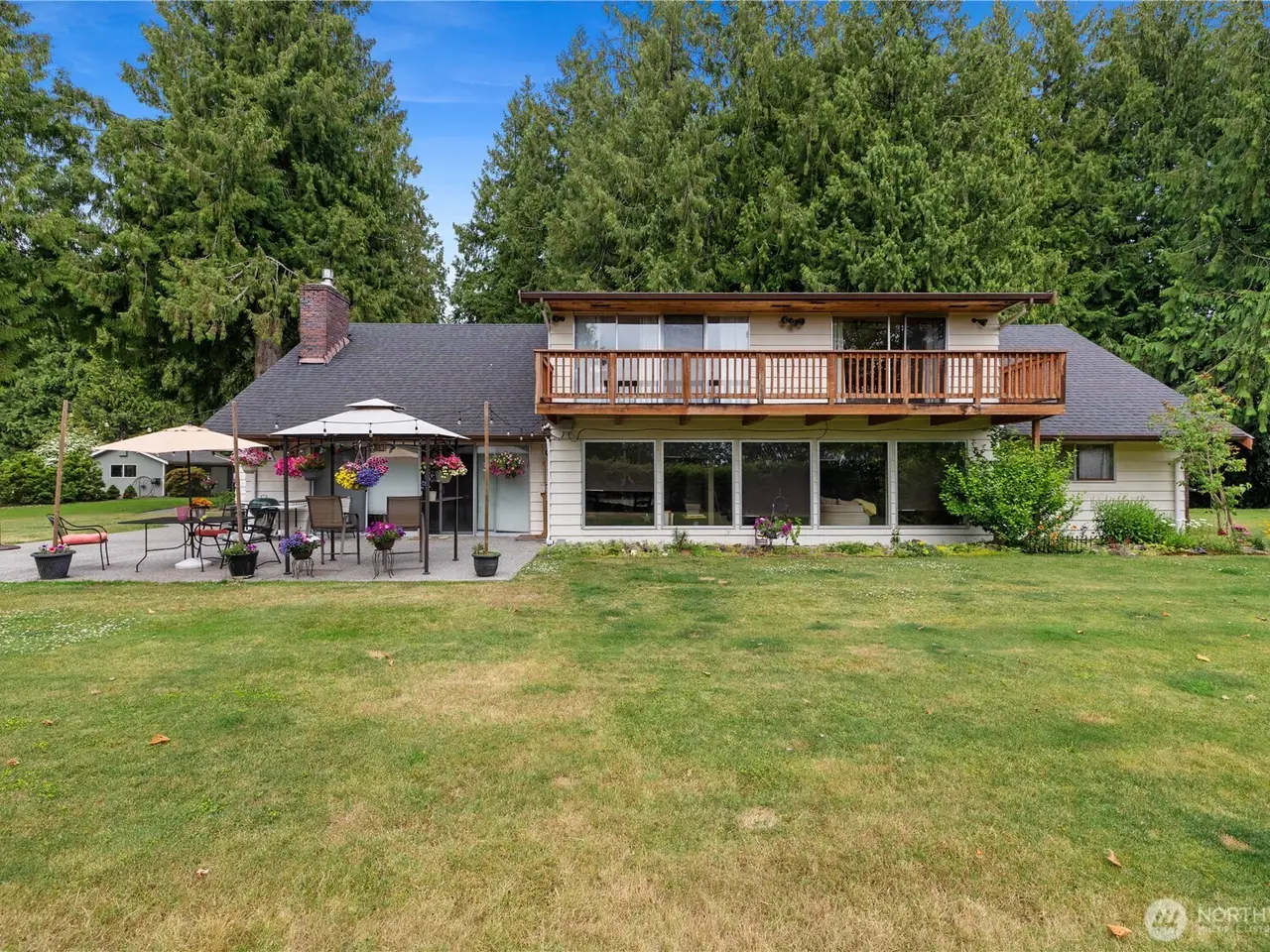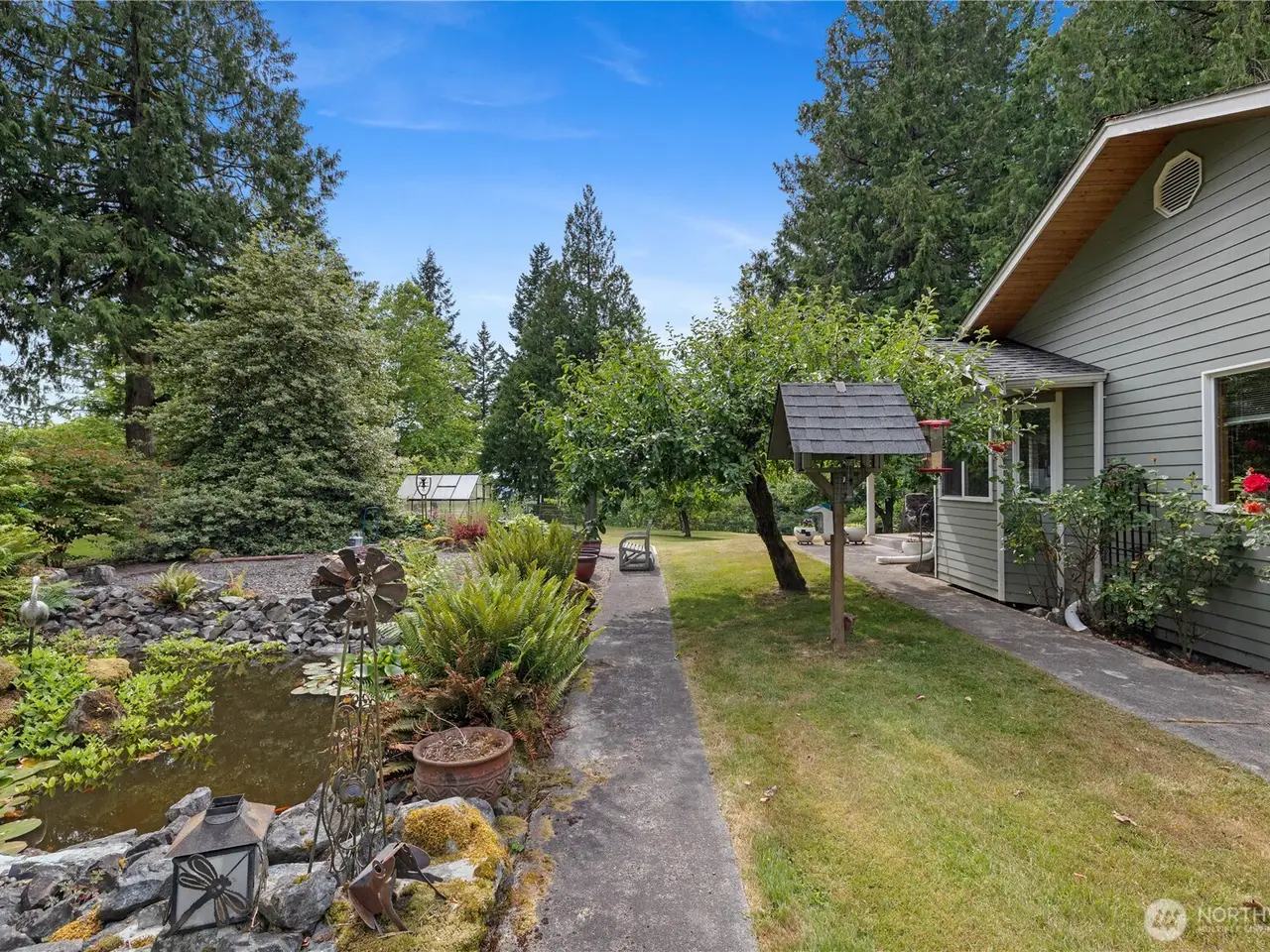 Perfect Multi-Generational living with 2 homes on nearly 3 acres of meticulously landscaped grounds, remarkable old growth cedars, & lush green lawns. Main Home: 3,445sqft, 4+ bedrooms, 3 bathrooms, 2 living rooms, formal dining, huge bonus room, 2 car garage. Primary Bedroom has an incredible walk-in closet and sliding doors to the balcony. Storage shed and playhouse stay. The ADU Home: 1,504sqft, 3 bedrooms, 1.5 bathrooms, 2 car garage, open concept living/dining/kitchen. Slider off Primary bedroom to patio. French doors to covered patio for year-round enjoyment. Greenhouse, raised garden beds, koi pond with beautiful ornamental trees and flowers. Detached Shop! Each home w/separate well, septic, internet, & power.