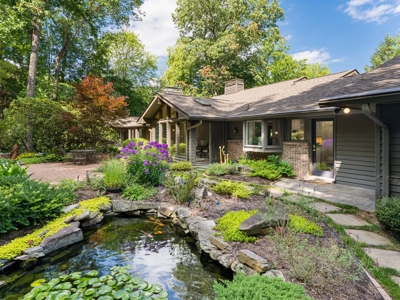 Welcome to 14 Stuyvesant Crescent in prestigious Biltmore Forest. This move-in ready 4BR, 3.5BA home offers refined living on 1.19 fenced acres with a gated driveway. Inside, enjoy spacious living with a Living Room, Family Room, Den, Morning Room, Office, and Primary Suite on the main level. The updated kitchen, also on the main level, blends functionality with style. The lower level features 2 additional bedrooms, a full bathroom, multiple storage areas, and an exterior entrance. The meticulously landscaped grounds are a true retreat, featuring a tranquil koi pond and waterfall. A two-car detached garage is connected to the home by a covered breezeway. A rare combination of privacy, elegance, and convenience just minutes from all Asheville has to offer.